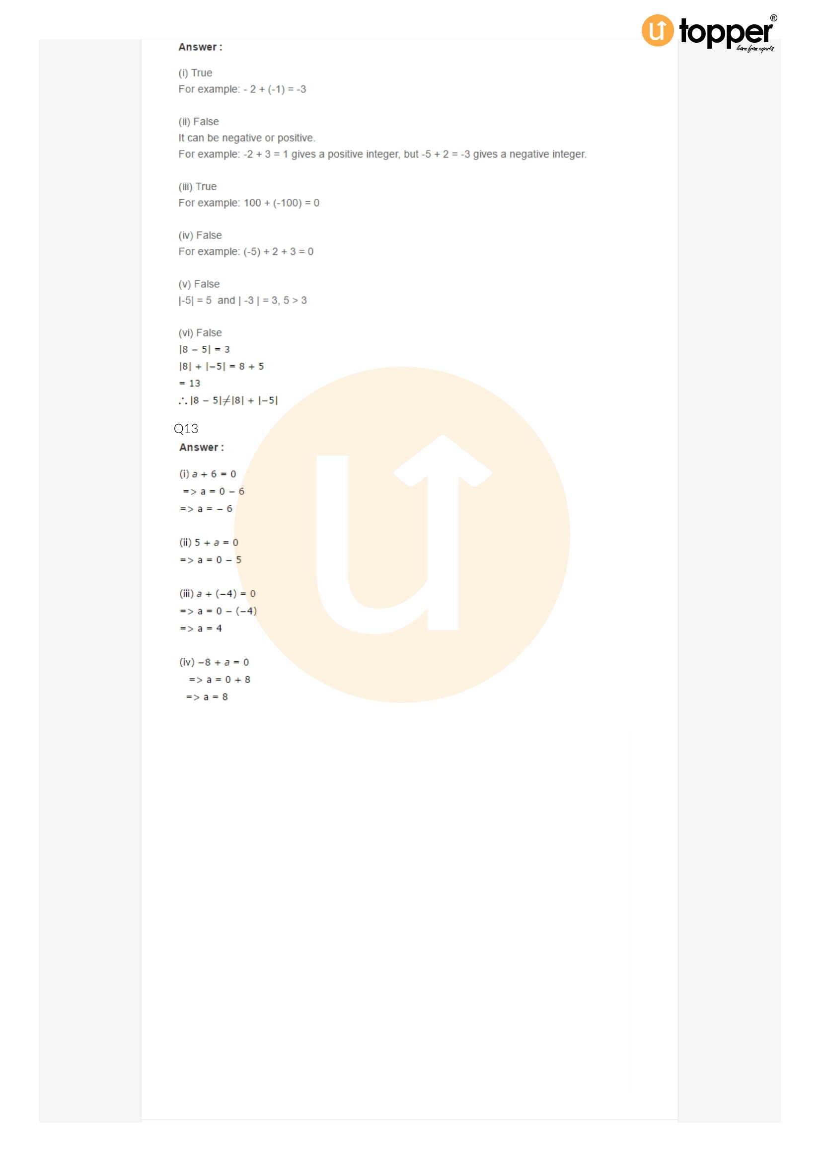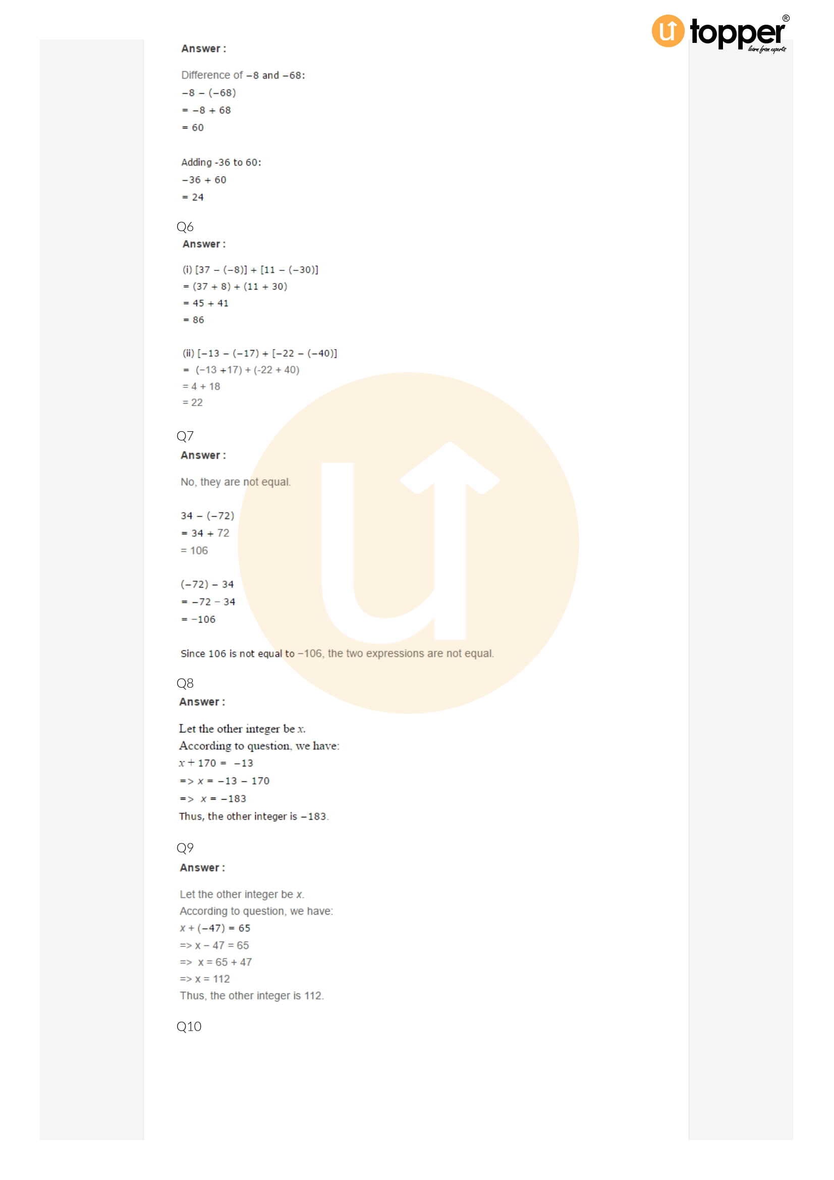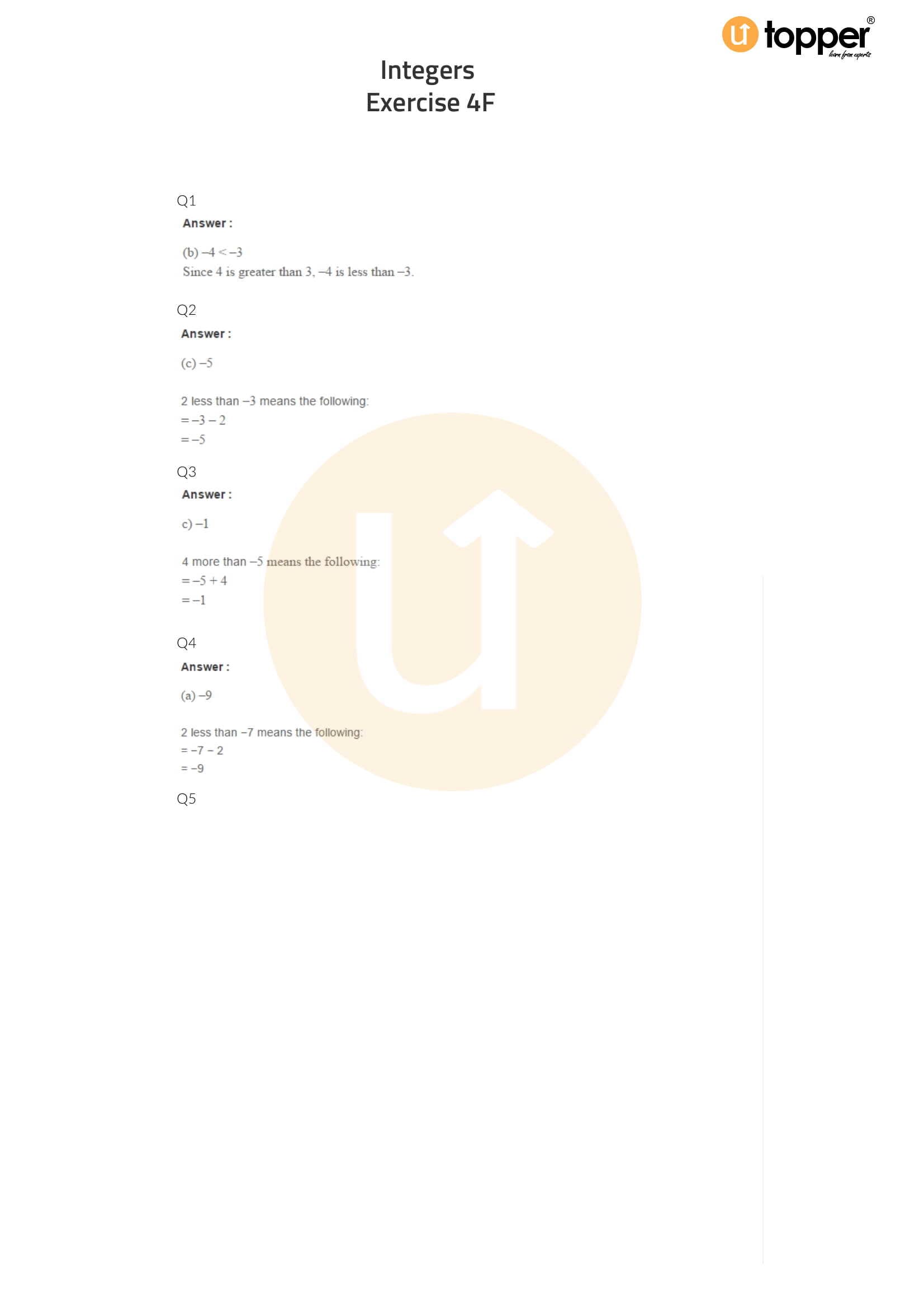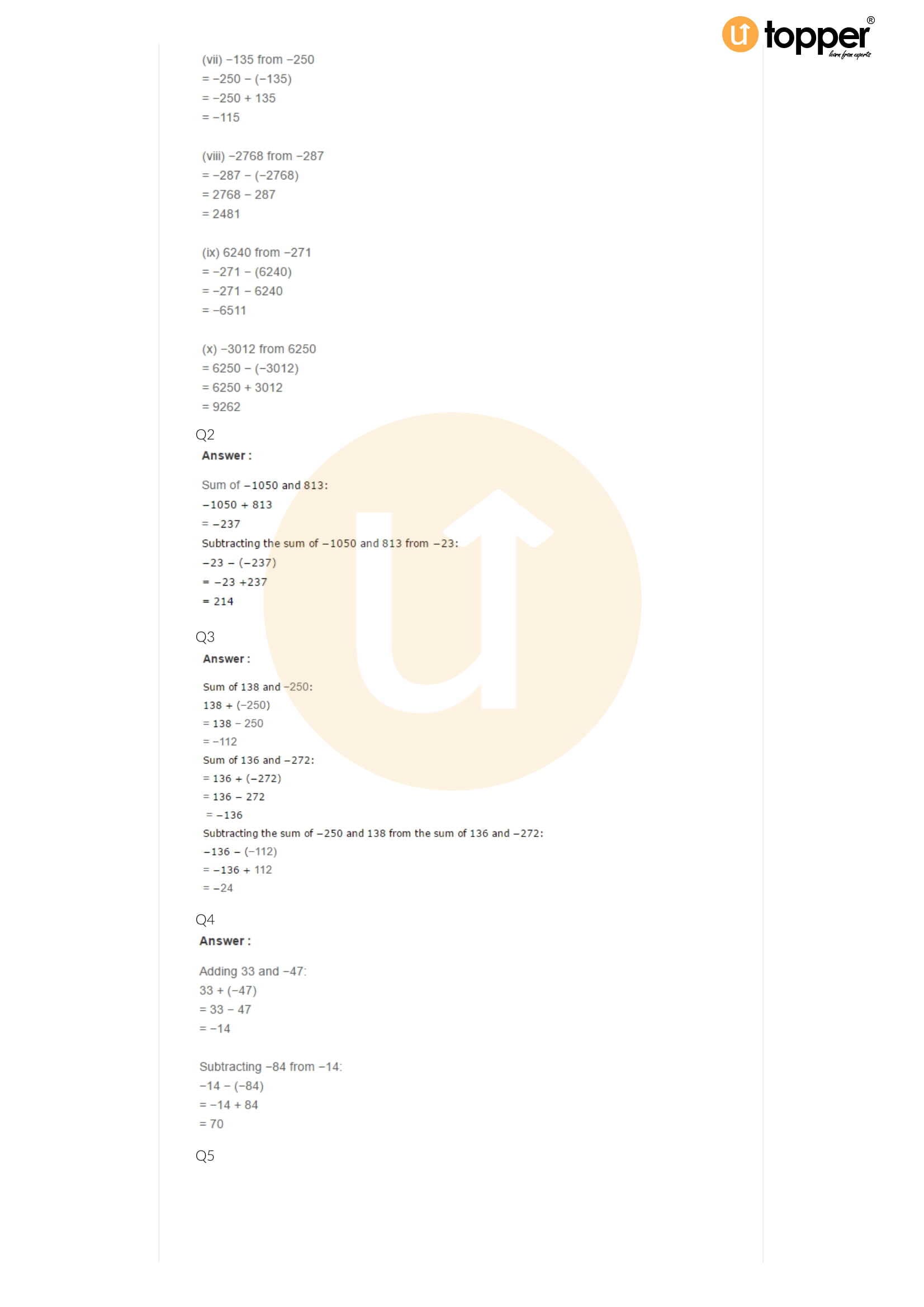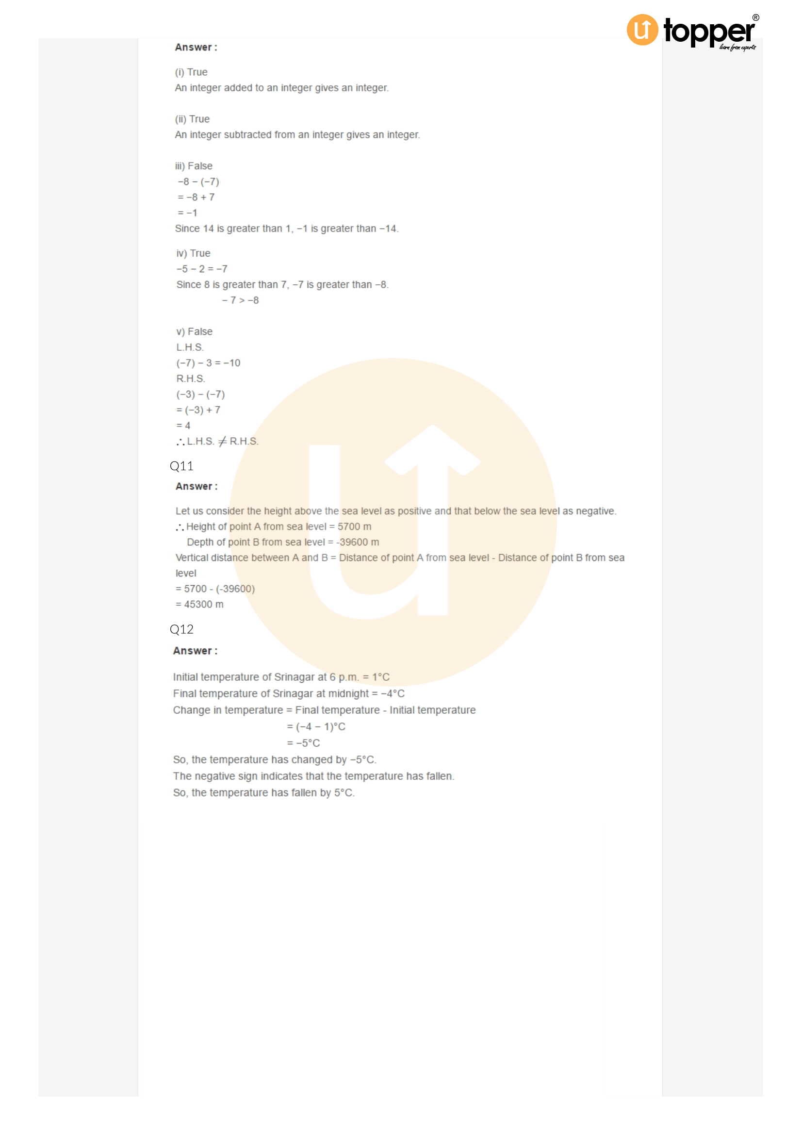 RS Aggawal Class 6 Maths Solutions Chapter 4 – Integers