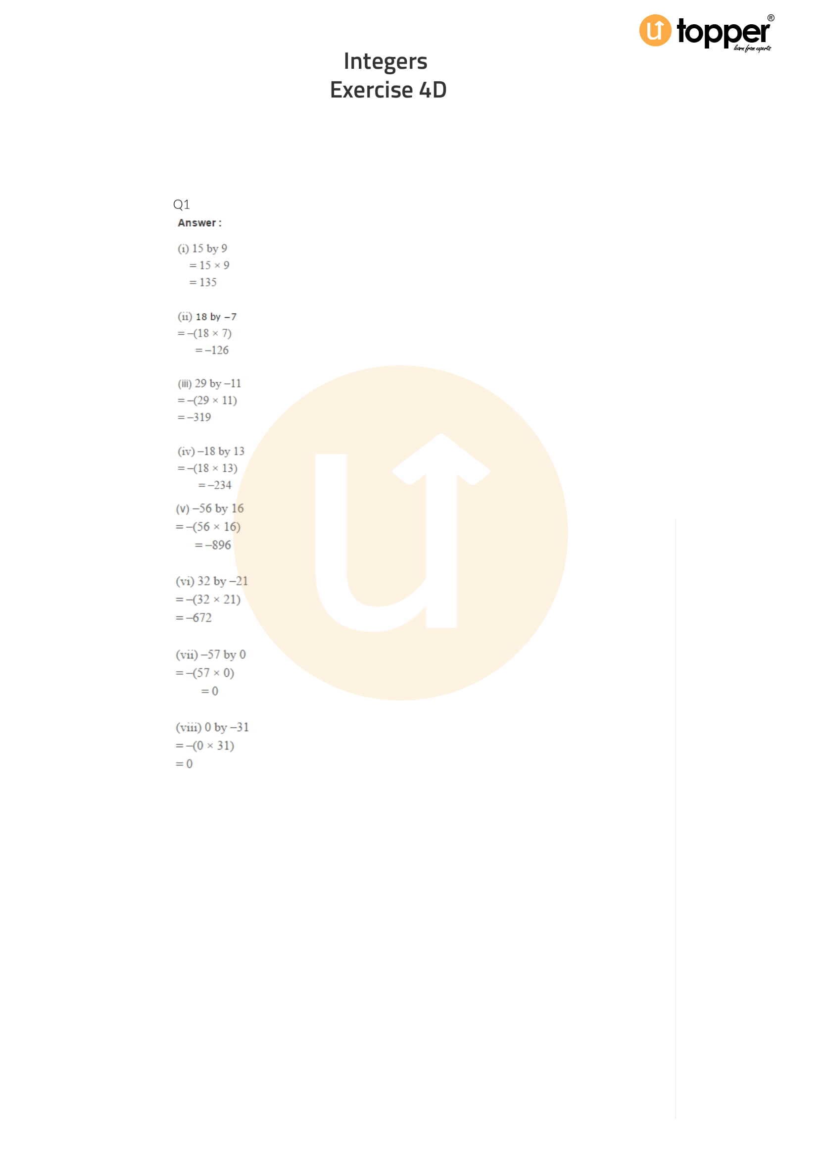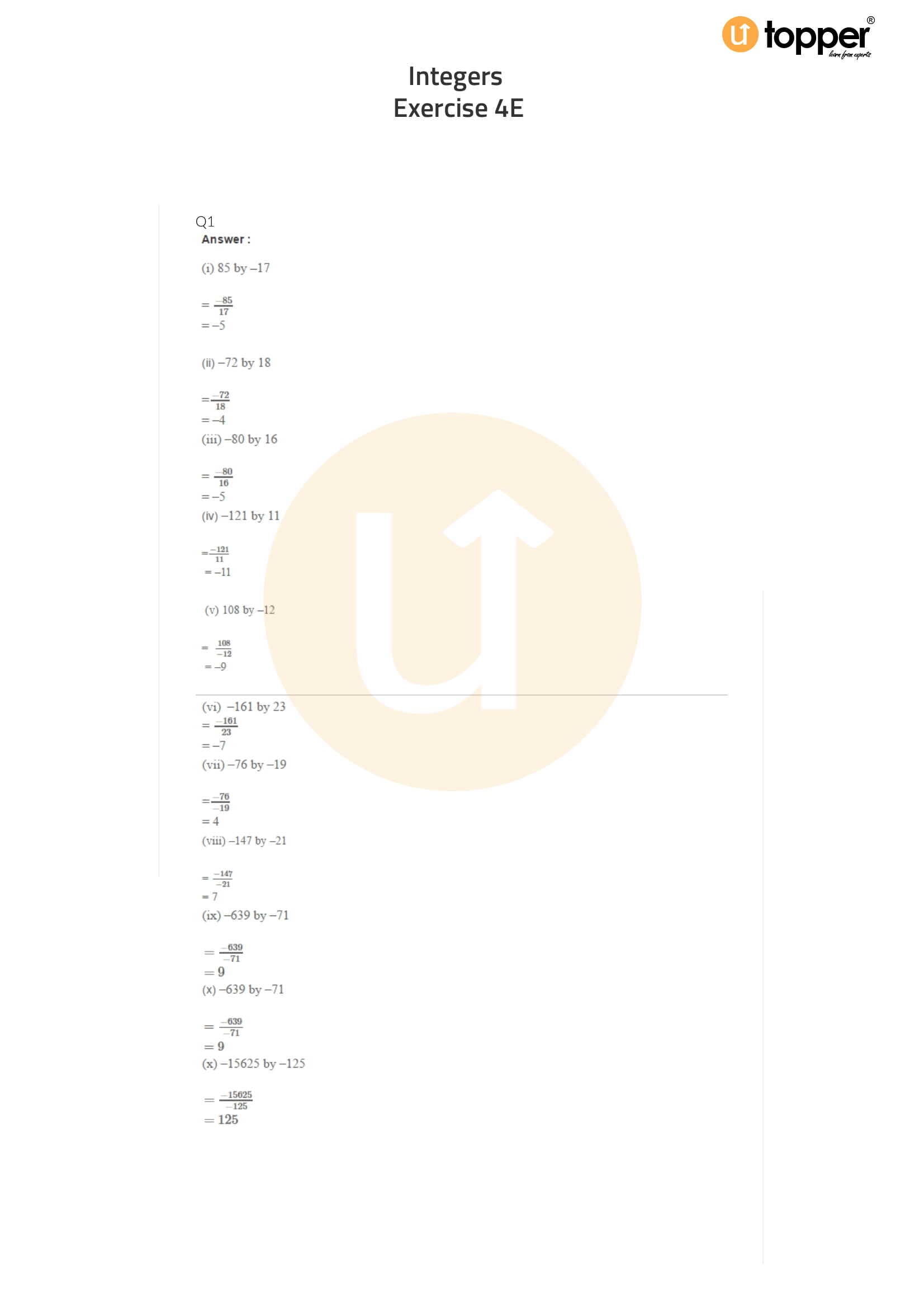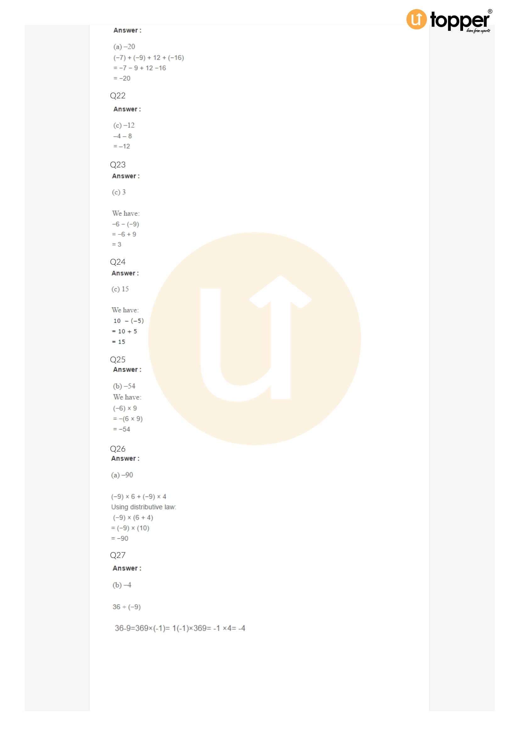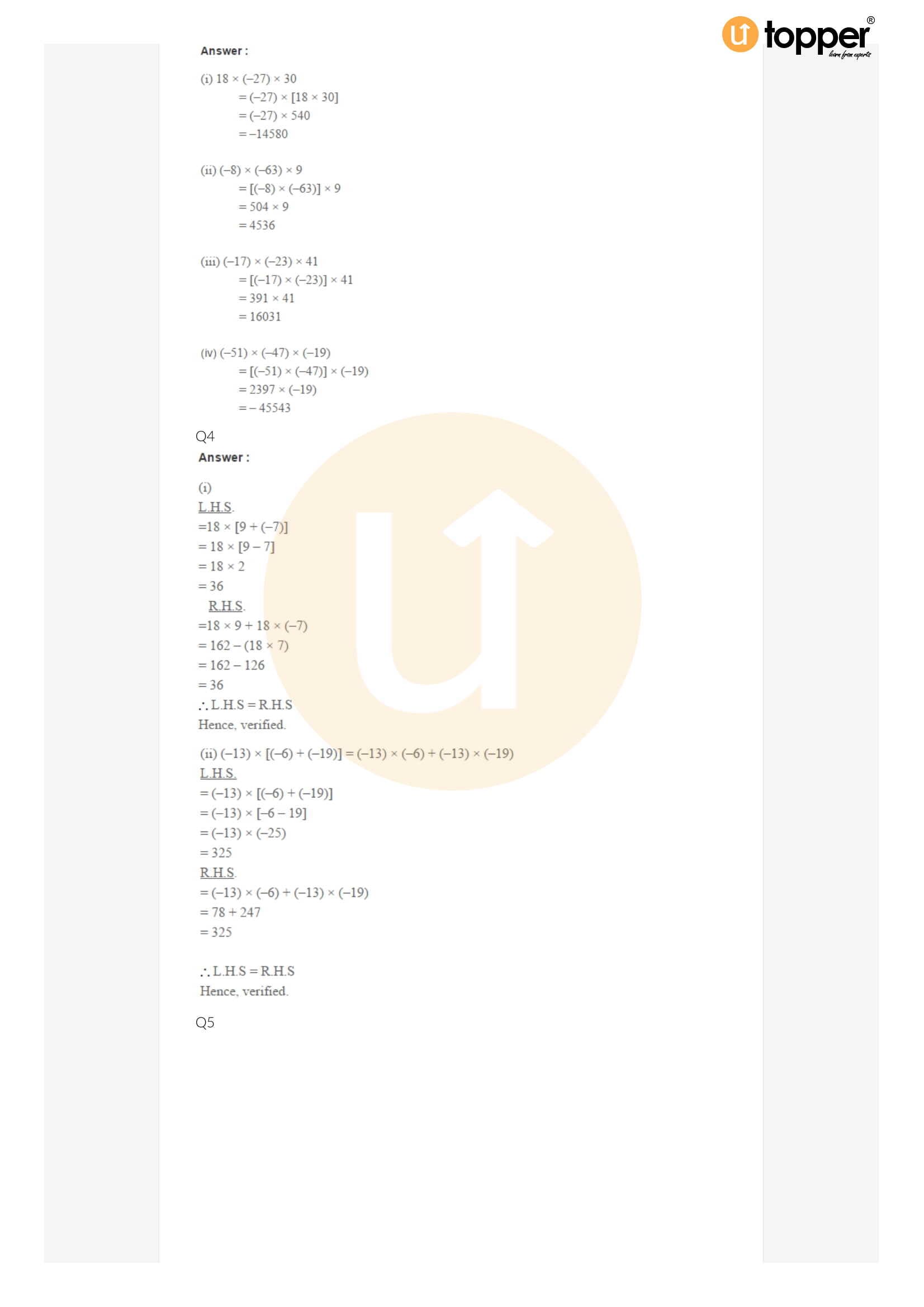 RS Aggawal Class 6 Maths Solutions Chapter 4 – Integers