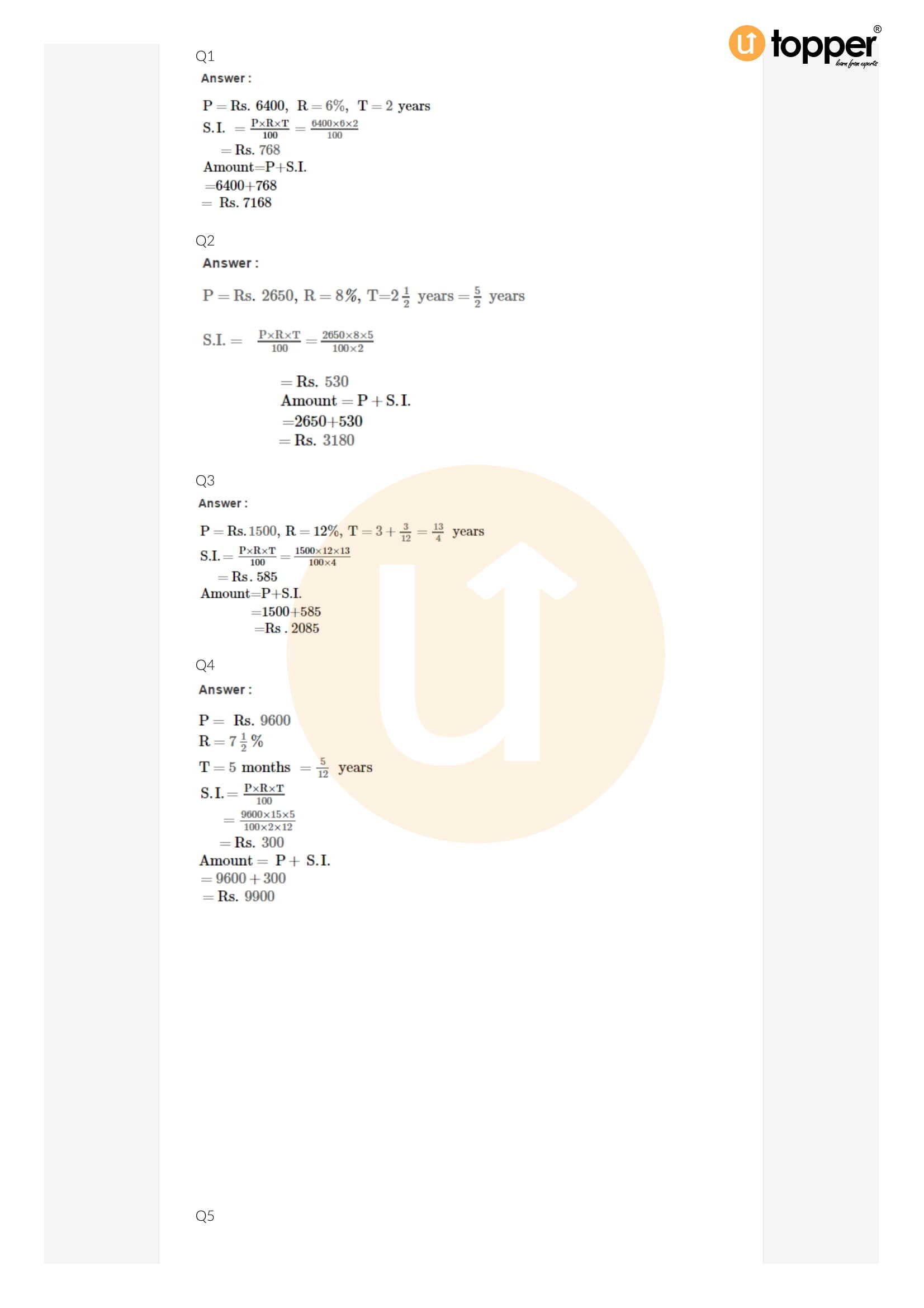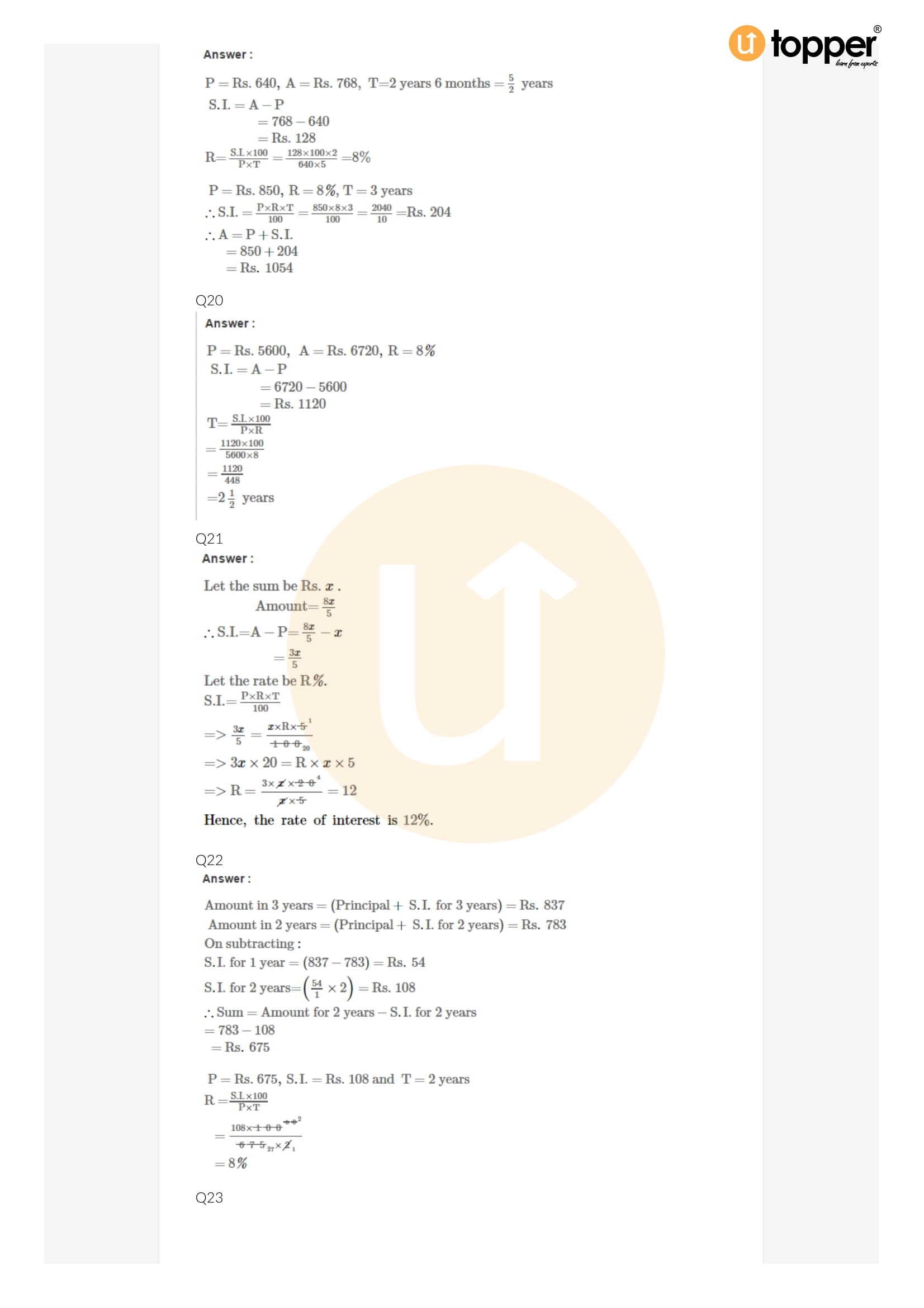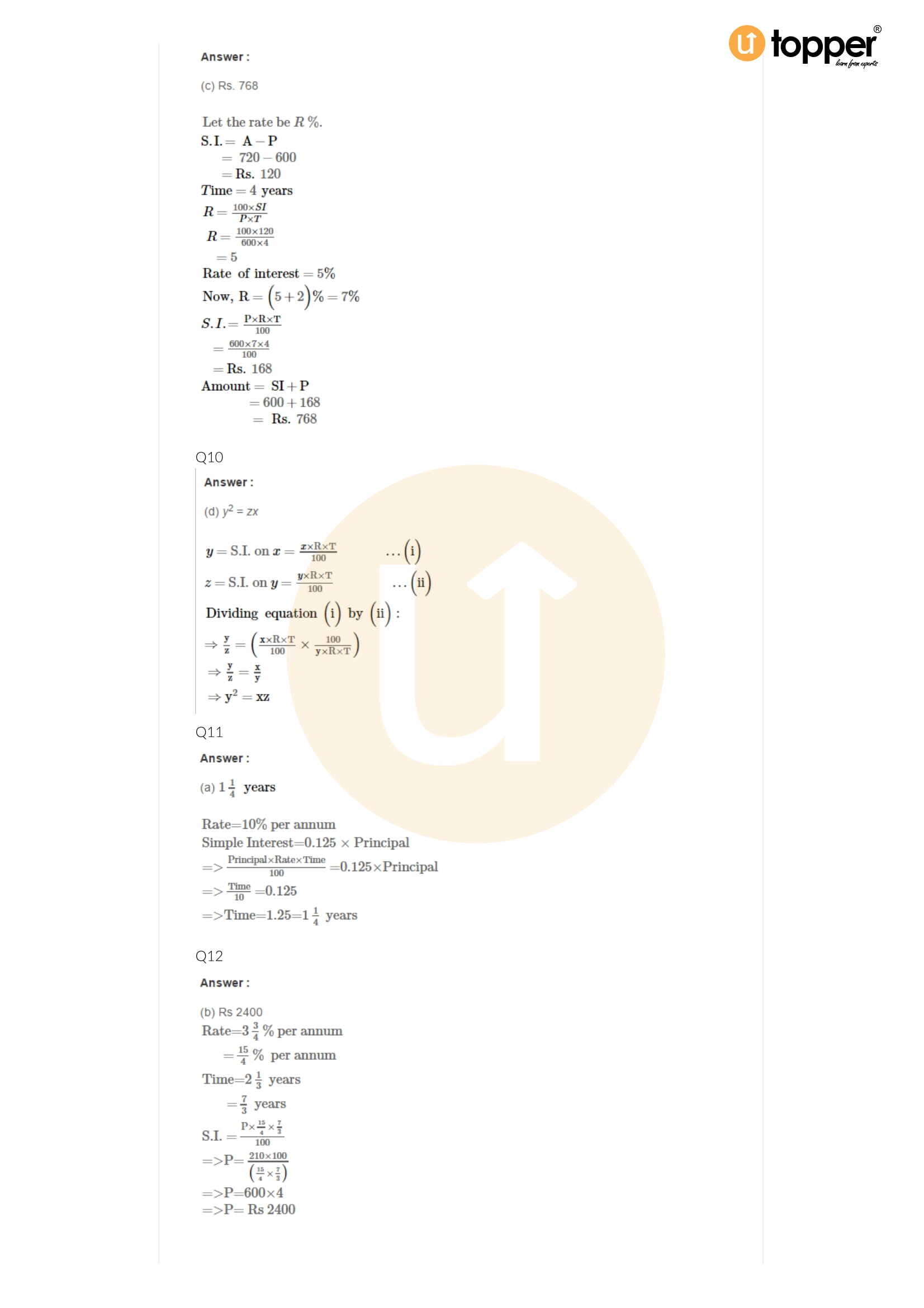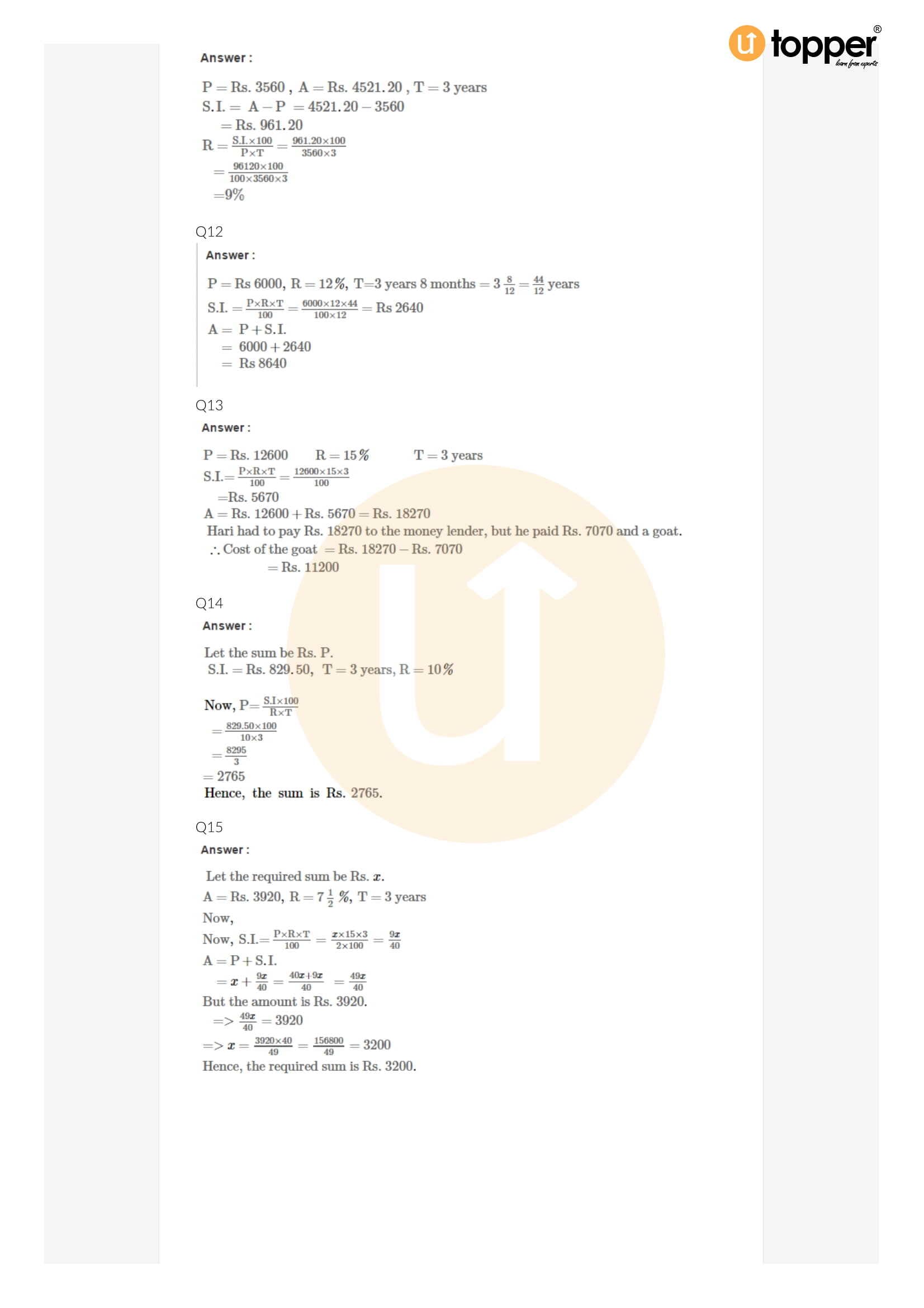 RS Aggarwal Class 7 Maths Chapter 12 – Simple Interest Solutions PDF