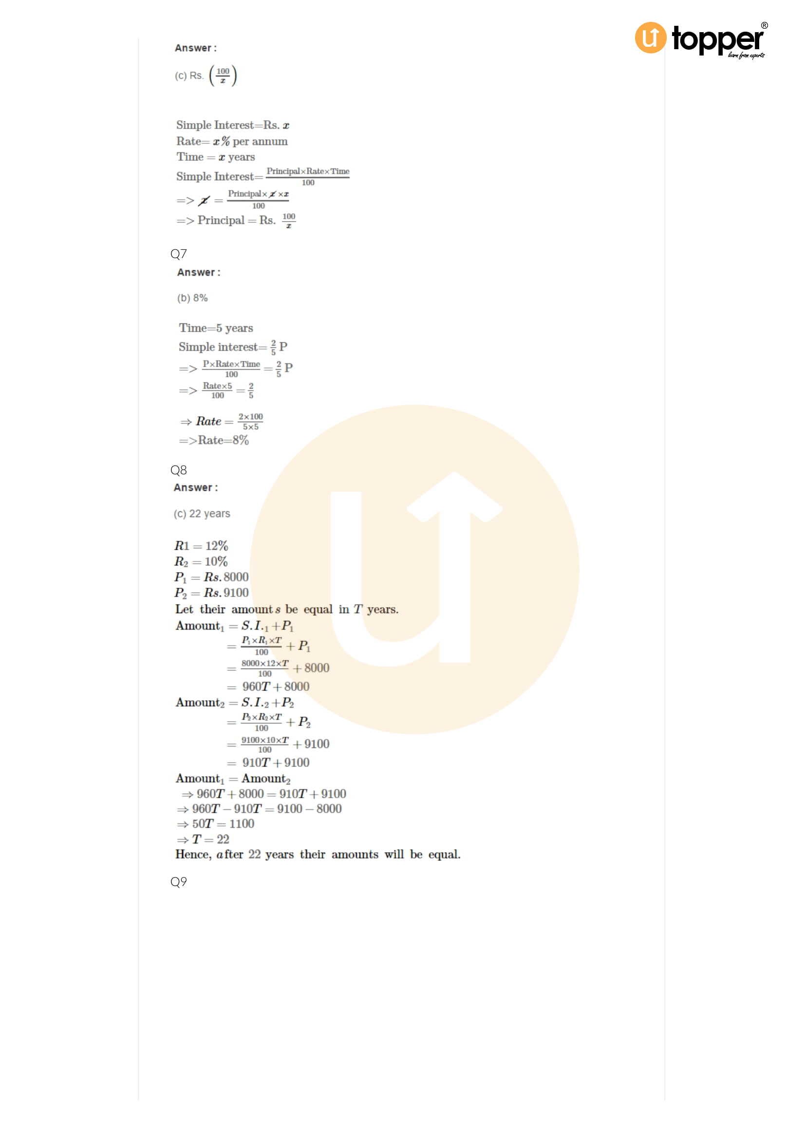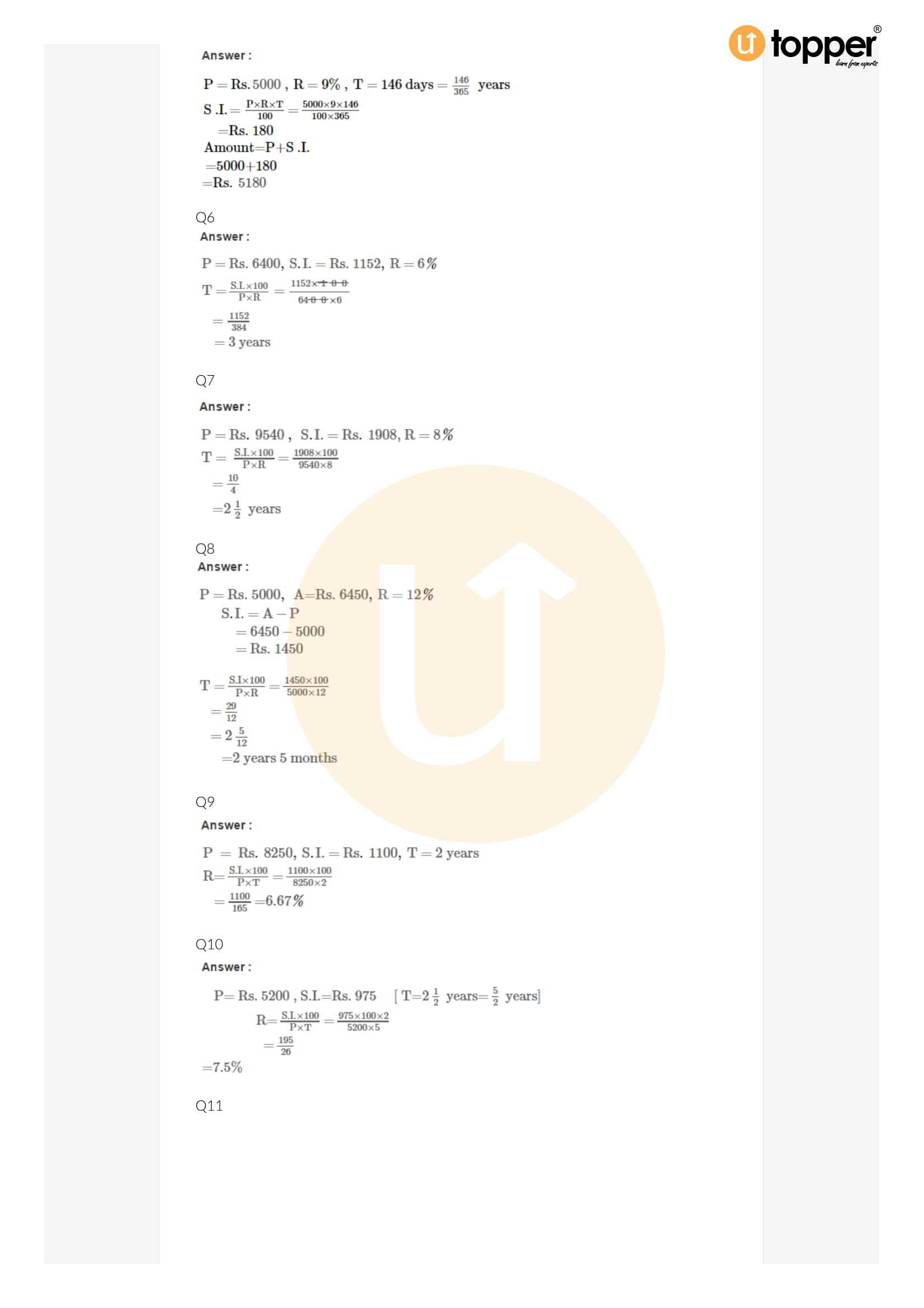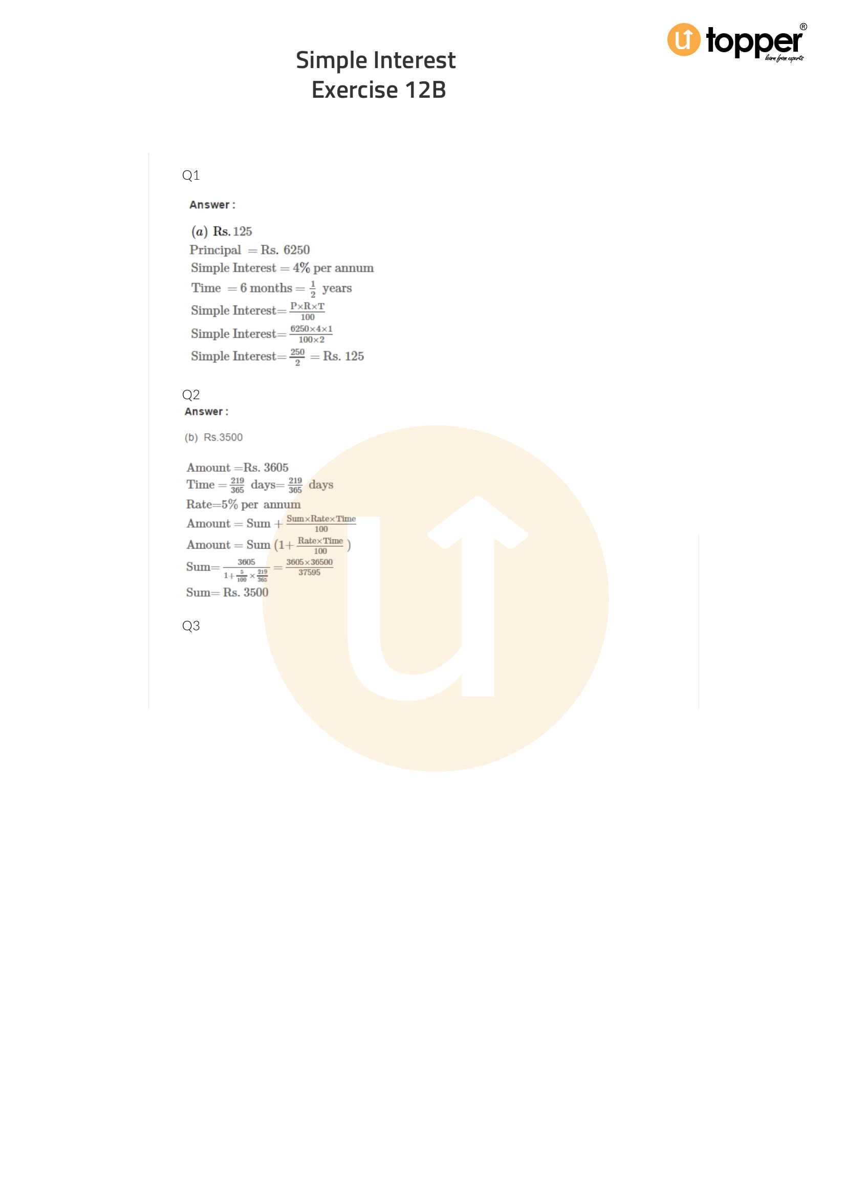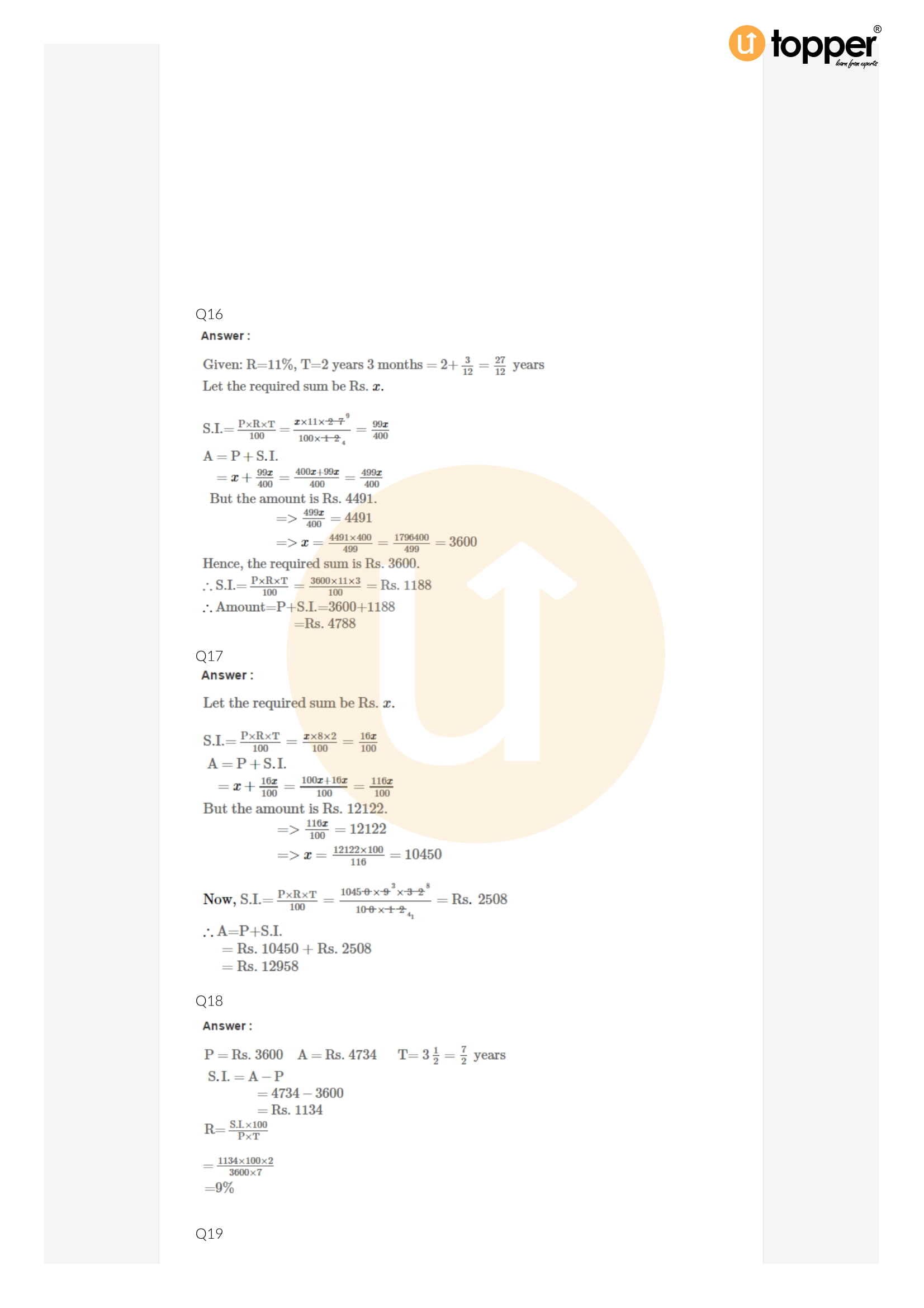 RS Aggarwal Class 7 Maths Chapter 12 – Simple Interest Solutions PDF