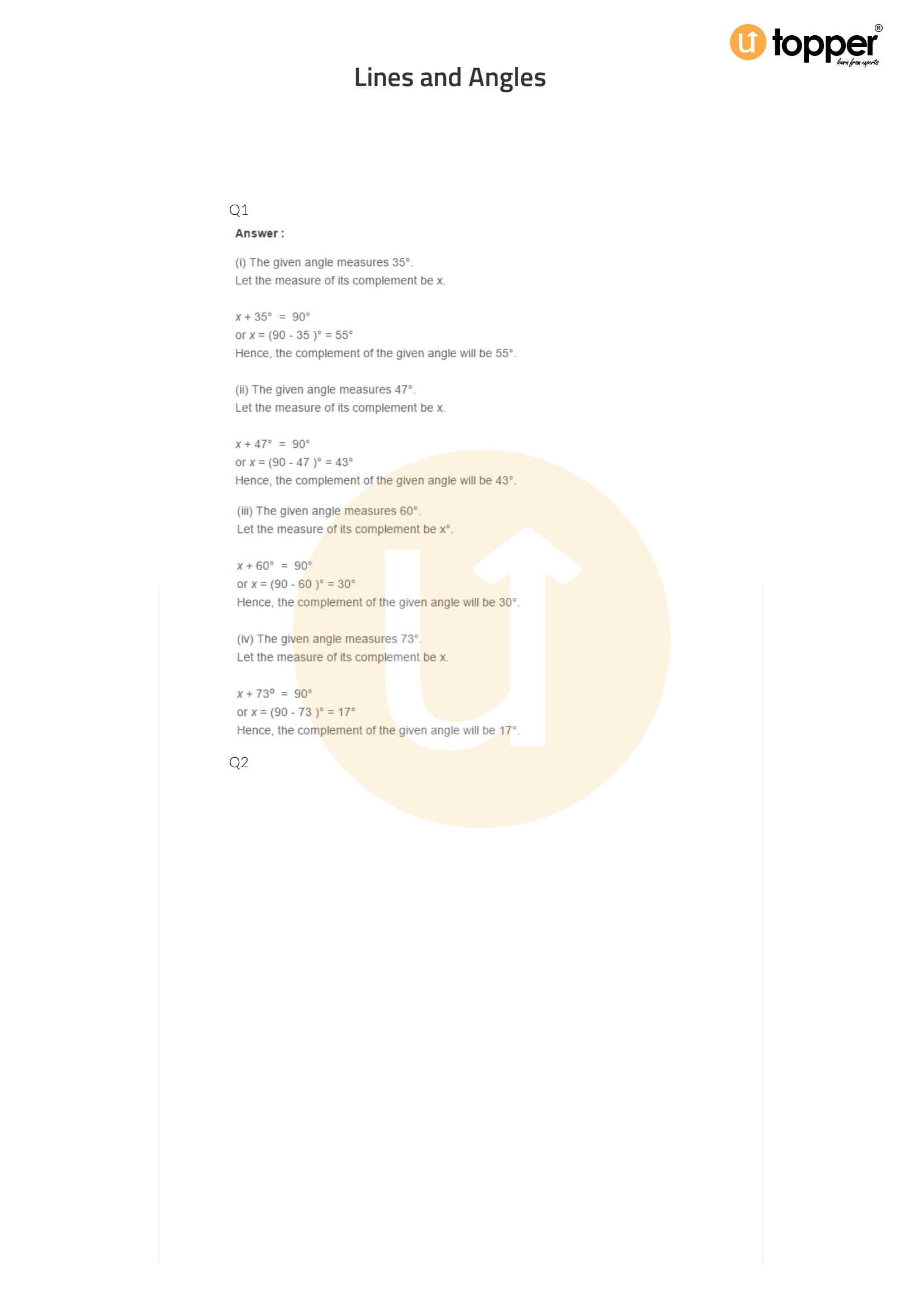RS Aggawal Class 7 Maths Solutions Chapter 13 – Lines and Angles
