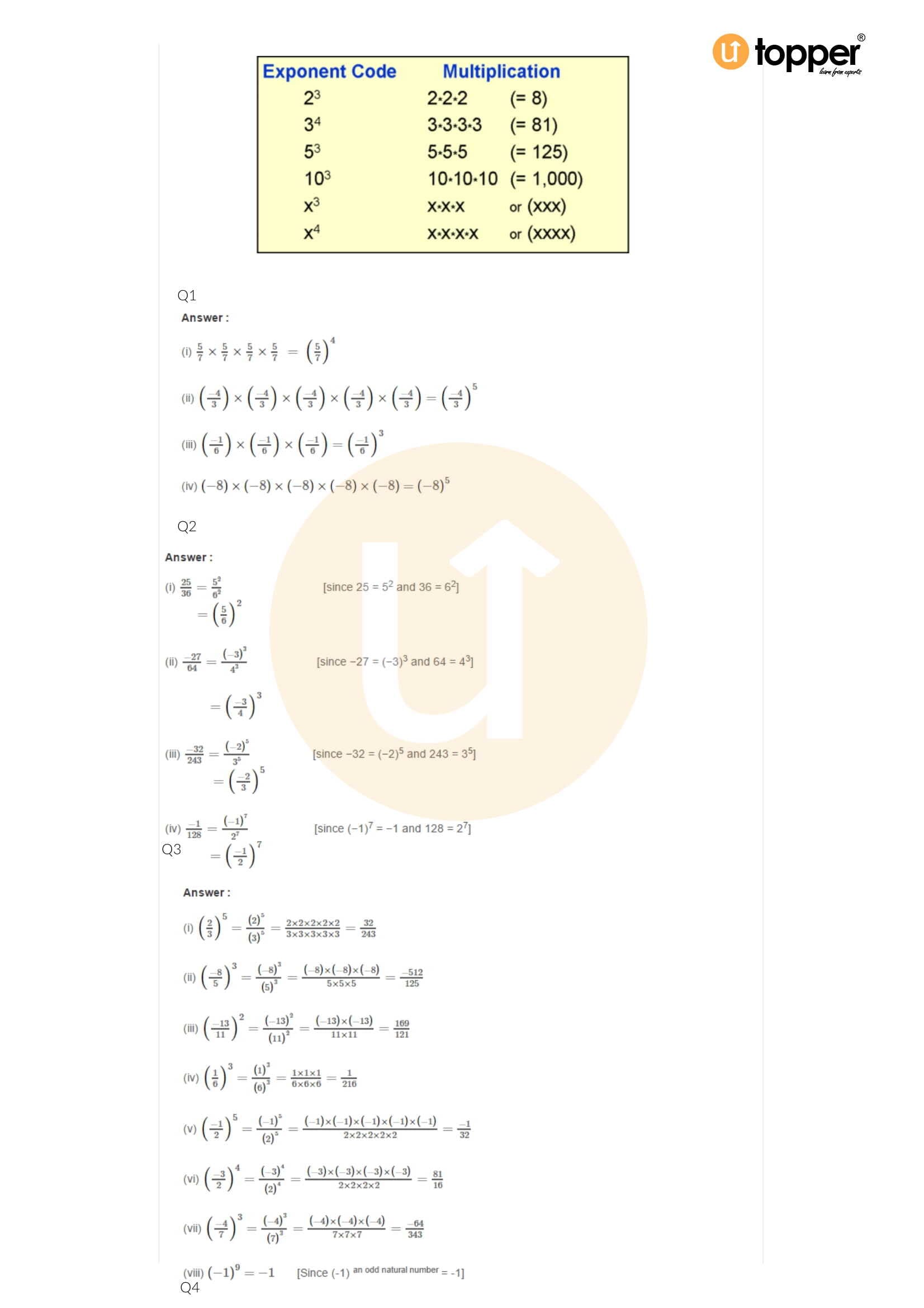 RS Aggawal Class 7 Maths Solutions Chapter 5 – Exponents