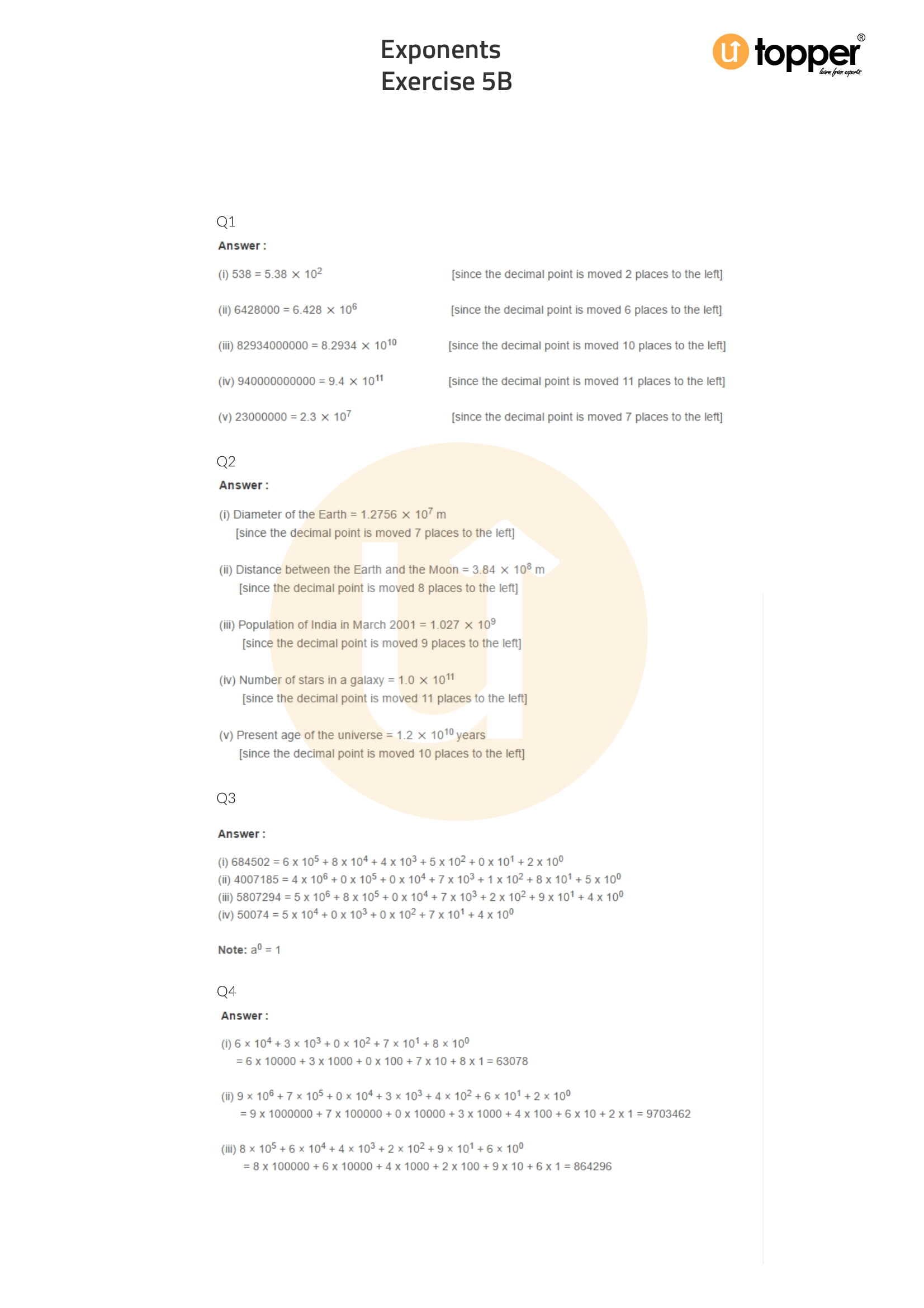 RS Aggarwal Class 7 Maths Chapter 5 – Exponents Solutions PDF