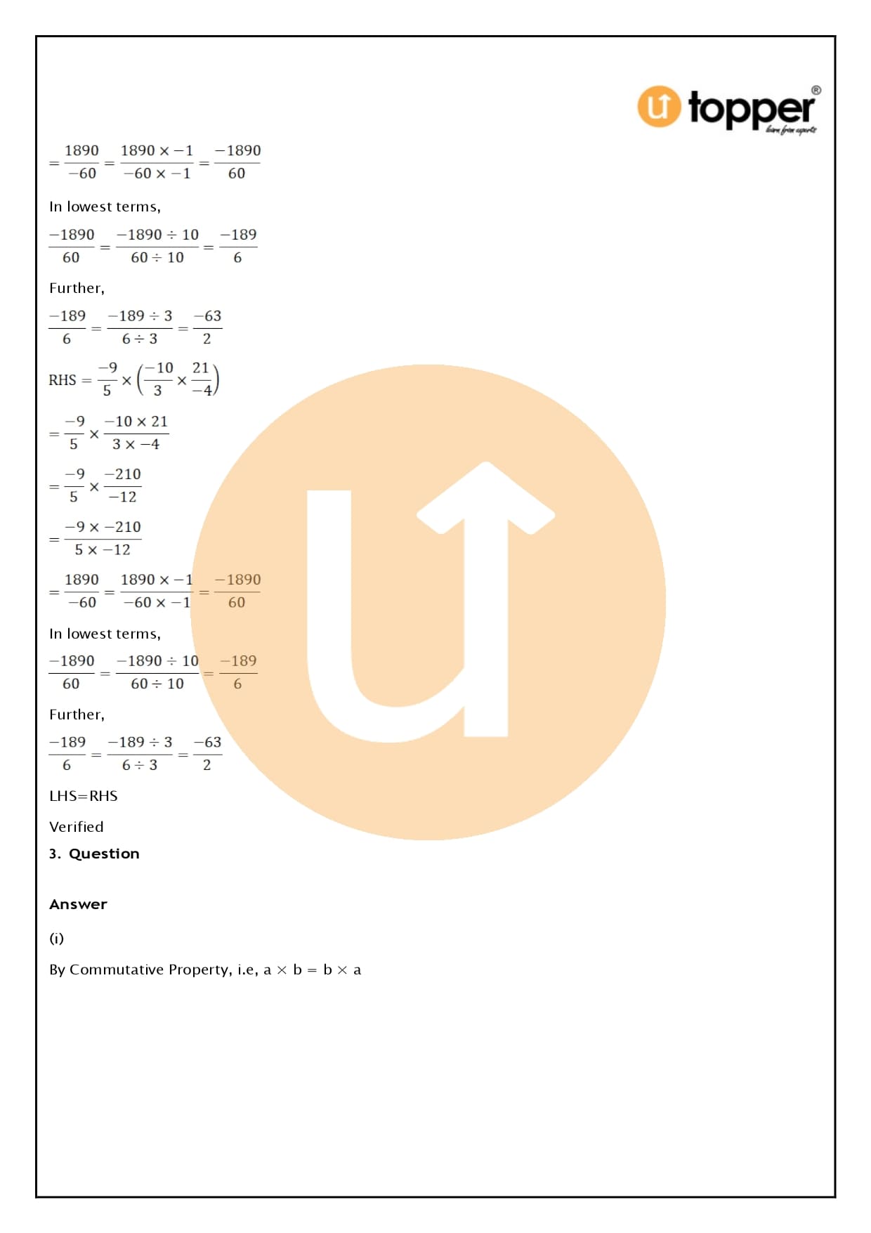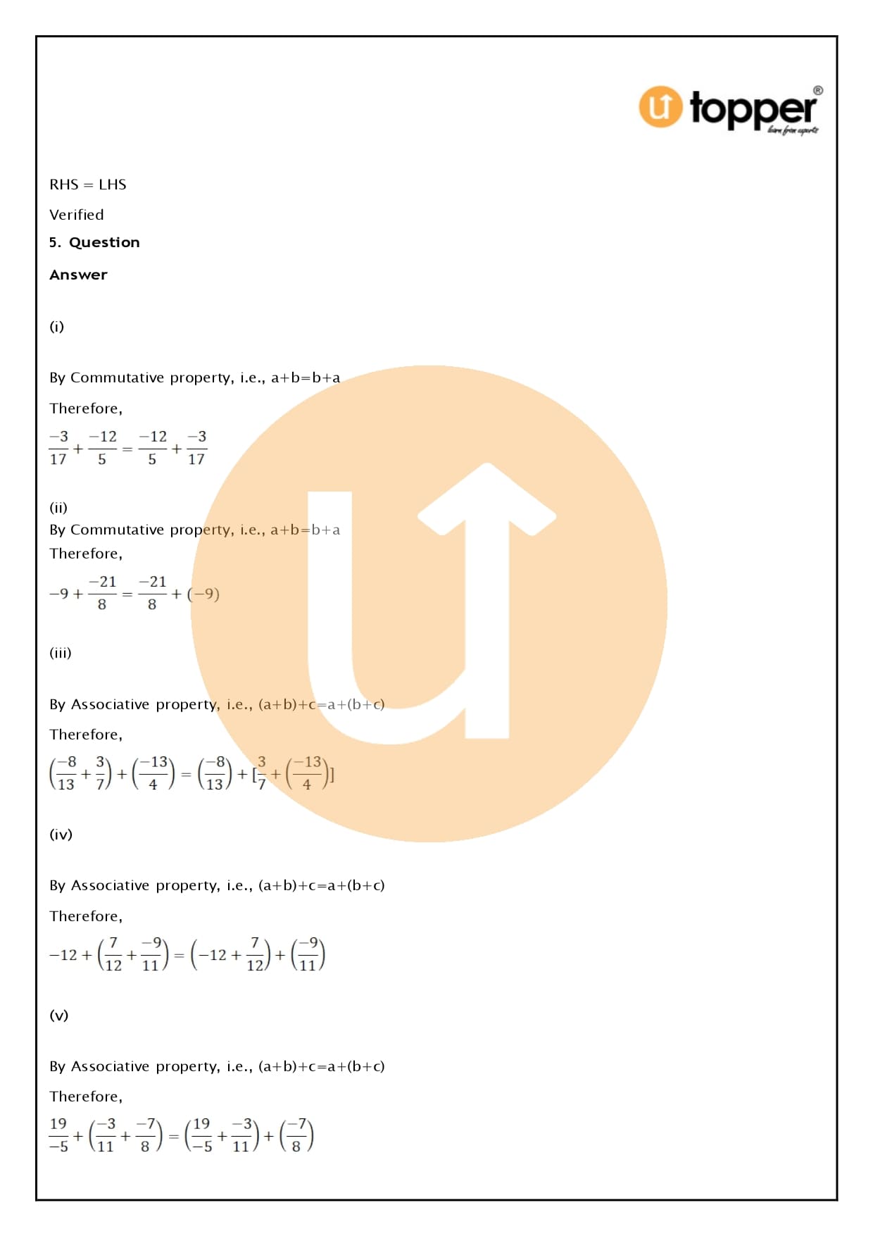 3. Rational Number Properties: The following list includes a variety of rational number properties: