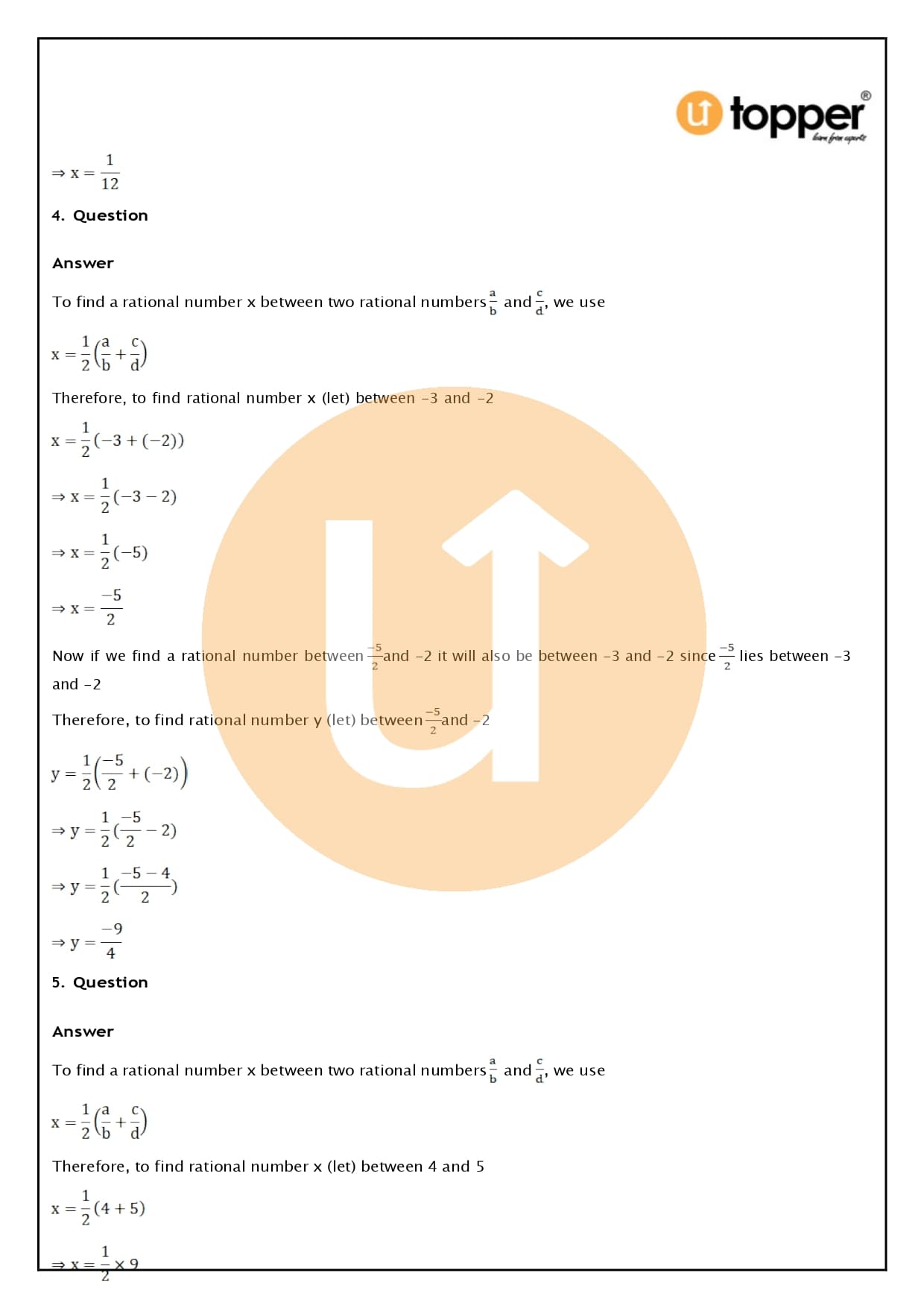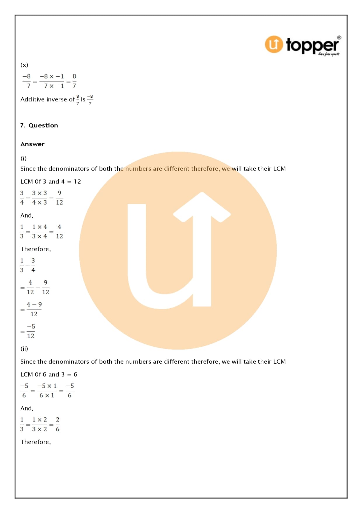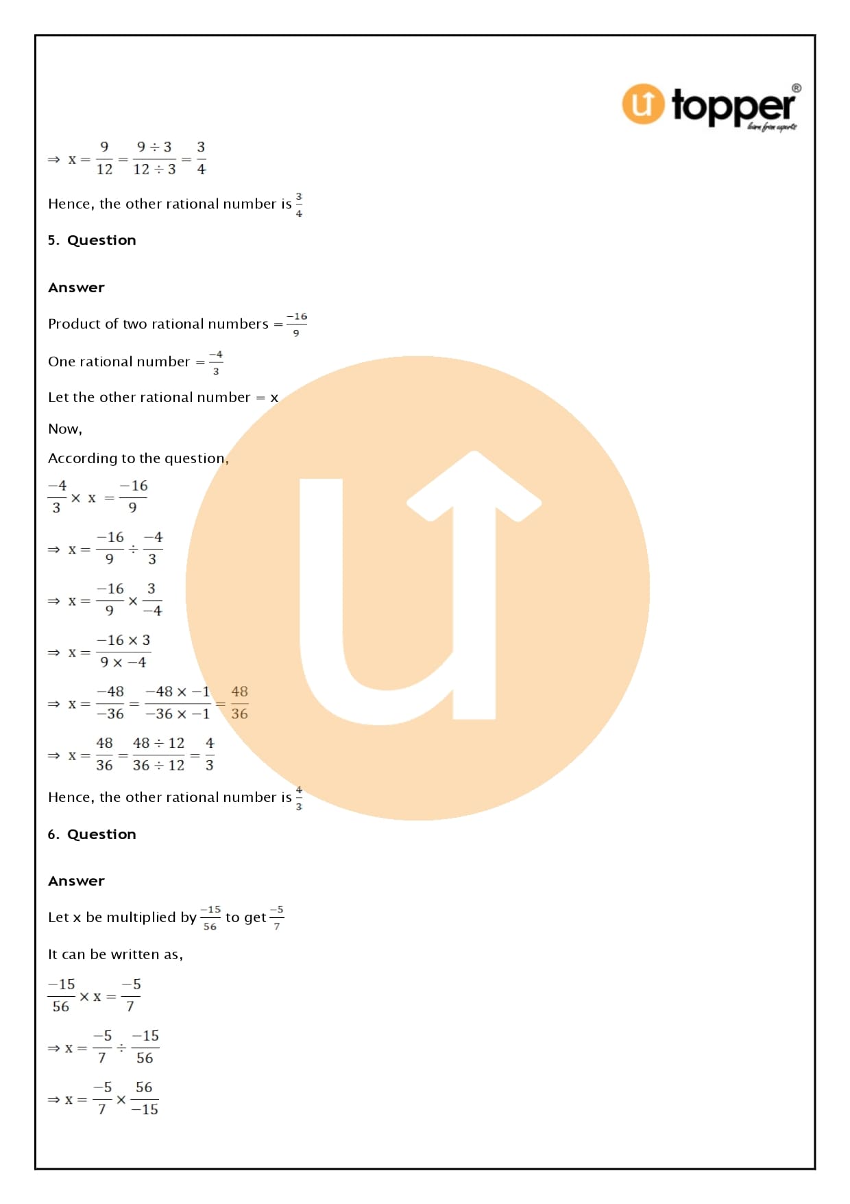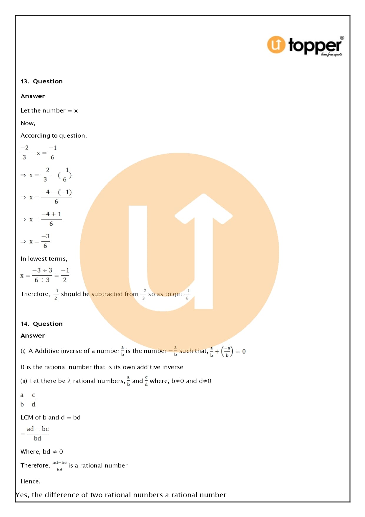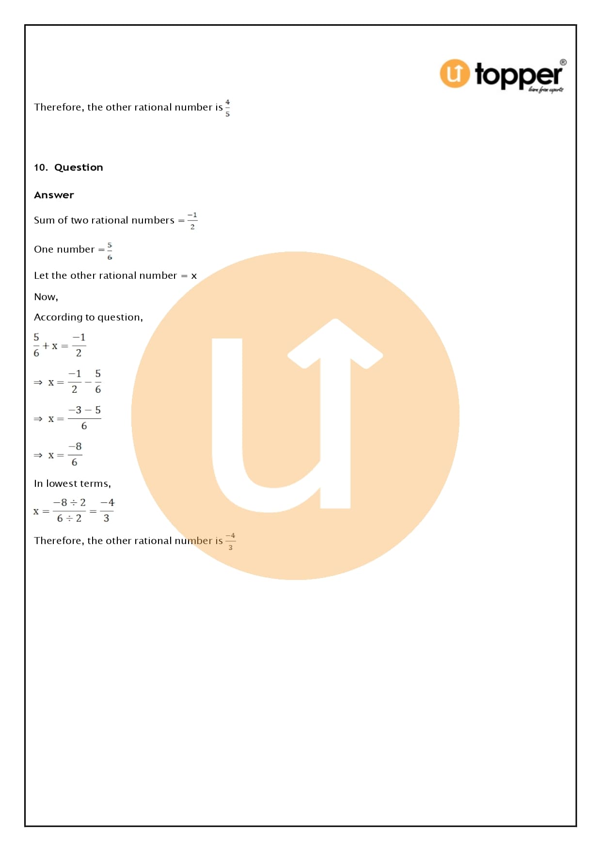 Another challenging area of mathematics that can easily confuse a learner is the chapter on rational numbers. Therefore, it is imperative to possess a solid understanding of the ideas and formulas relating to rational numbers. These chapter’s solutions will teach students a lot. Here are a few ideas that they will comprehend more fully if they consult the solution file.