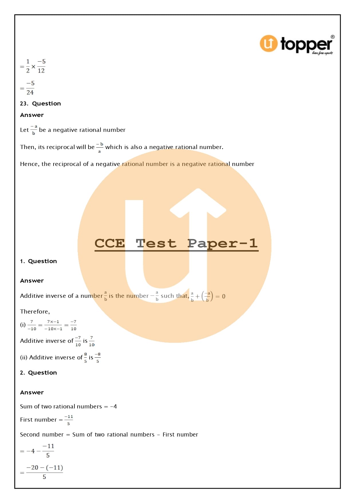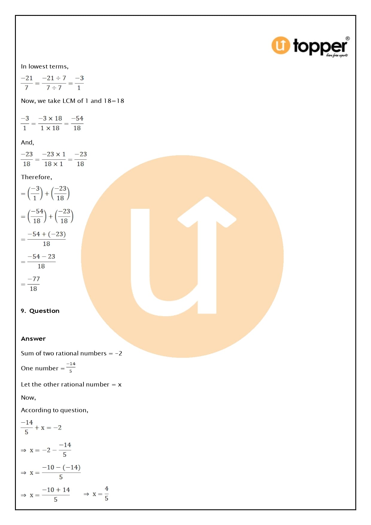 Chapter 1: Rational Numbers, Important Topics for RS Aggarwal Class 8 Solutions