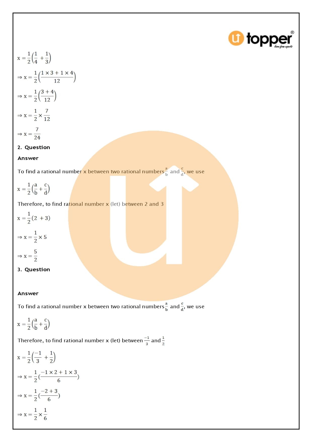 2. Rational Numbers: A rational number is a pair of numbers that have a ratio. Rational numbers include, for instance, 1/2 and 1/3, although it should be remembered that the denominator can never be zero.