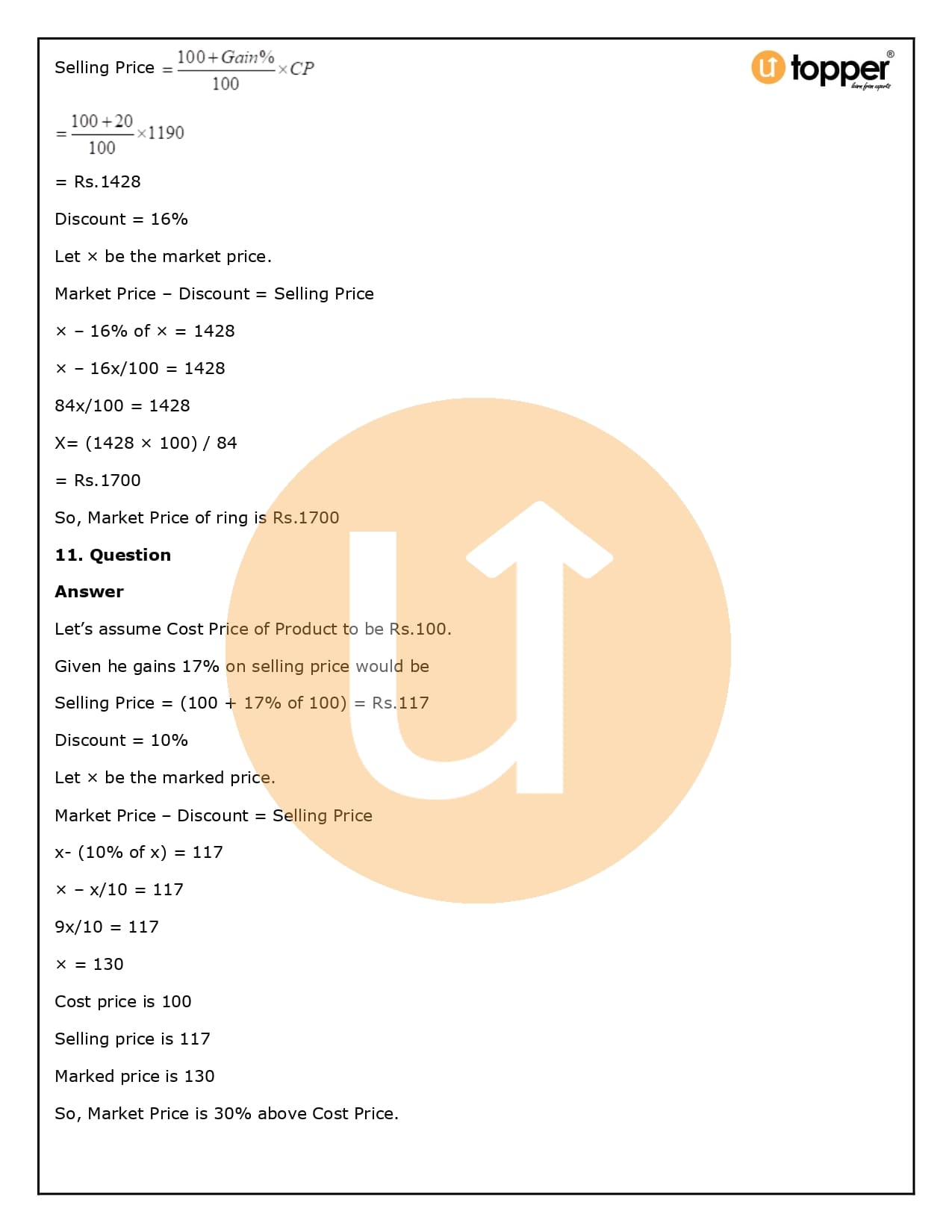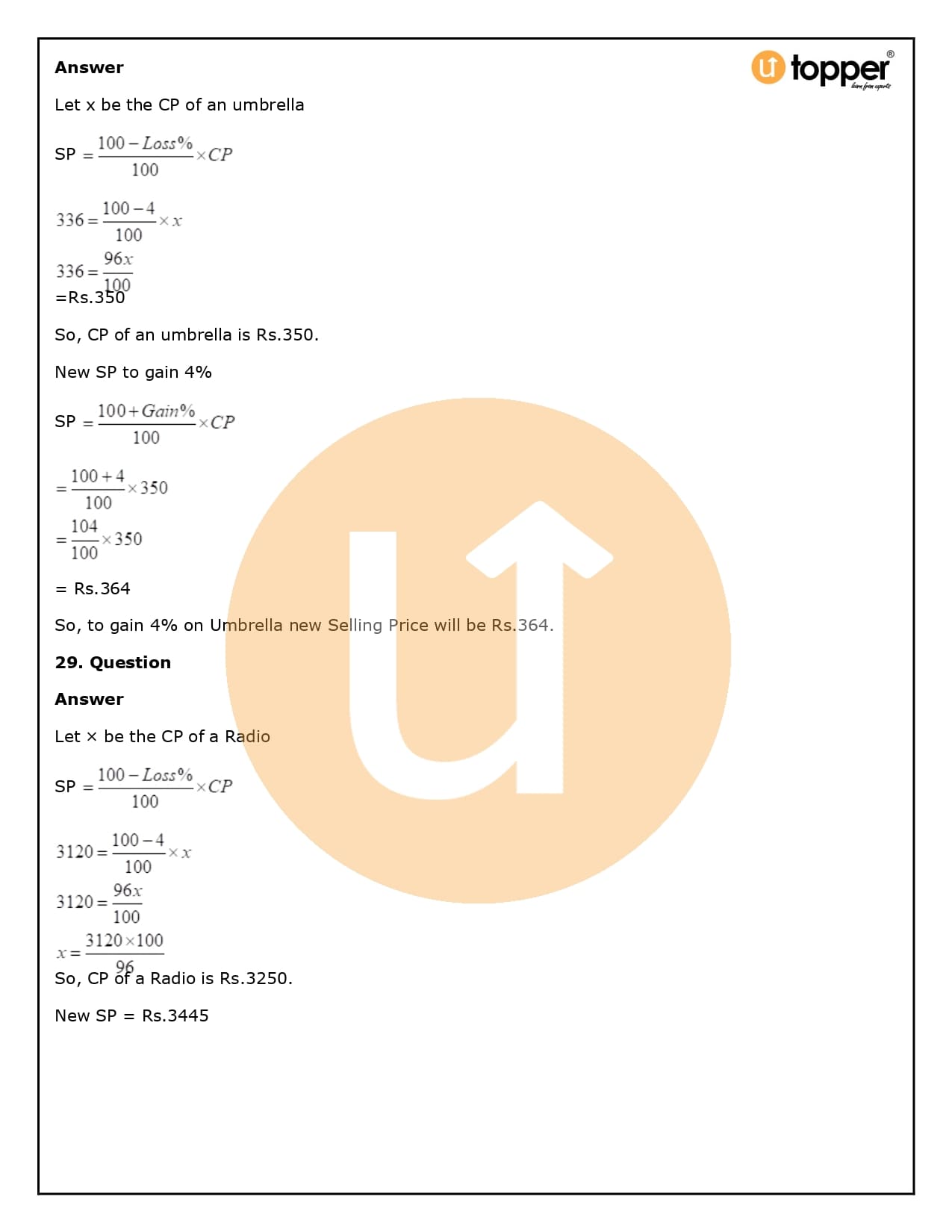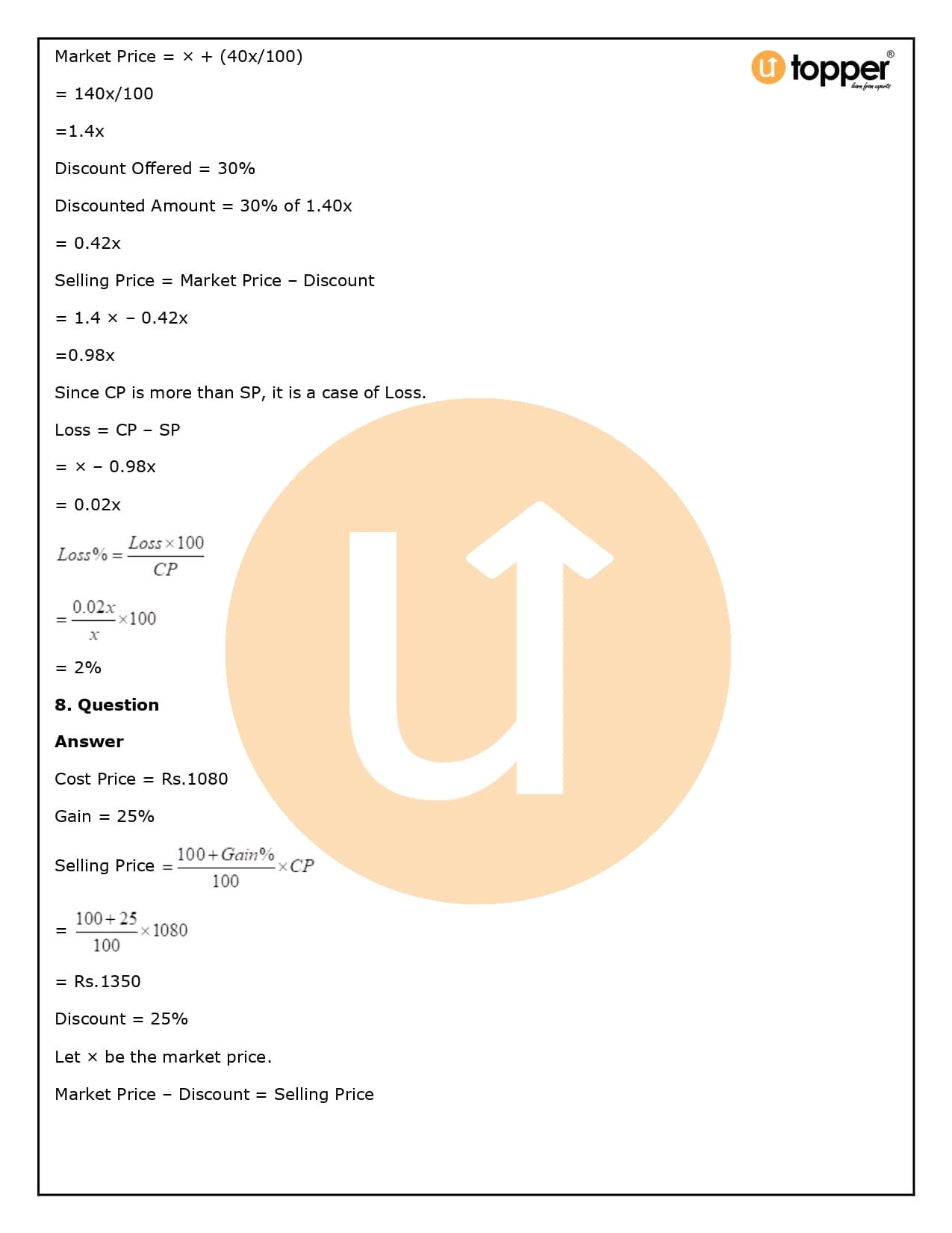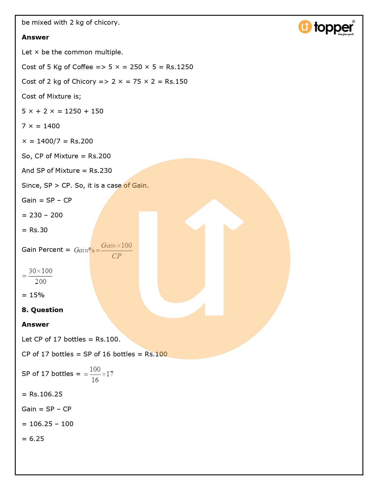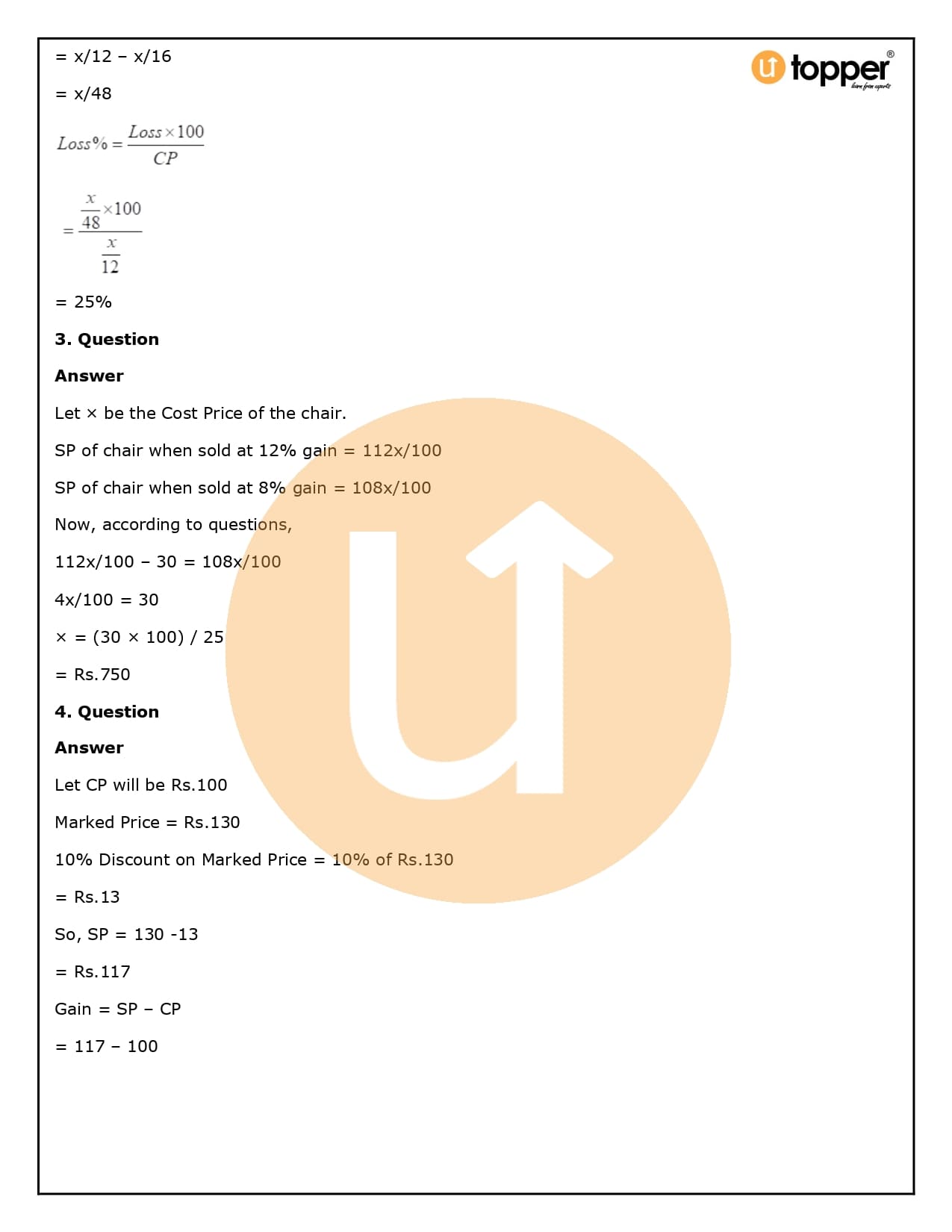 2. How will Utopper help me solve the questions in RS Aggarwal Solutions for Class 8 Chapter 10 (Profit and loss)?