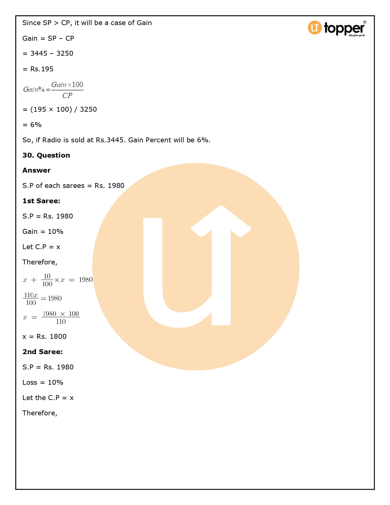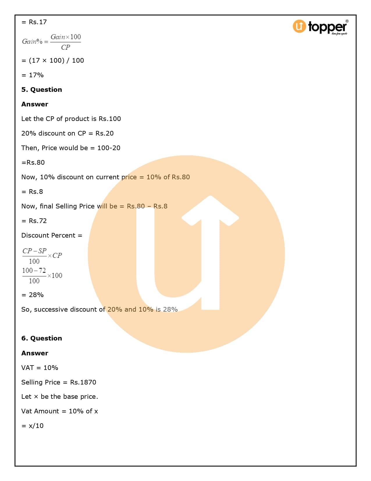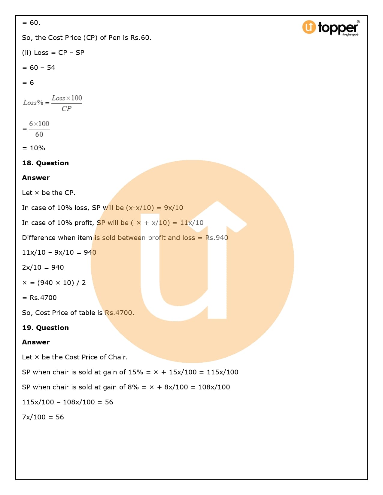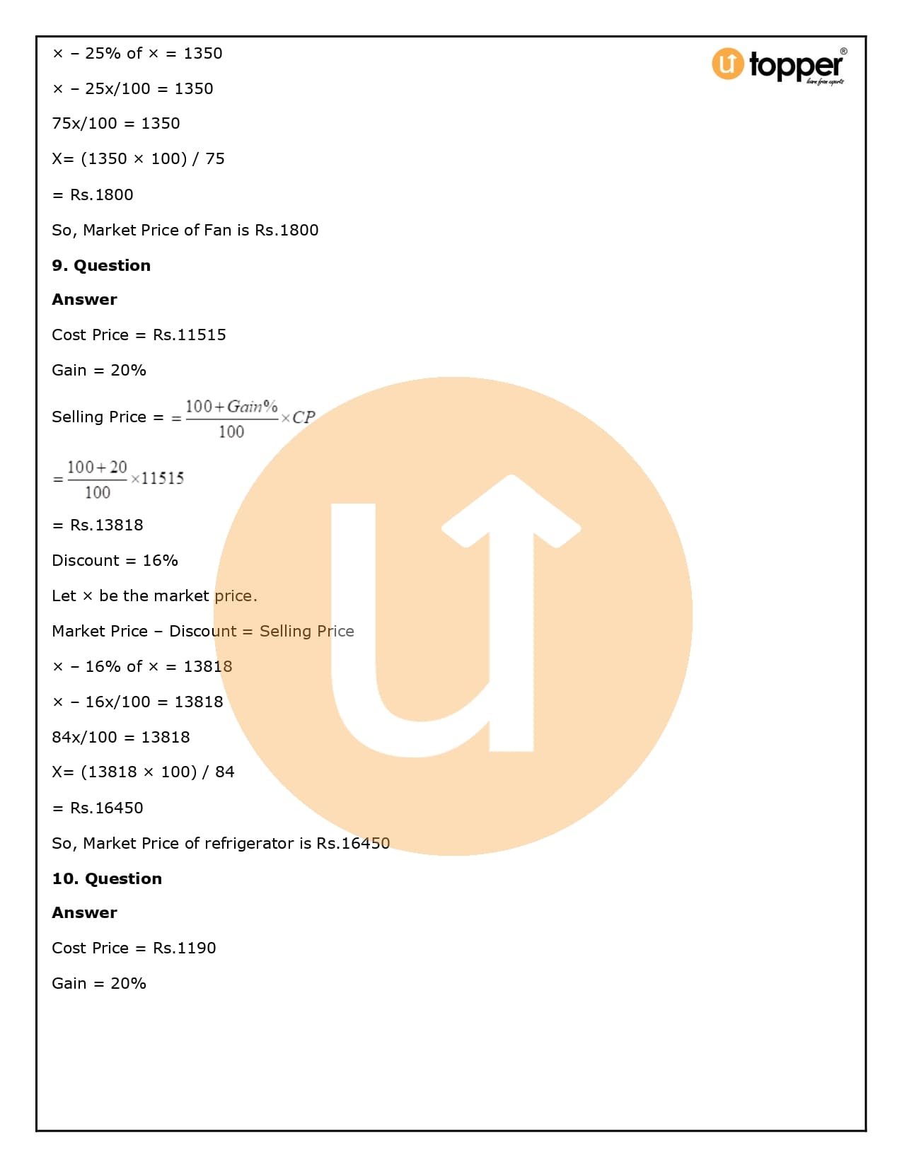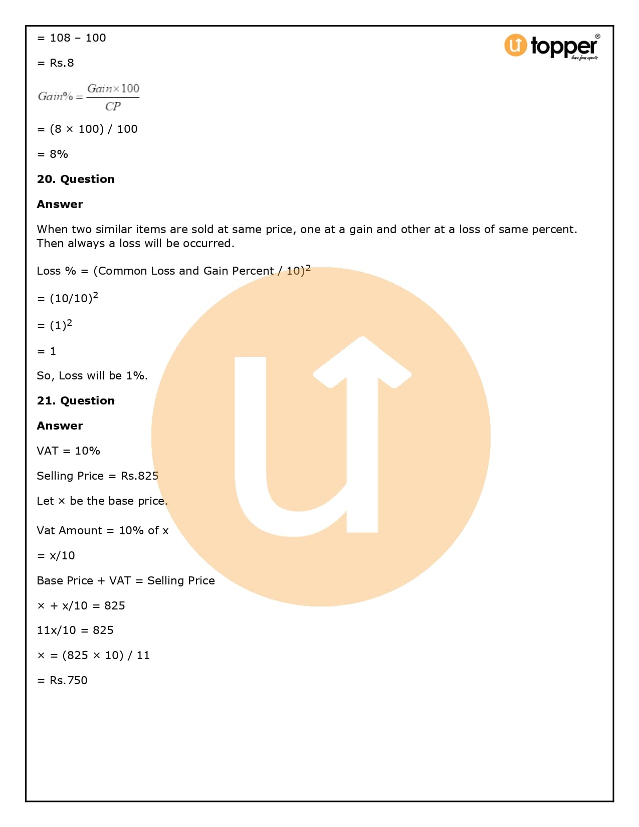 2. How will Utopper help me solve the questions in RS Aggarwal Solutions for Class 8 Chapter 10 (Profit and loss)?
