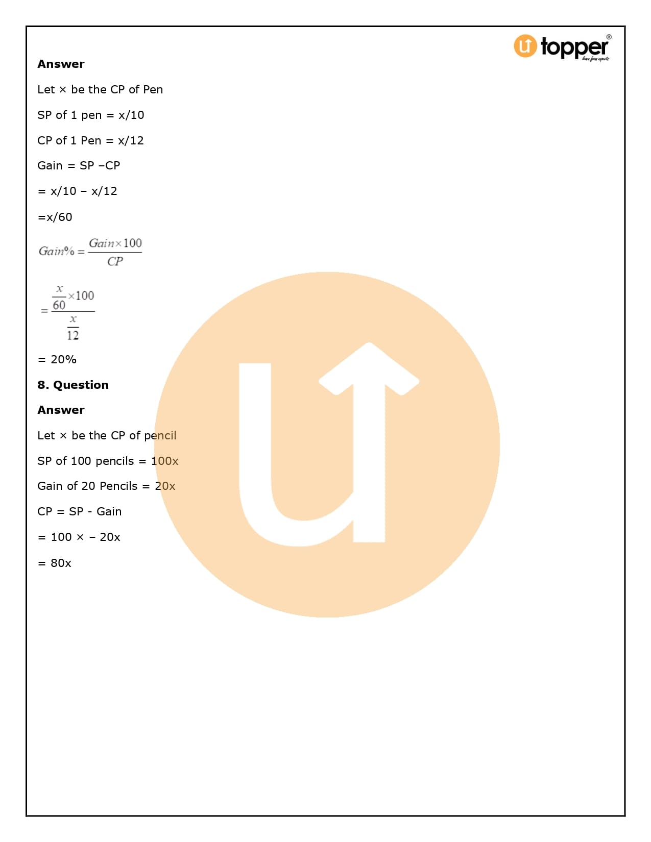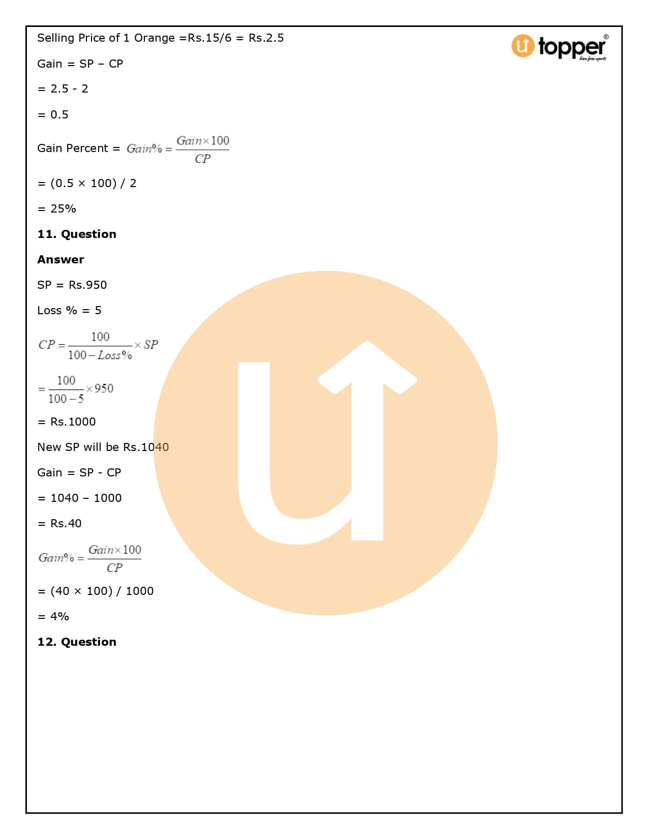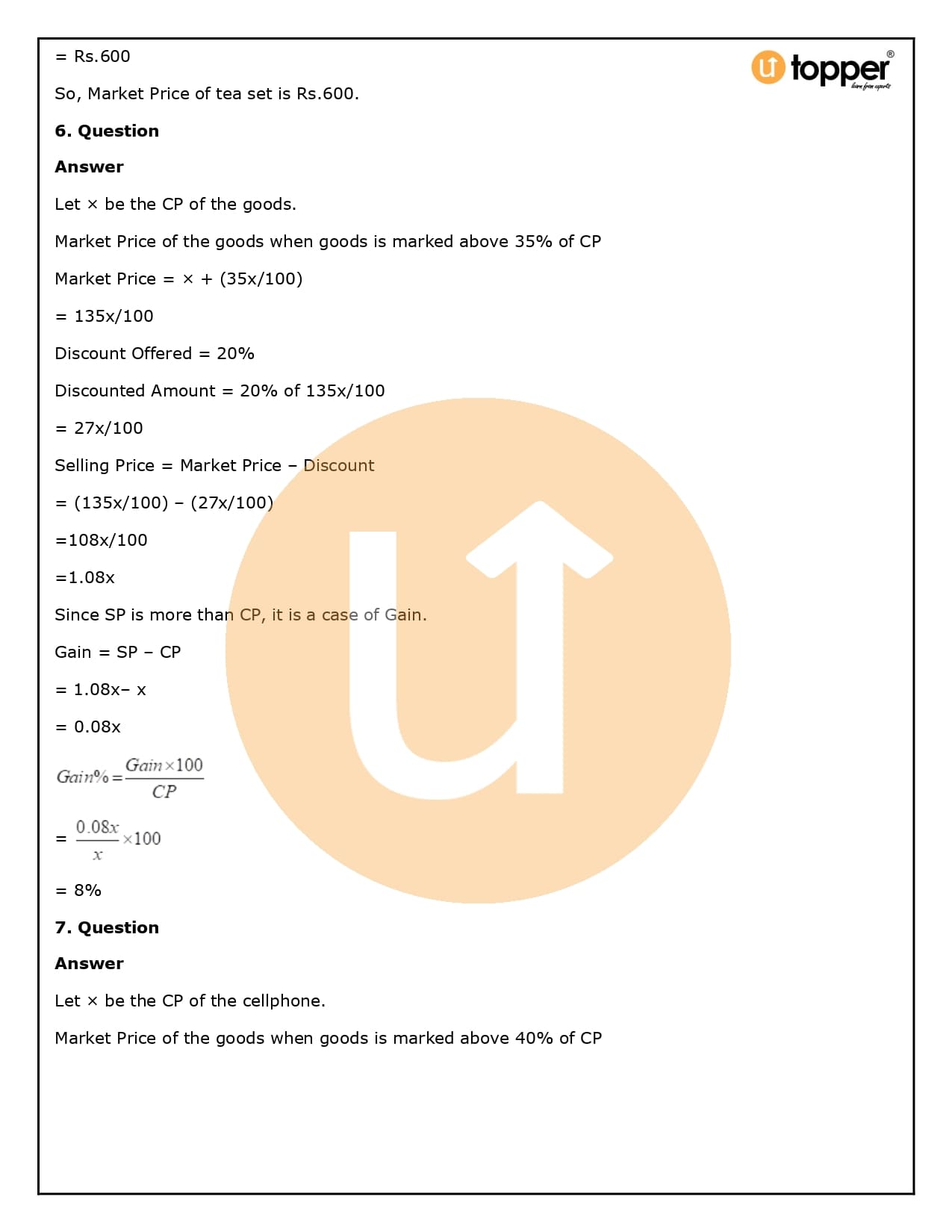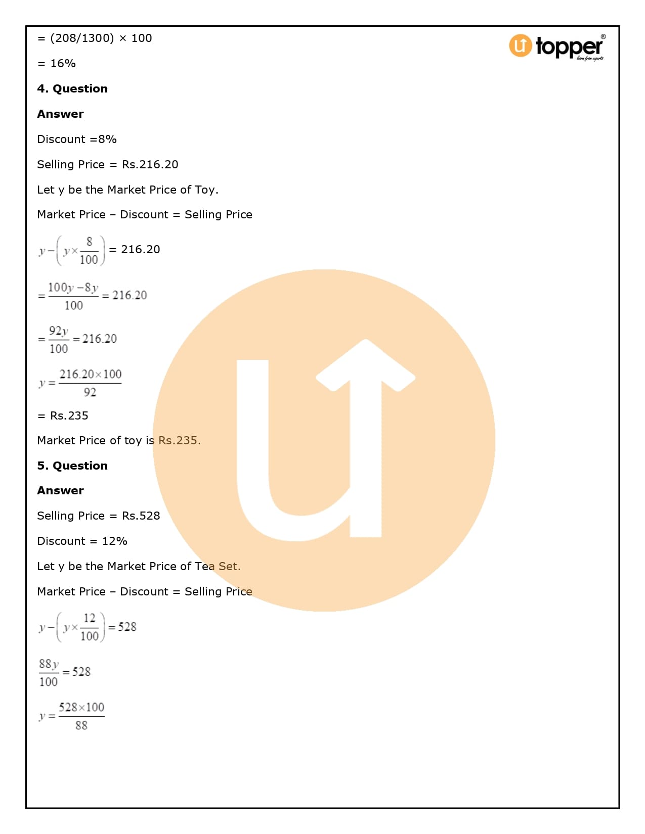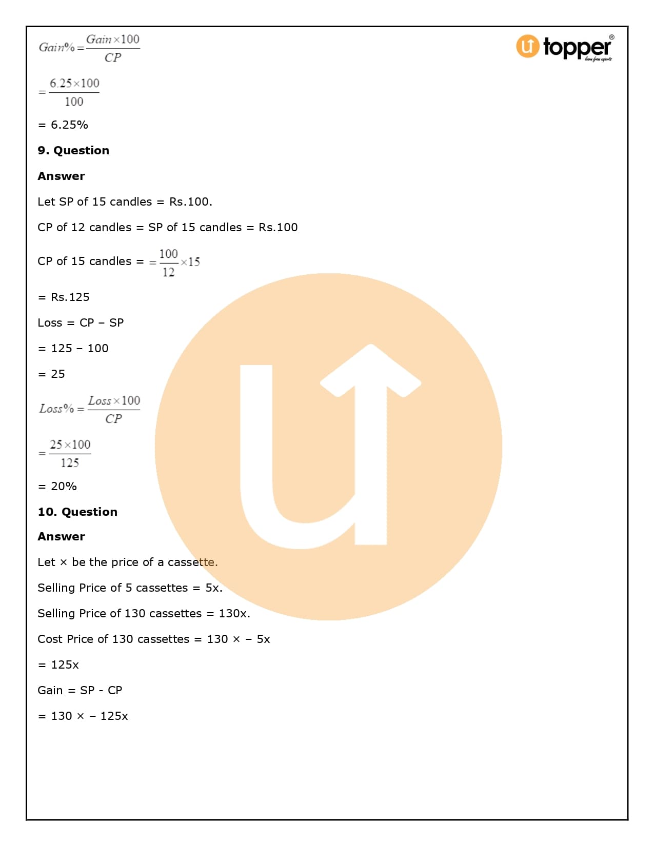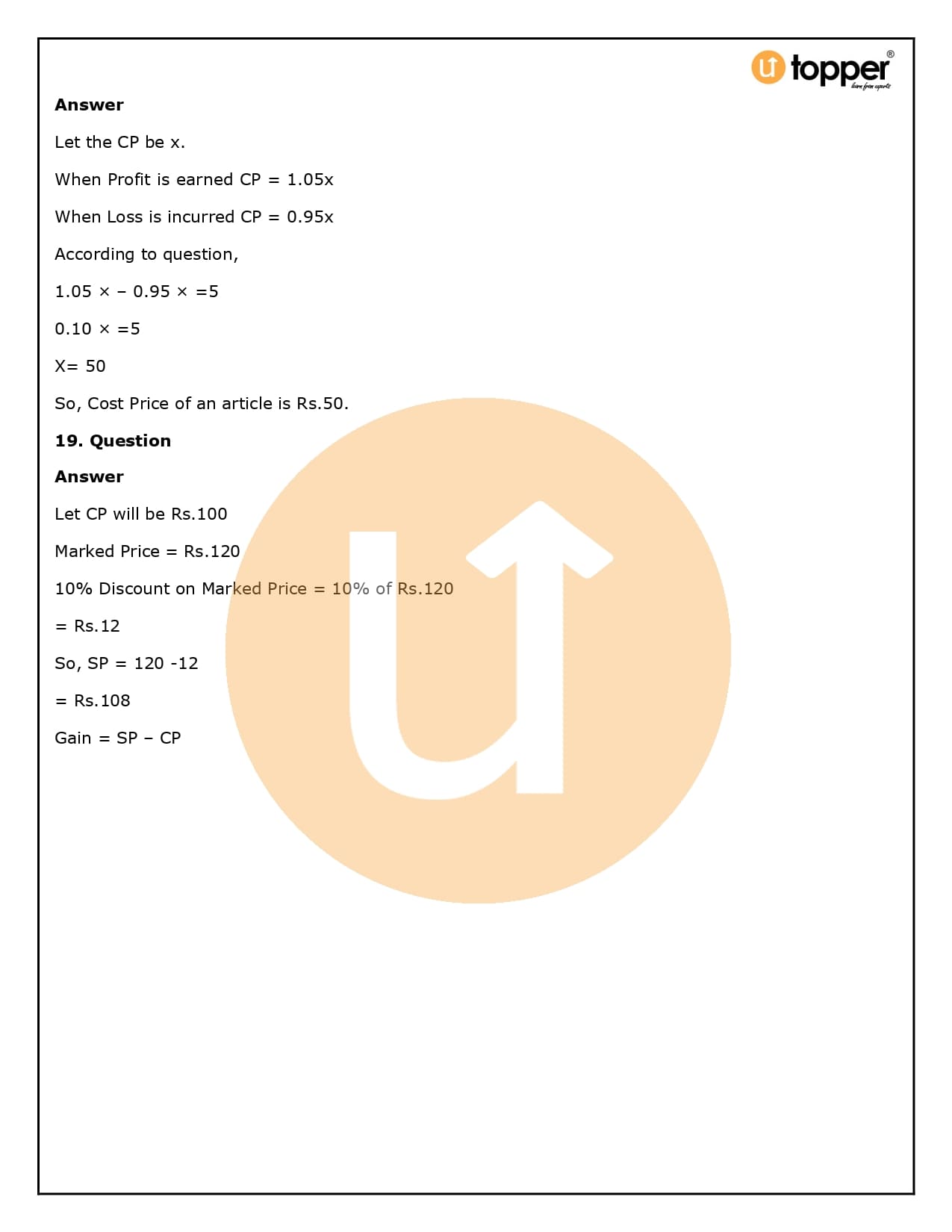 2. How will Utopper help me solve the questions in RS Aggarwal Solutions for Class 8 Chapter 10 (Profit and loss)?