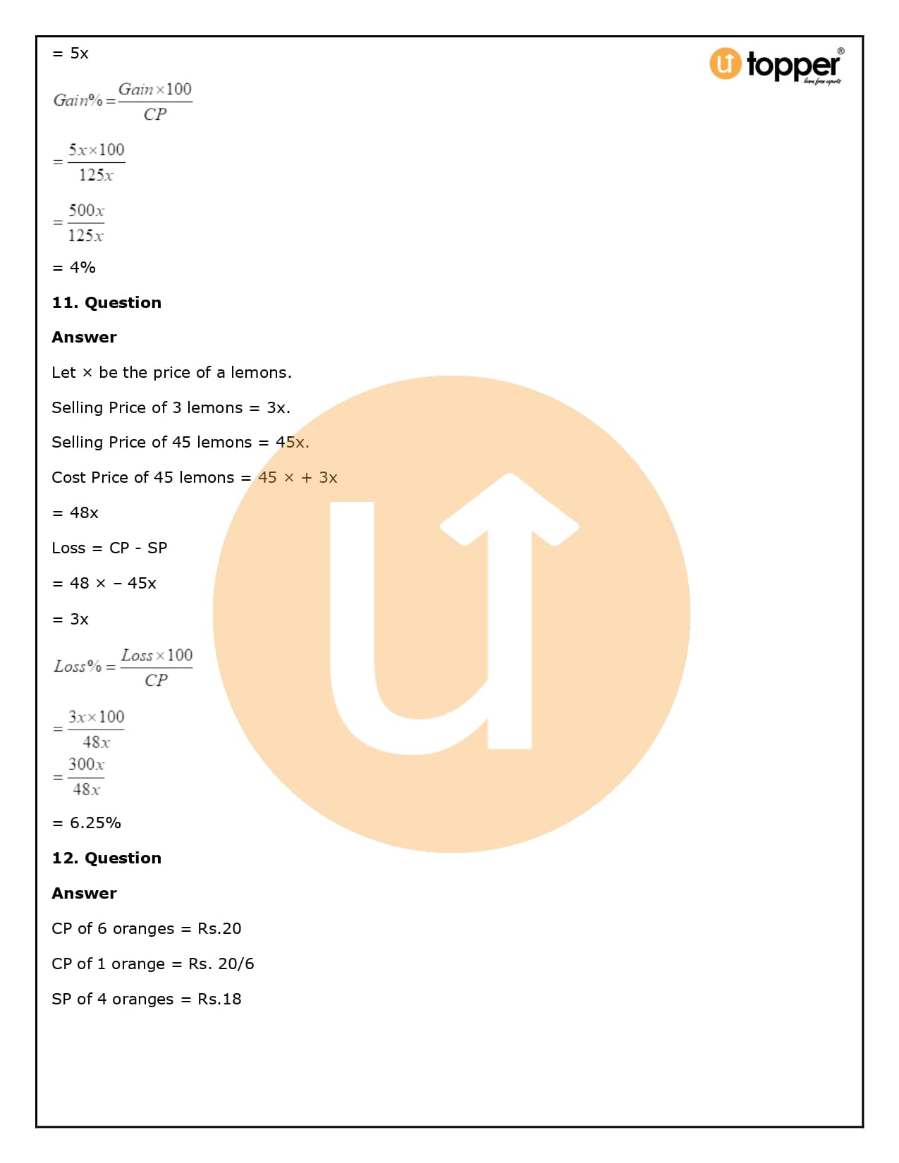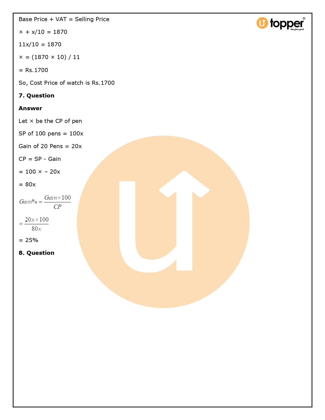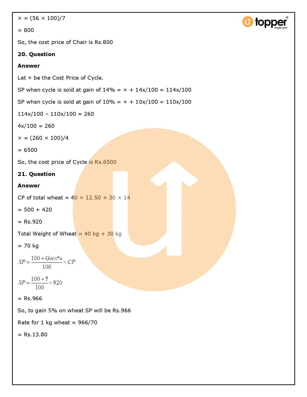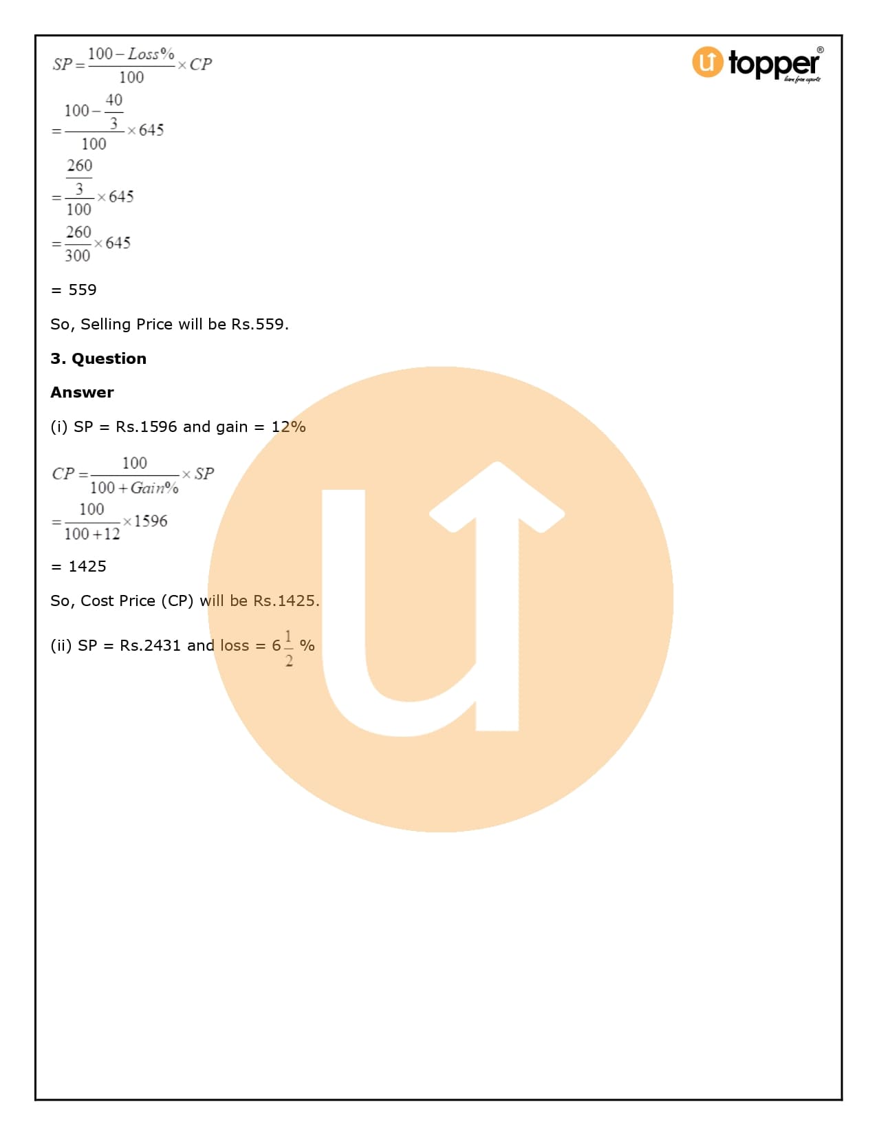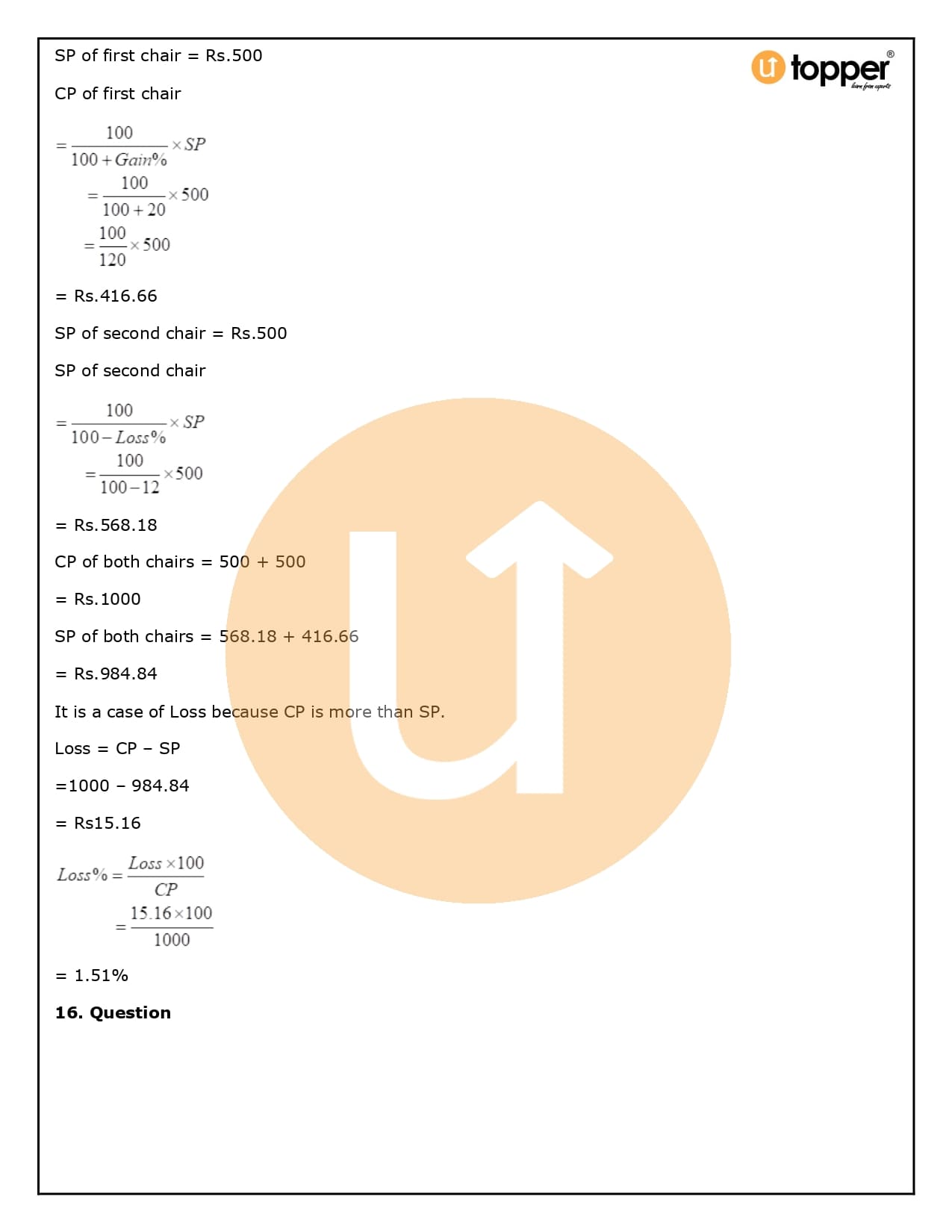 2. How will Utopper help me solve the questions in RS Aggarwal Solutions for Class 8 Chapter 10 (Profit and loss)?