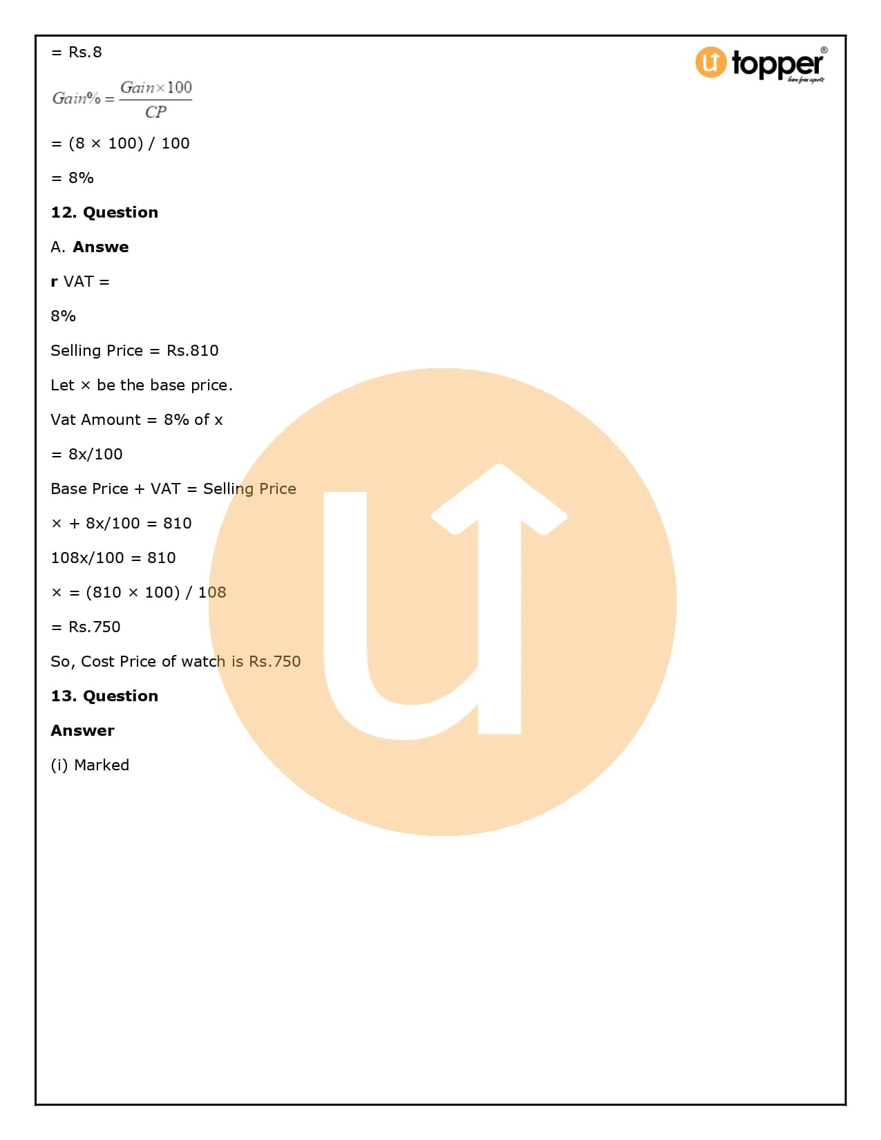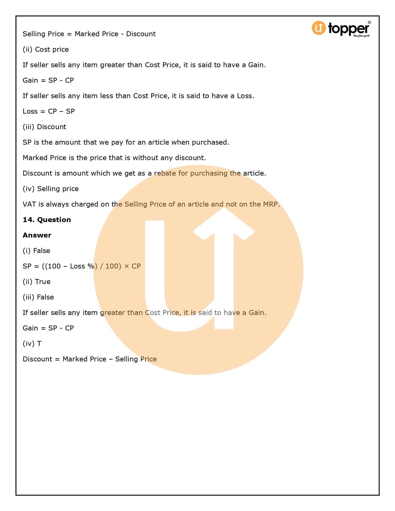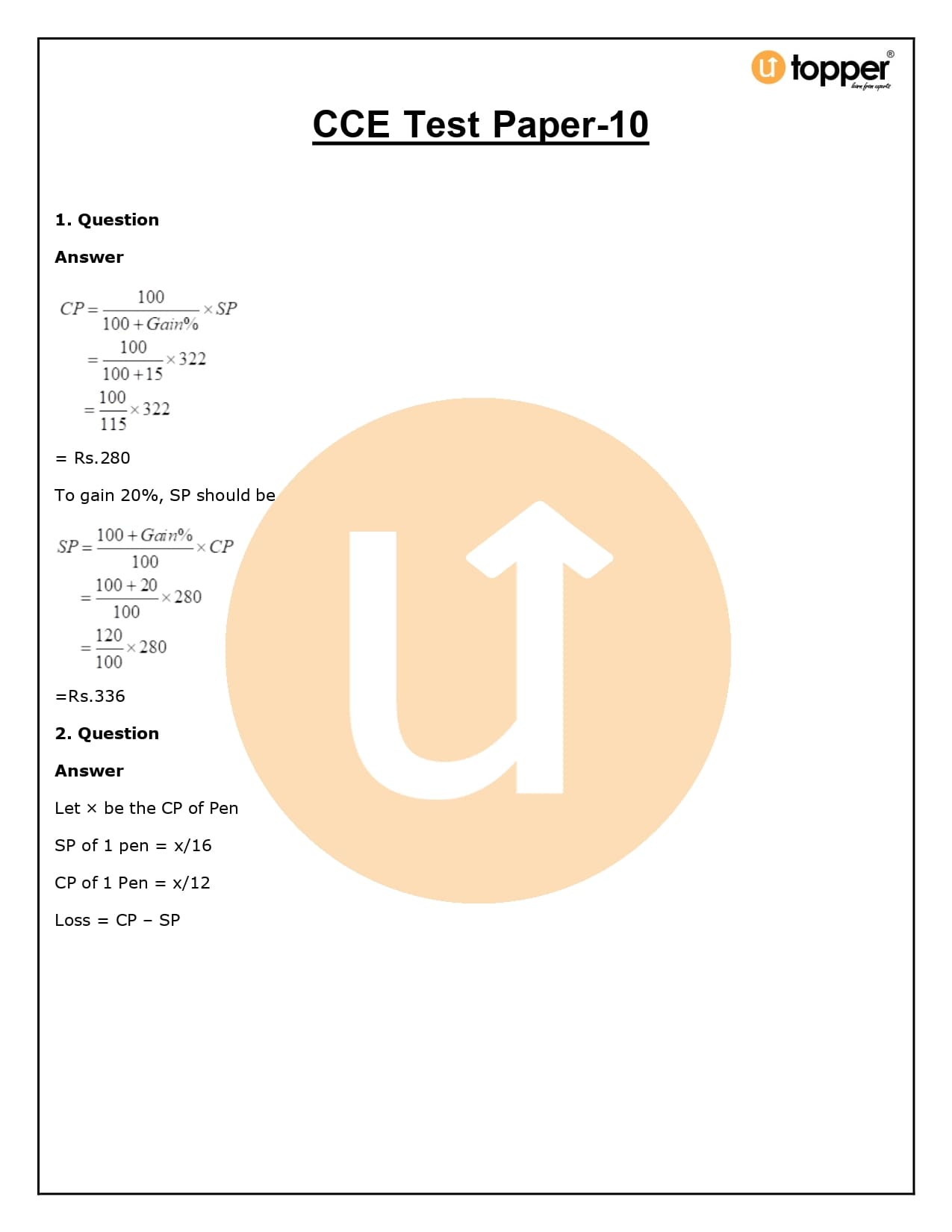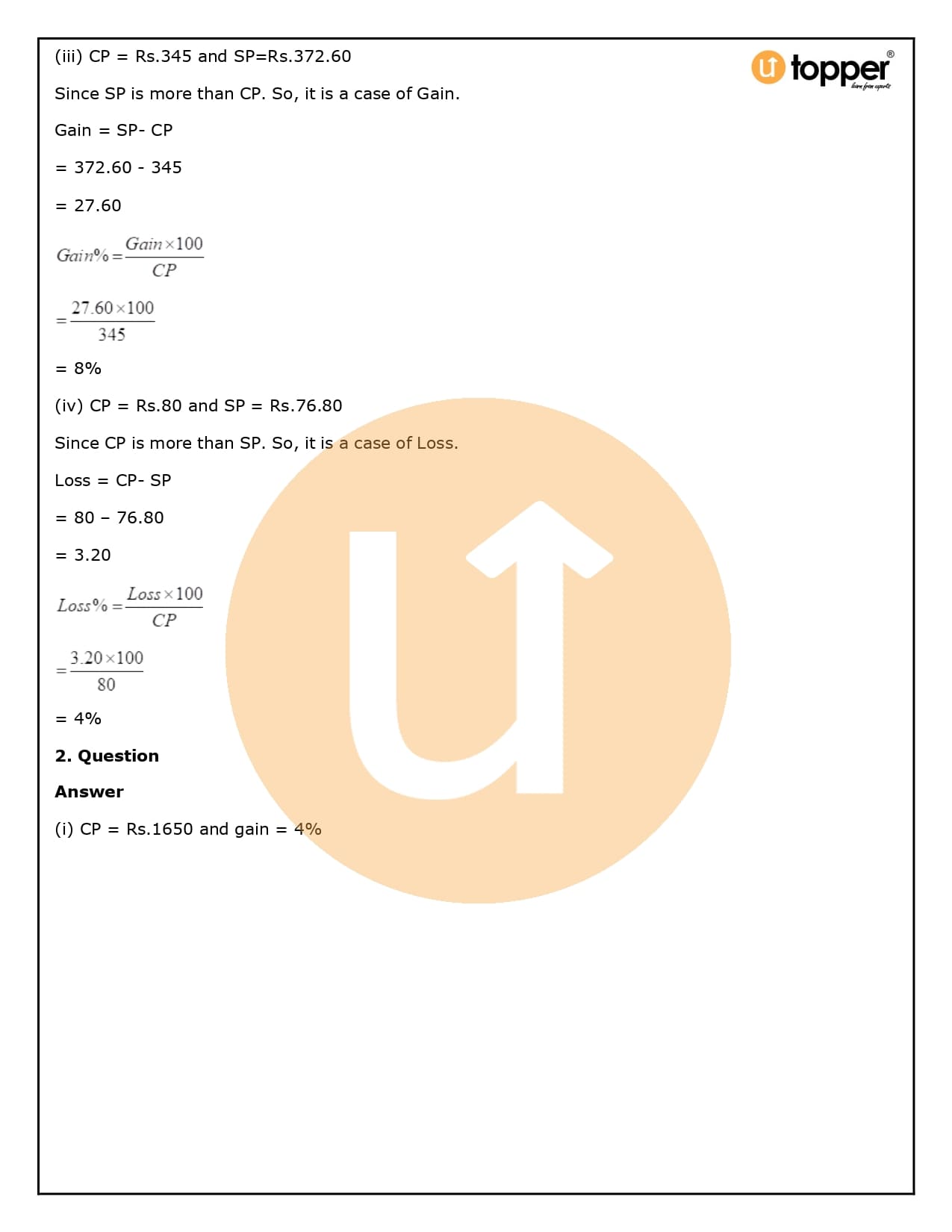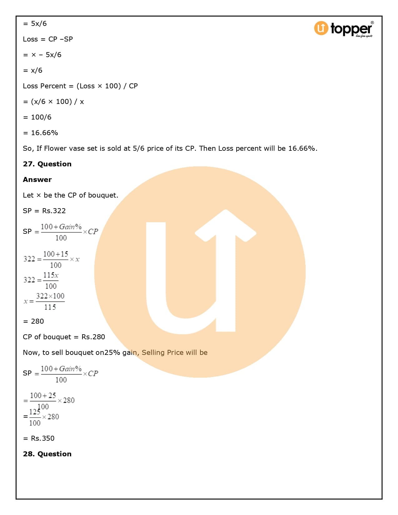 2. How will Utopper help me solve the questions in RS Aggarwal Solutions for Class 8 Chapter 10 (Profit and loss)?