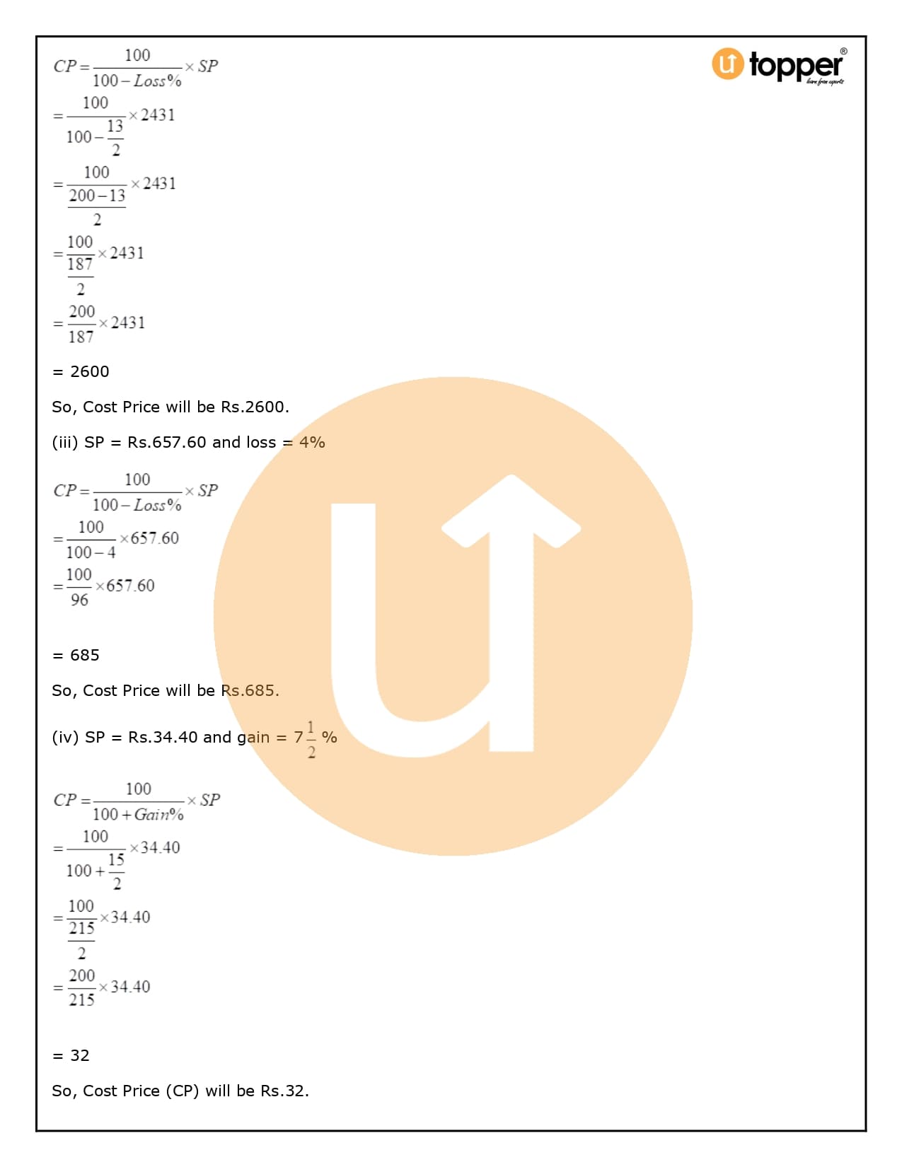 - Loss % = (loss/ CP × 100)%