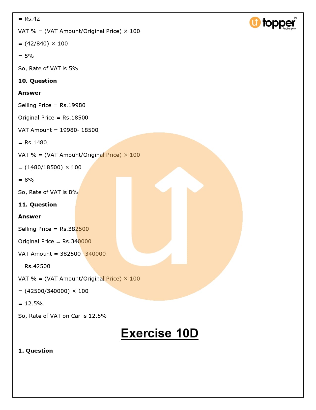 Ans – We learned how to figure out how much money we made or lost when we bought or sold things up to Class 7 and how to figure out the percentage. Now, in RS Aggarwal Class 8 Solutions Chapter 10, we’ll learn more about making money and losing money. This includes the idea of discounts when buying and selling things, as well as Value Added Tax at the end of the chapter (VAT).