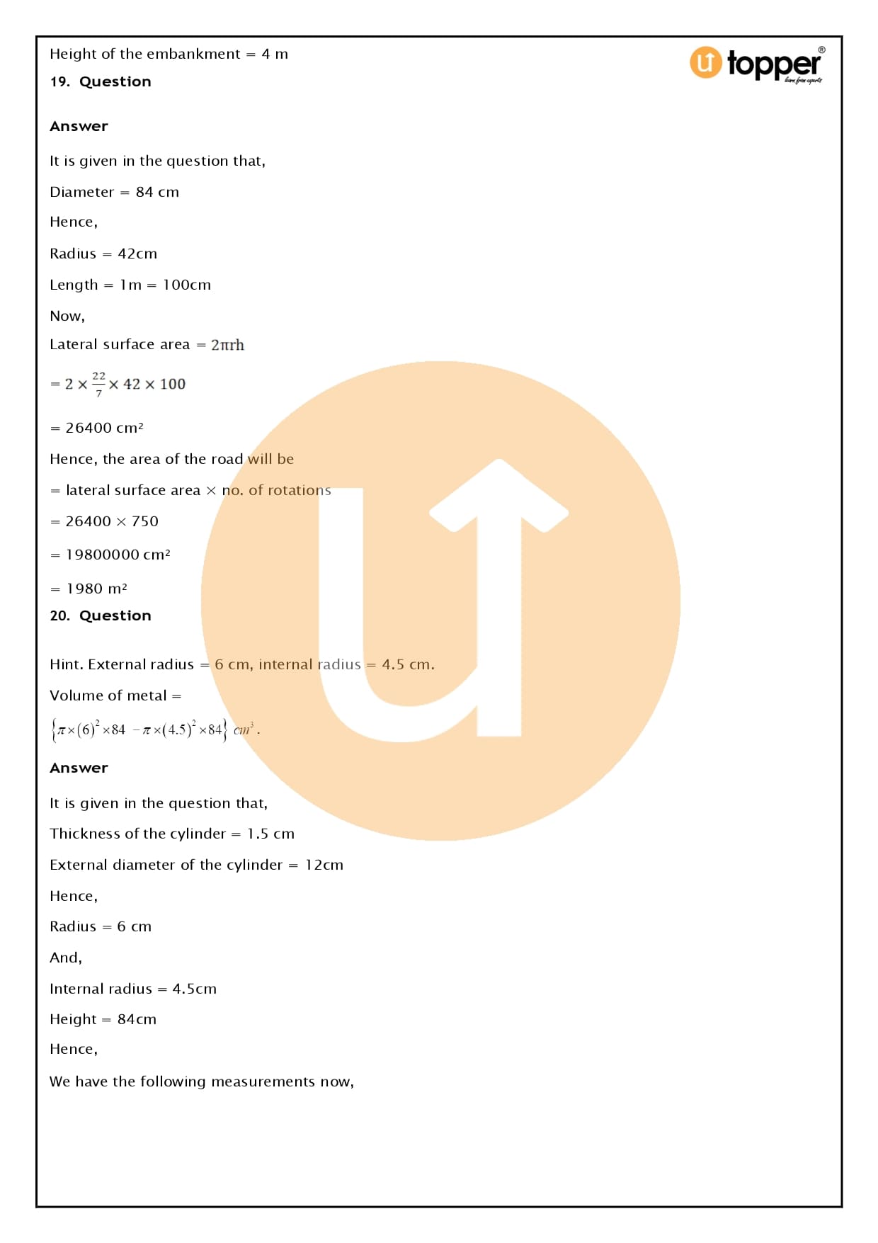 Find out how to figure out the volume and surface area of solids with RS Aggarwal Class 8 Solutions Chapter 20 put together by Utopper’s subject matter experts. RS Aggarwal Class 8 Solutions Chapter 20 Solutions is a must-have for students who want to do well on their math exams. It has clear explanations and a diagrammatic approach to all the problems. Scholars at Utopper spent a lot of time and effort on these RS Aggarwal Solutions for Class 8 Chapter 20.