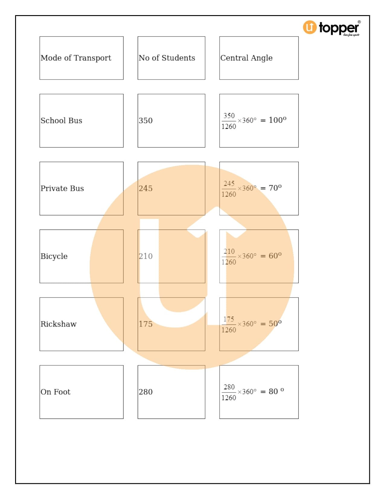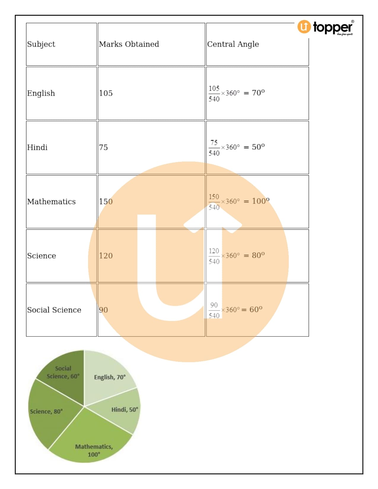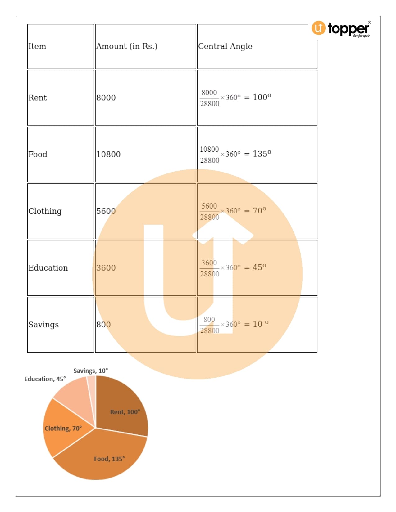 - For making the pie chart, the unitary method is used to turn the values of the graph into angles.