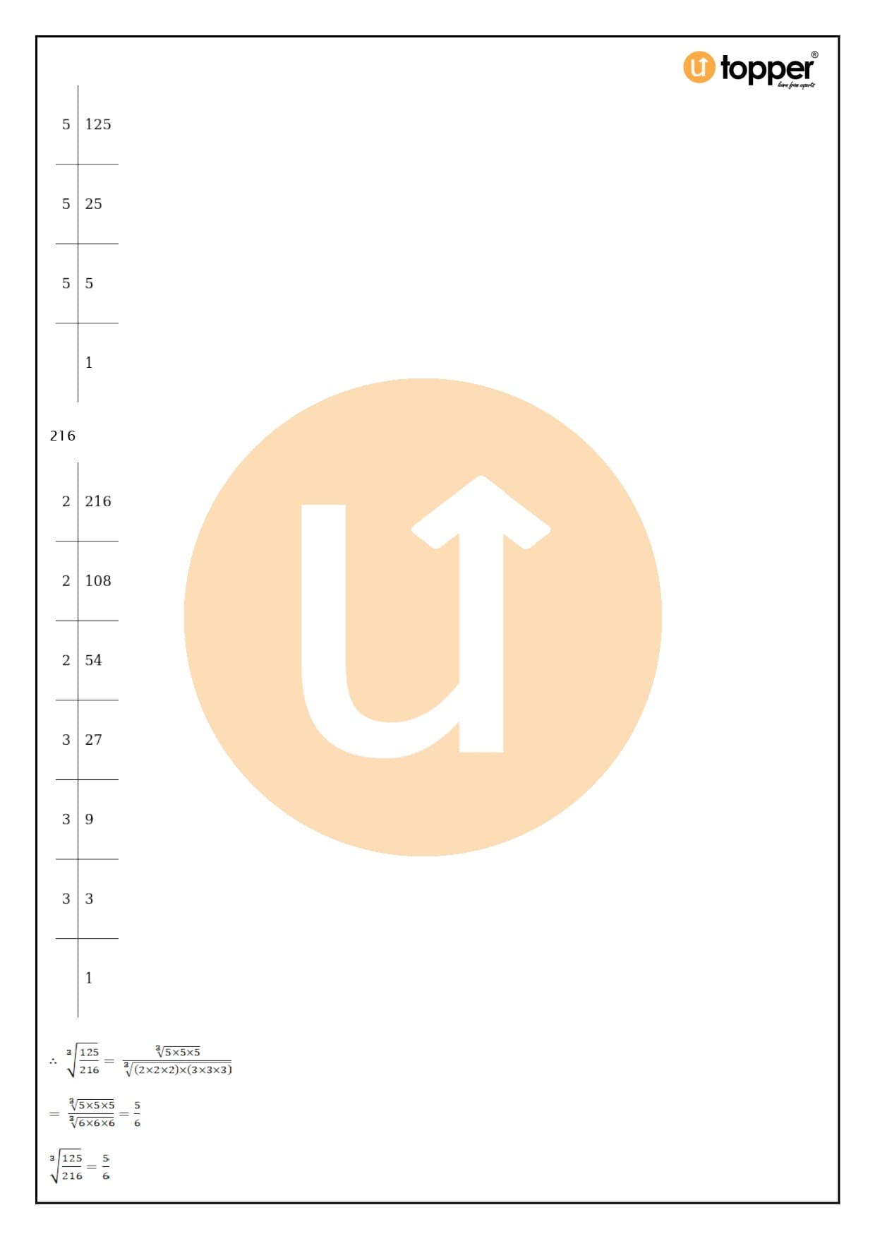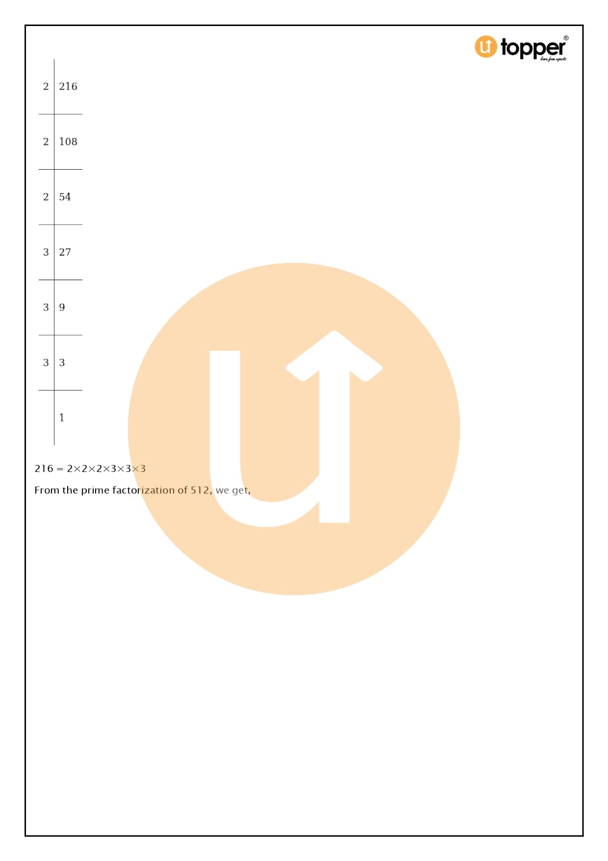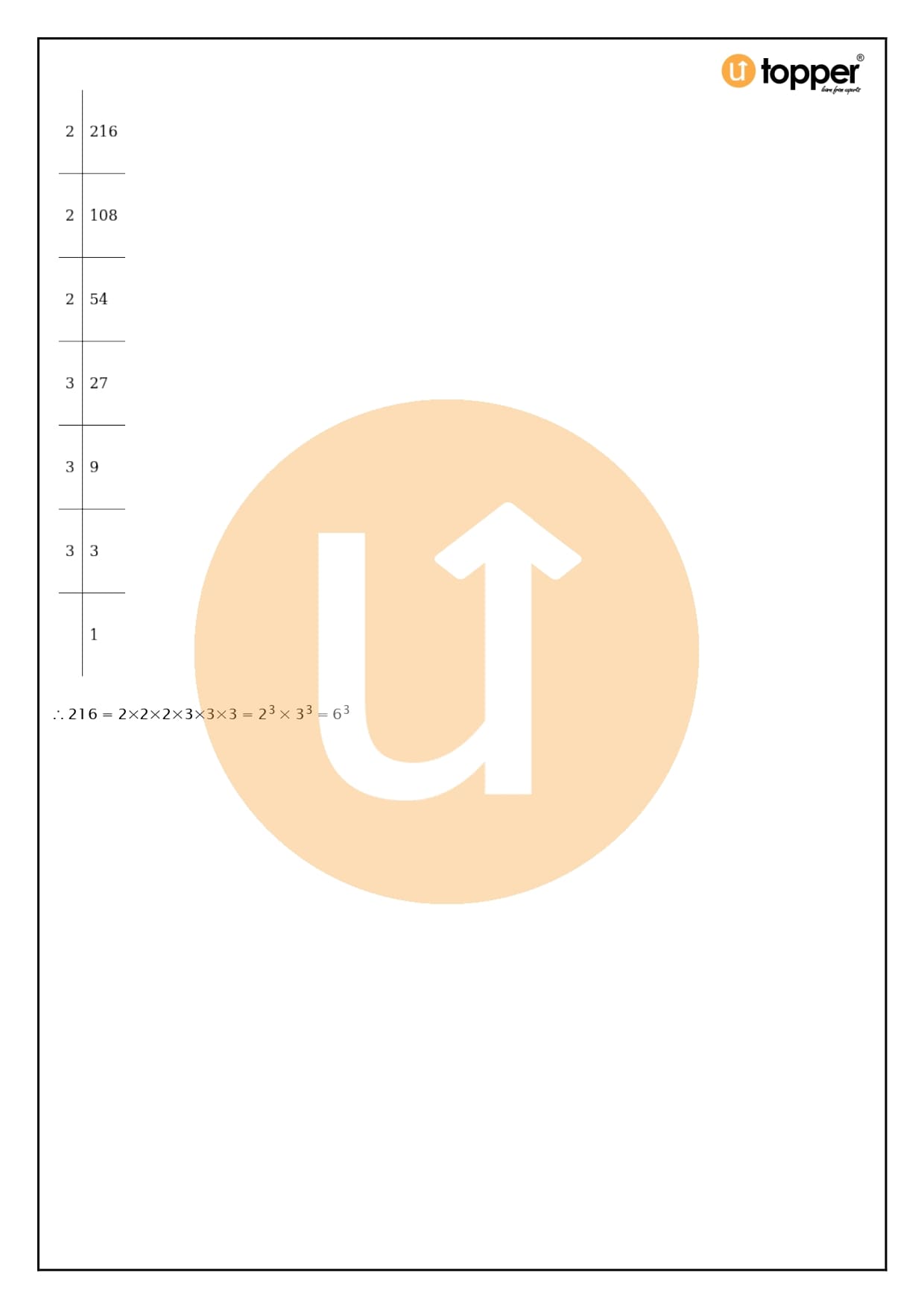 As an example, the number 216 = 2 x 2 x 2 x 3 x 3 x 3 = 23 x 33 = (2 x 3)3 = 63, which is a complete cube.