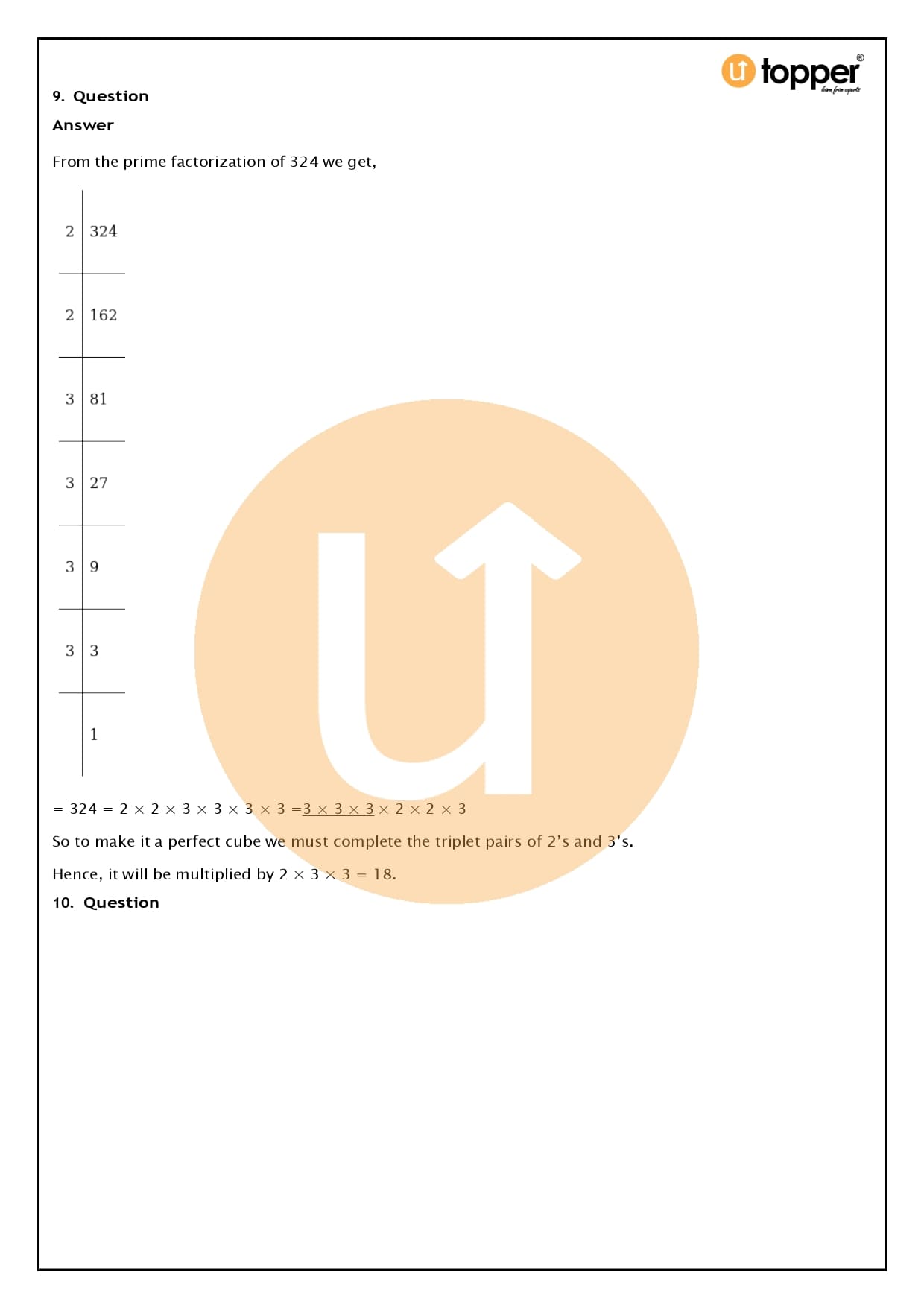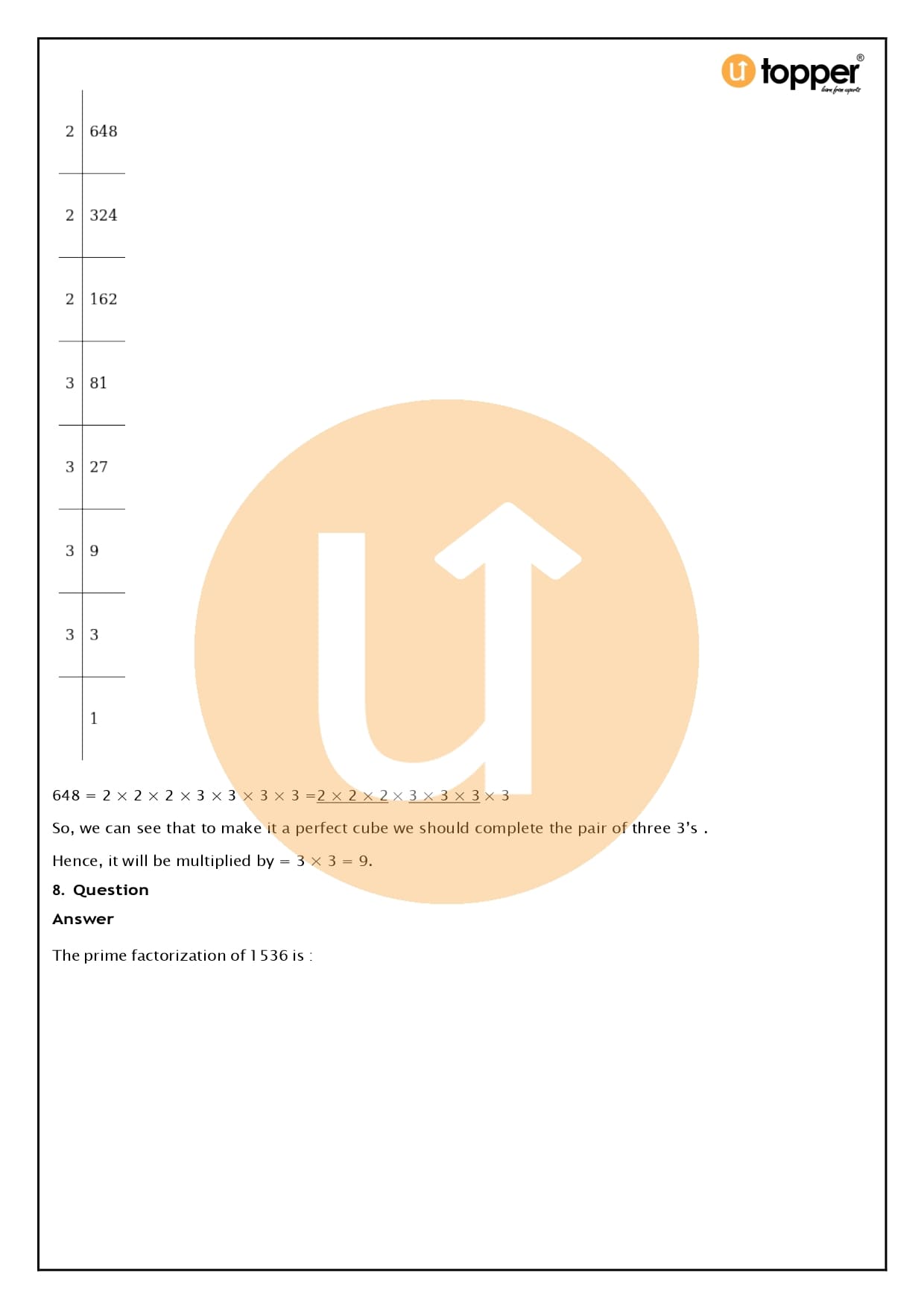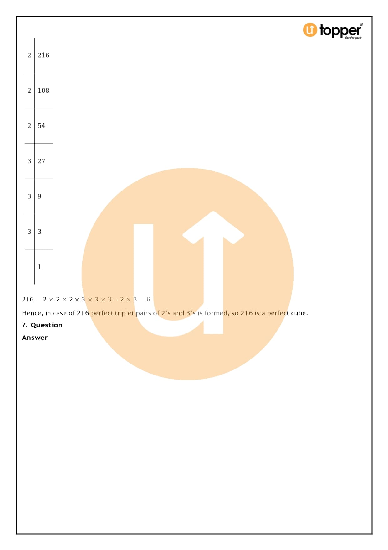 As an example, the number 216 = 2 x 2 x 2 x 3 x 3 x 3 = 23 x 33 = (2 x 3)3 = 63, which is a complete cube.