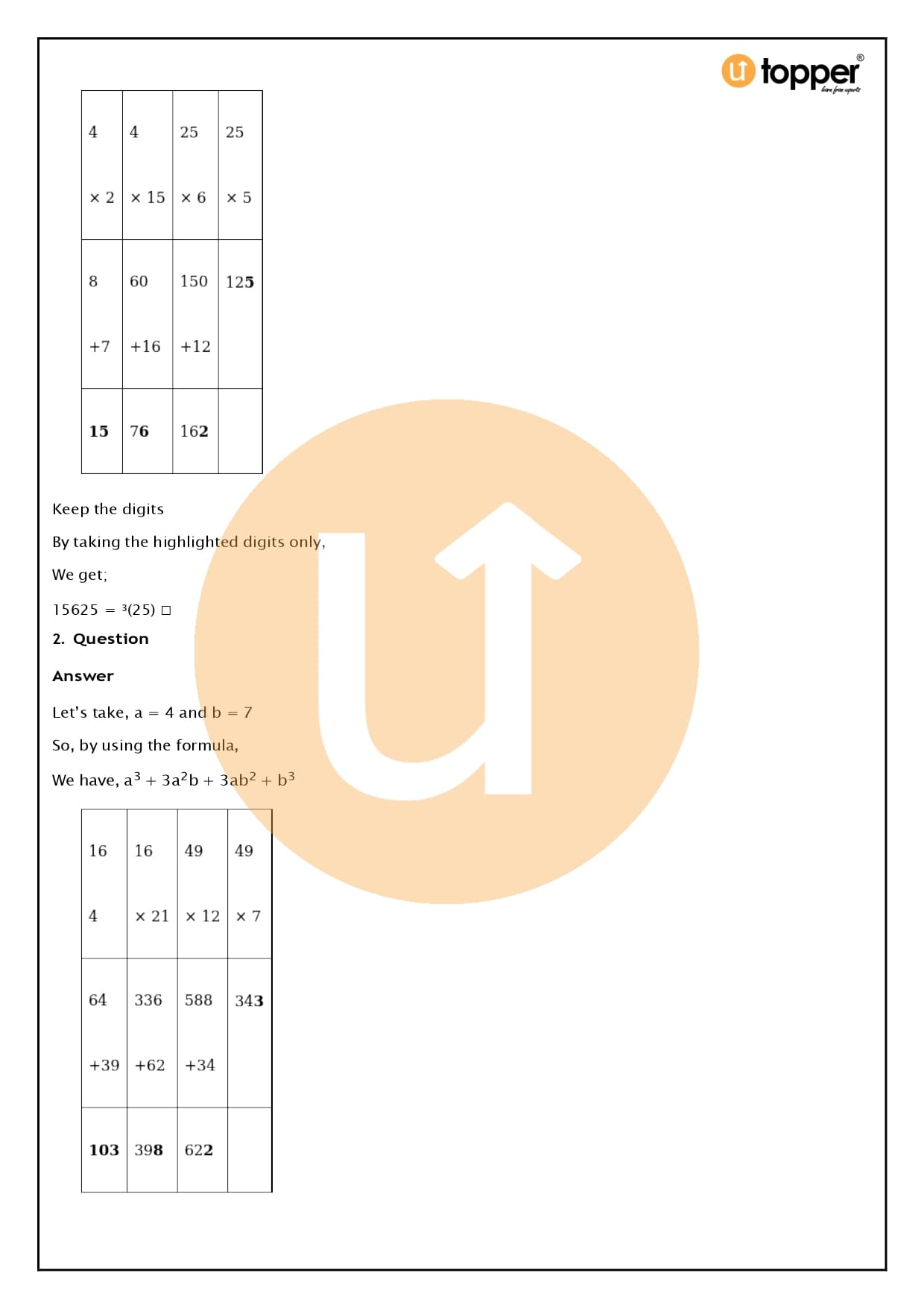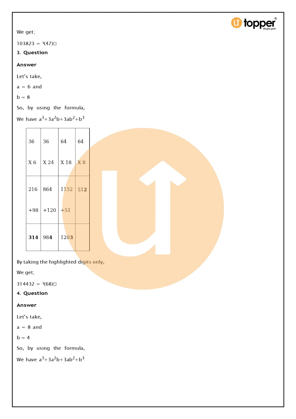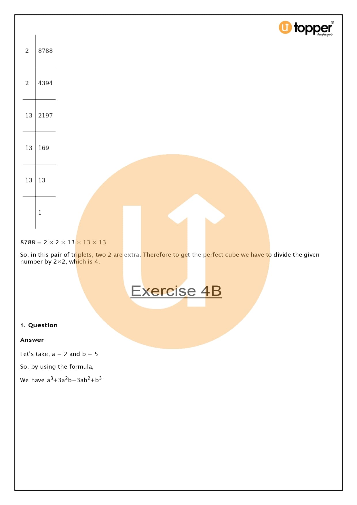- There are only 4 questions in Exercise 4B that require you to use the identity (a + b)3 = a3 + 3a2b + 3ab2 + b3 to determine the cube of a given number.