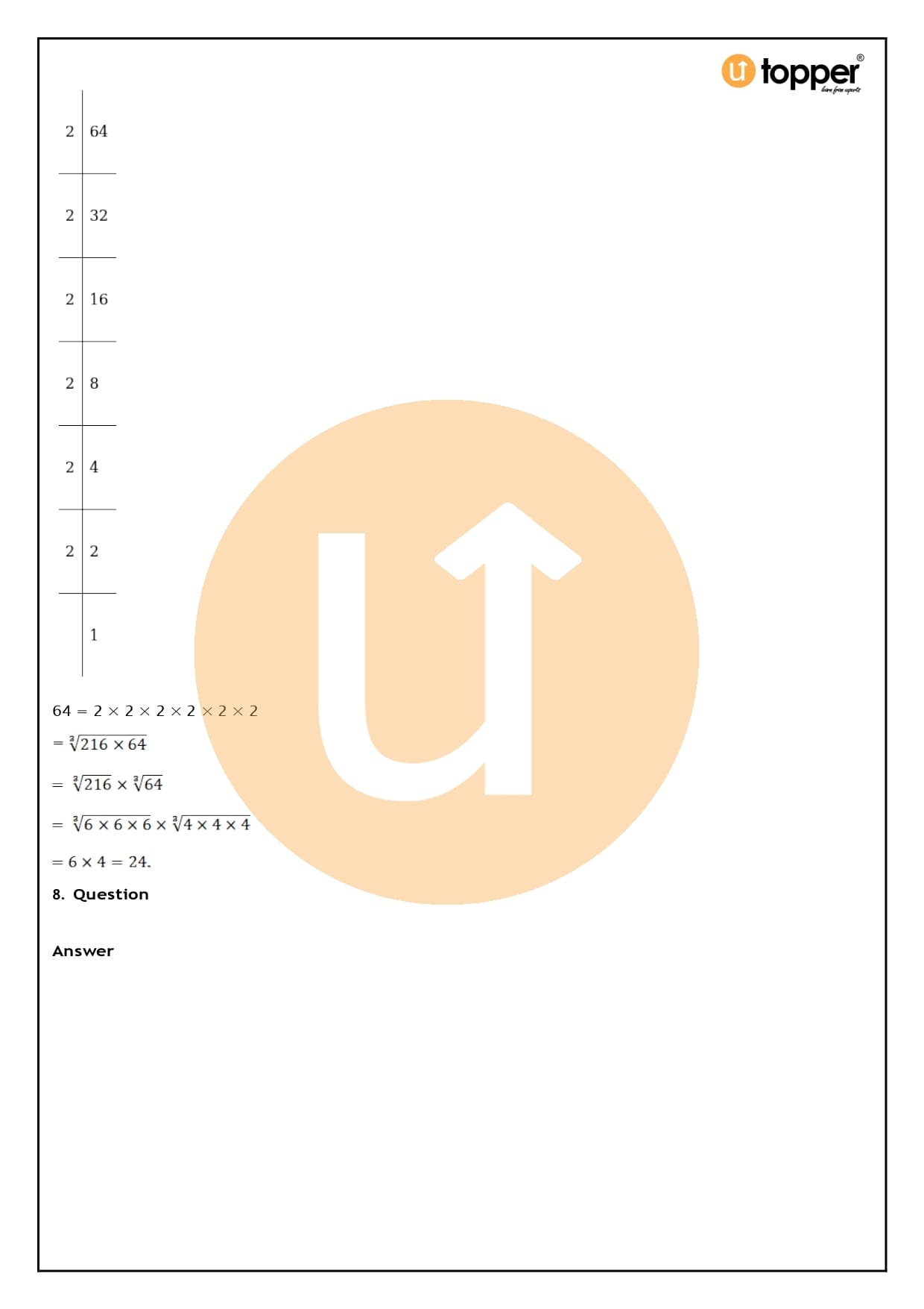 - The cube root of 8 is 23 = 8.