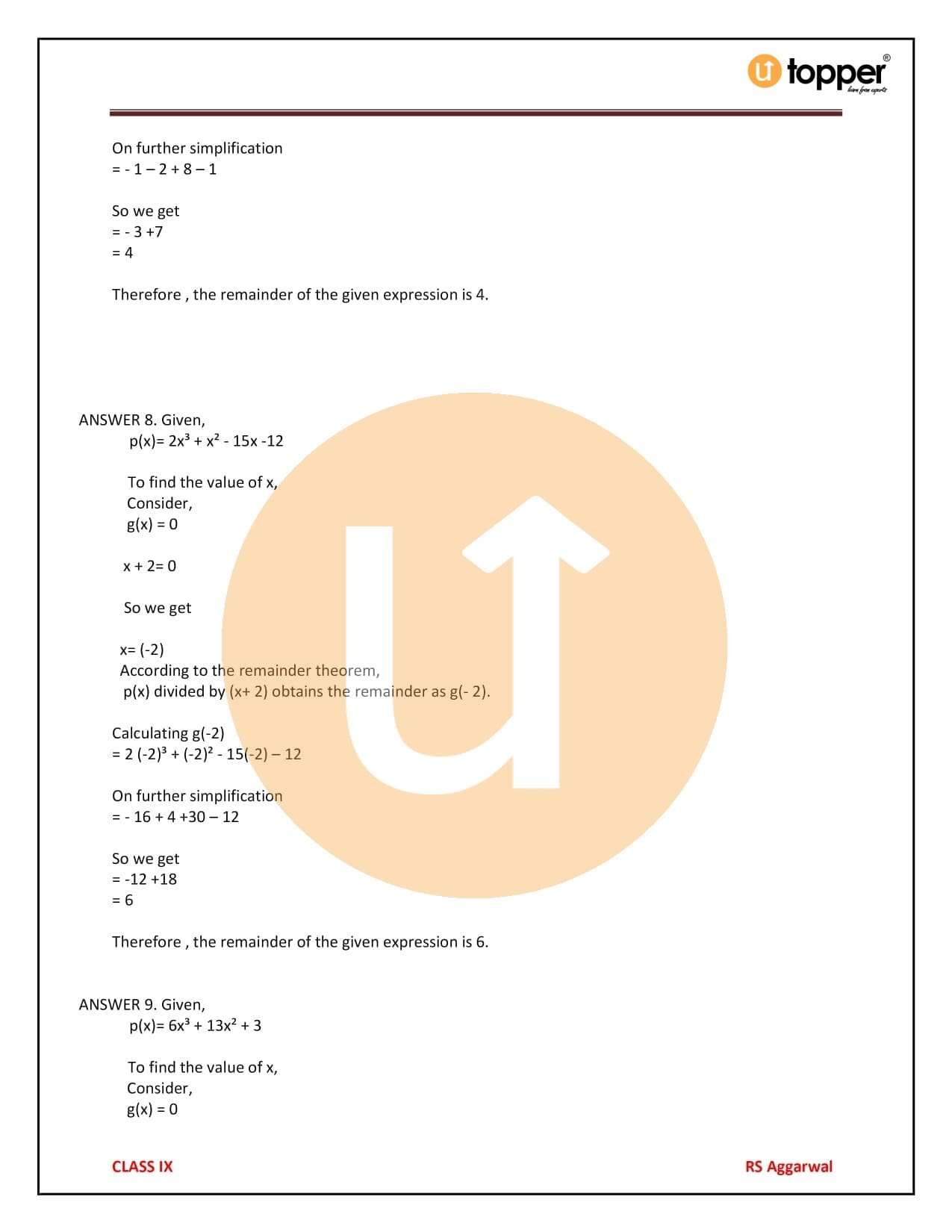 - Utopper has an RS Aggarwal Class 9 Solutions Chapter-2 Polynomials, which is a list of questions and answers about Chapter-2 Polynomials.