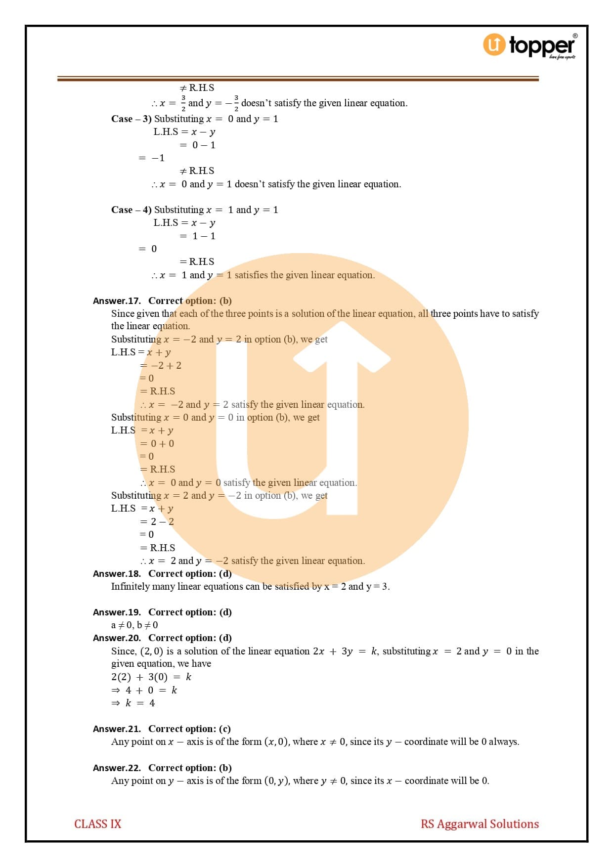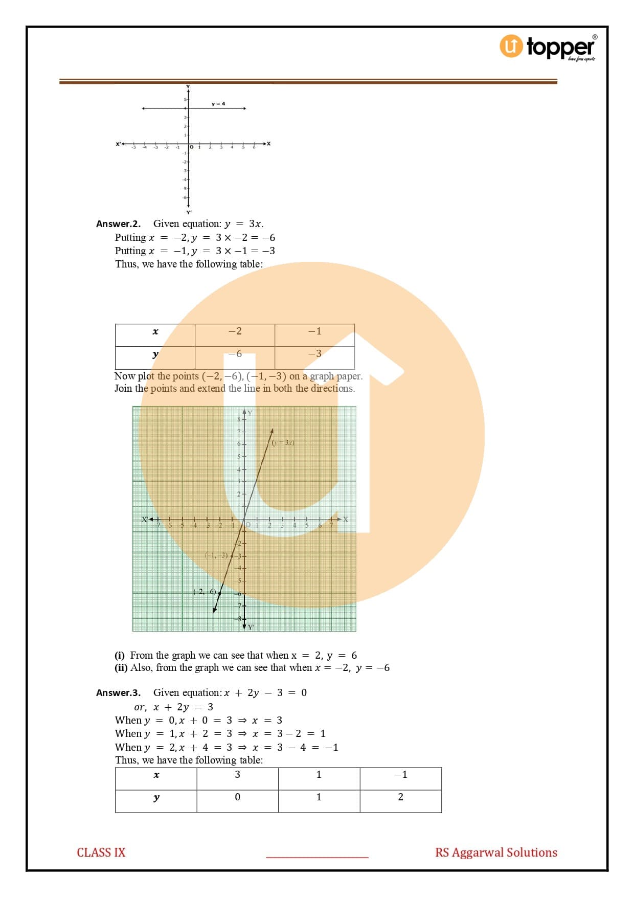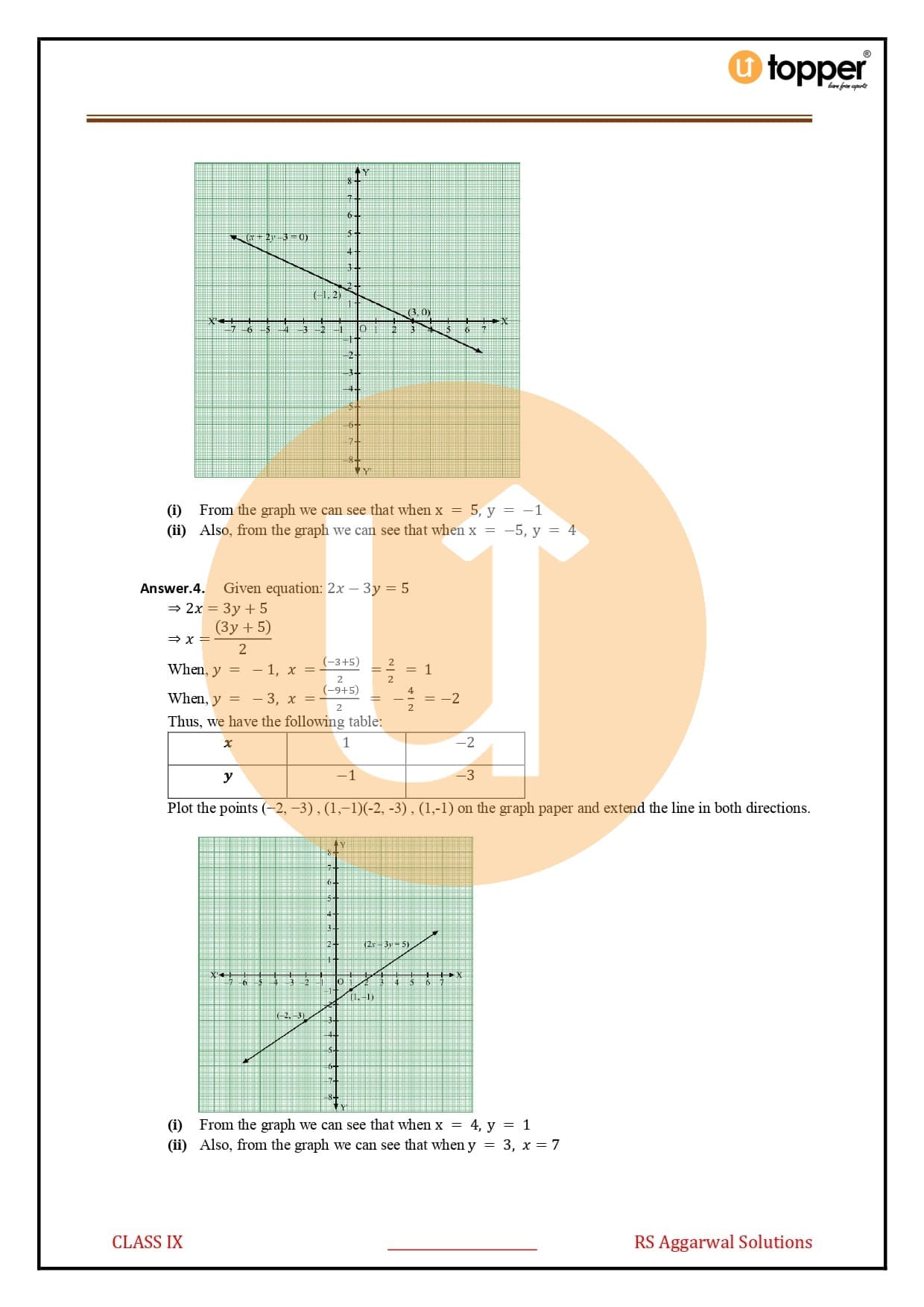Ans – Go to RS Aggarwal Class 9 Solutions Chapter 4 Linear Equations in Two Variables Solutions to find answers to questions from the book. There is also a copy of this book on Utopper. Utopper is a very trustworthy place to study and find relevant study materials. All of the important questions that are likely to come up on the tests are answered in this book, and if you keep practising, you will do well on the tests that are coming up. The book can be found on Utopper for free.