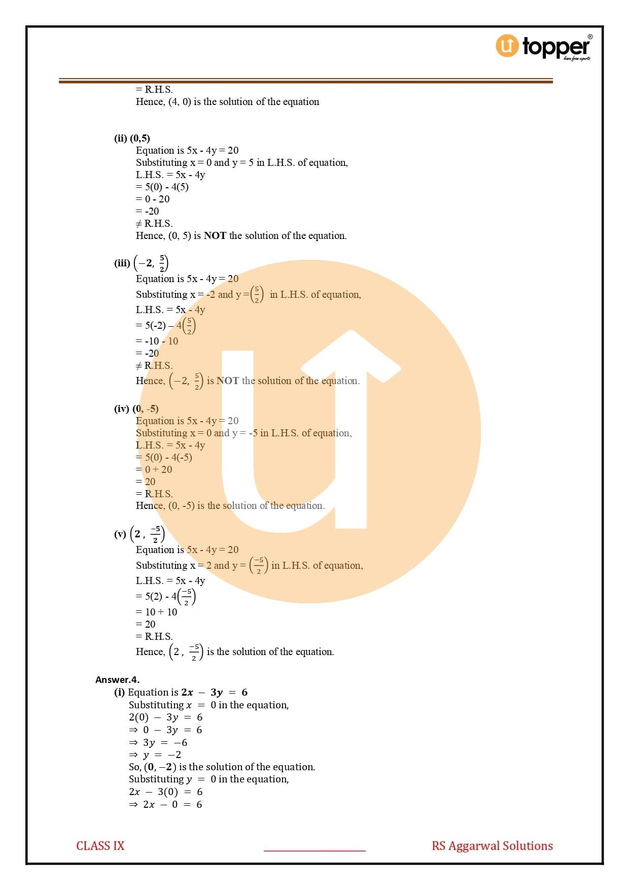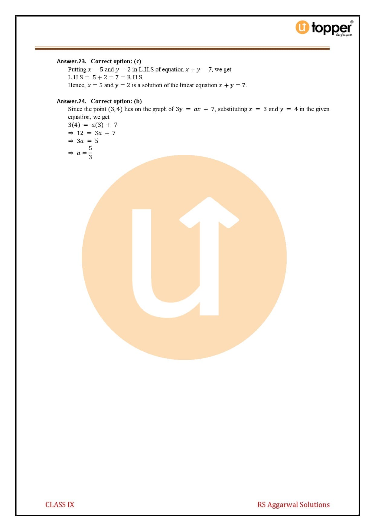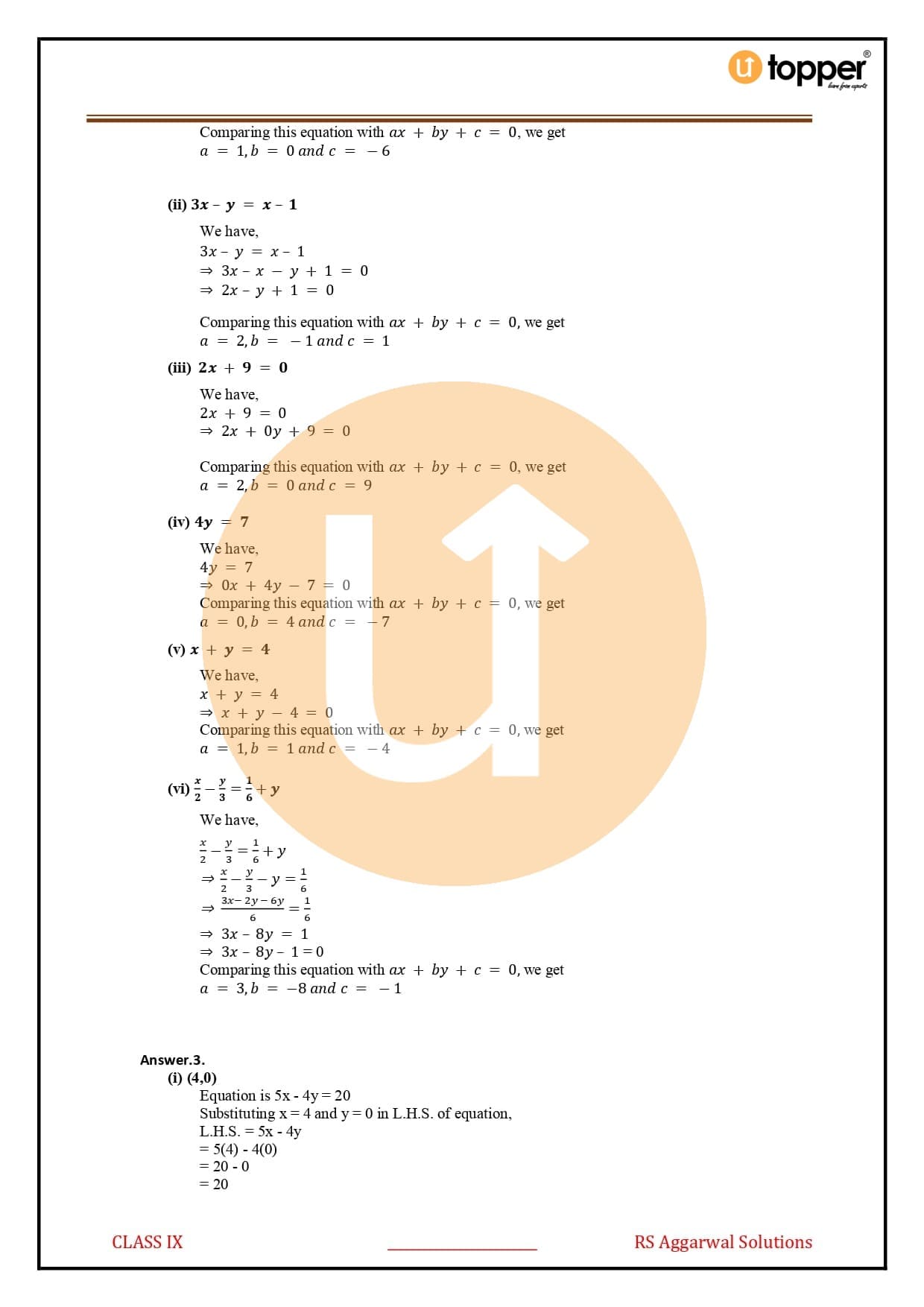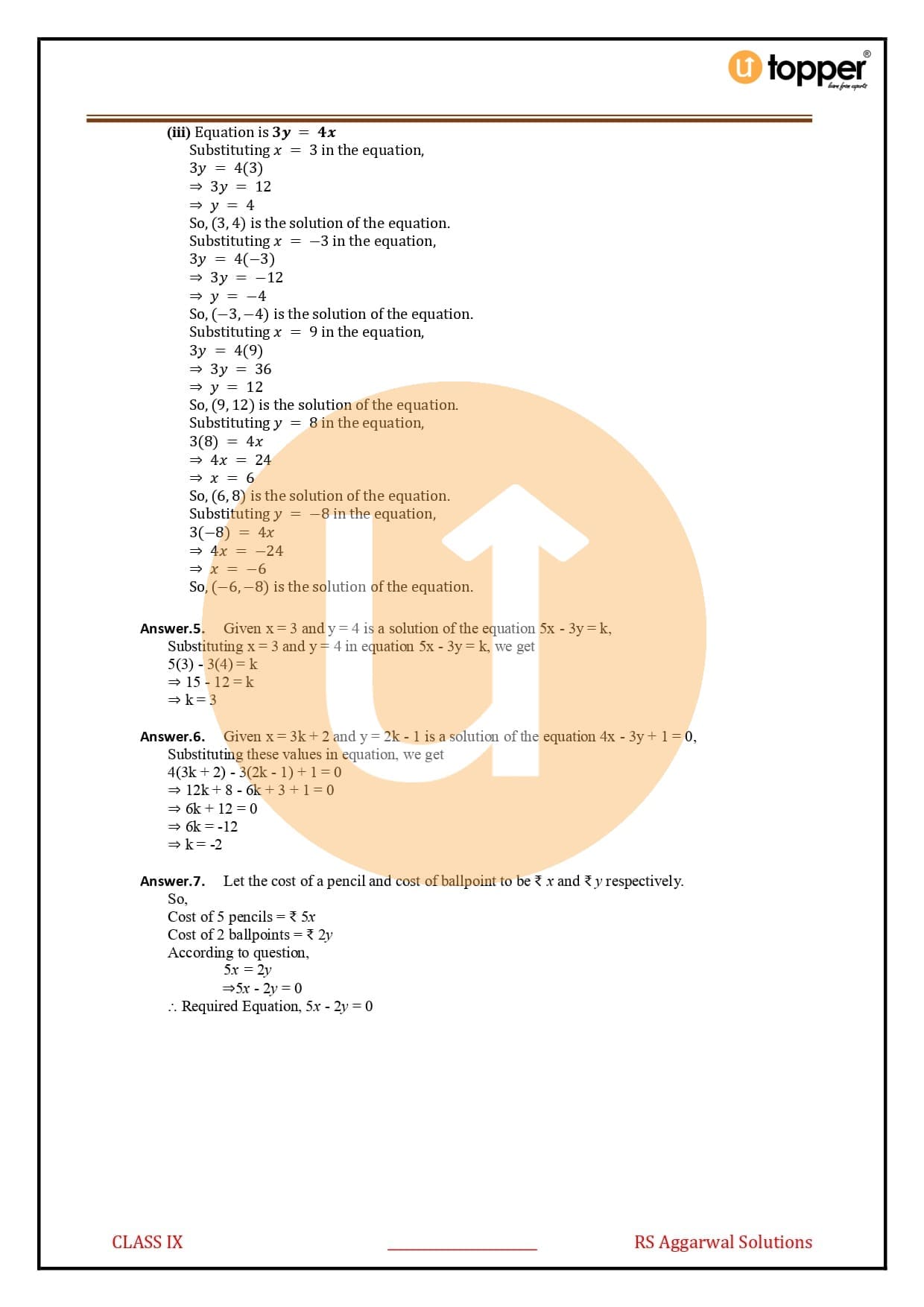 Linear Equations in Two Variables by RS Aggarwal Class 9 Solutions