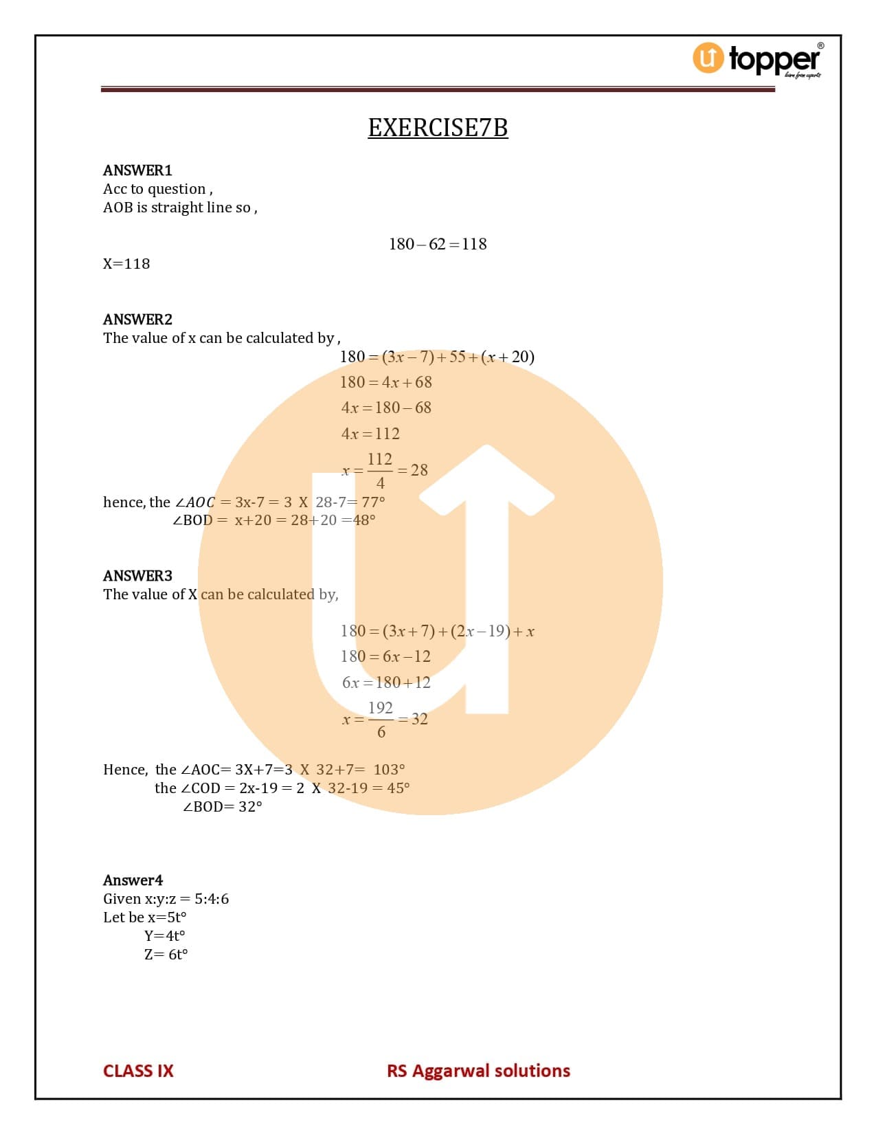 First, when you’re trying to solve RS Aggarwal class 9 solutions chapter 7, you need to understand the question before you start writing the answer. Don’t just look at what the question says about the variables. If you read the whole question, you’ll understand the problem much better.
