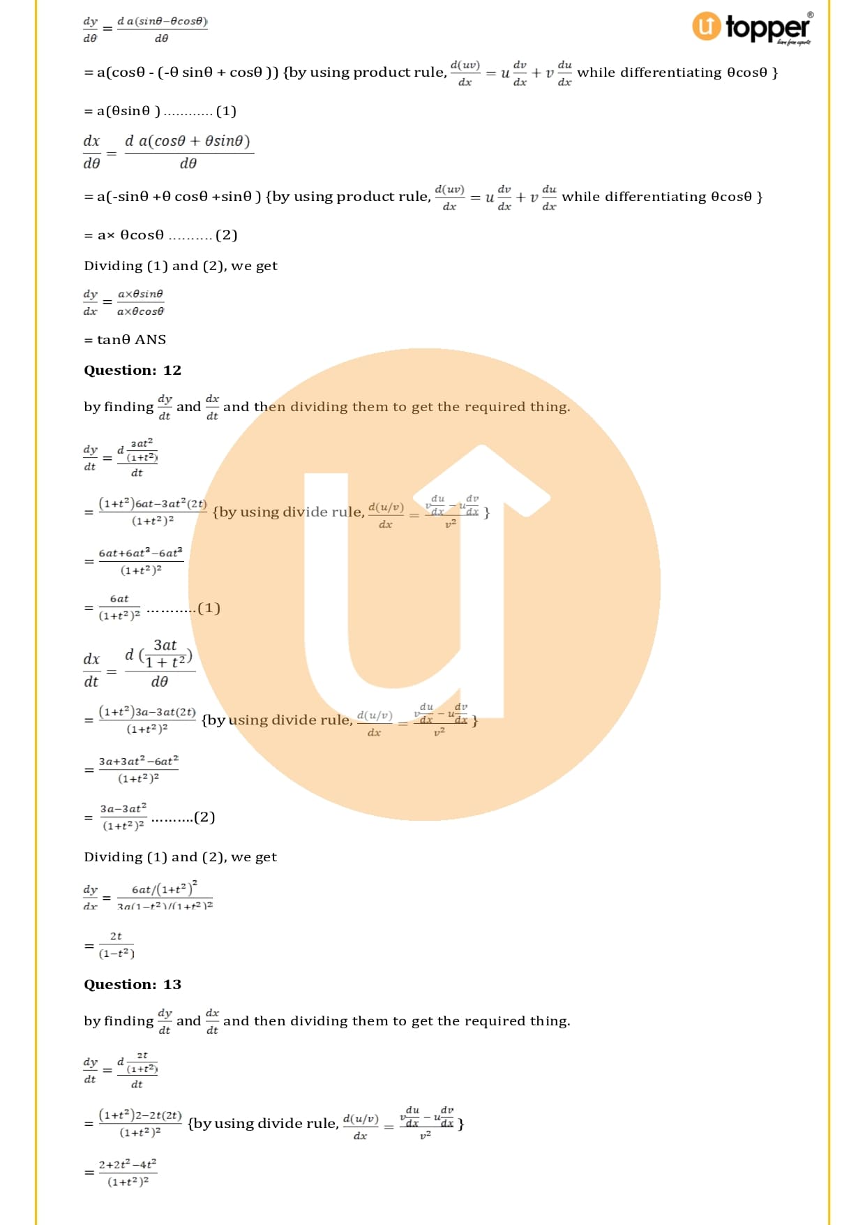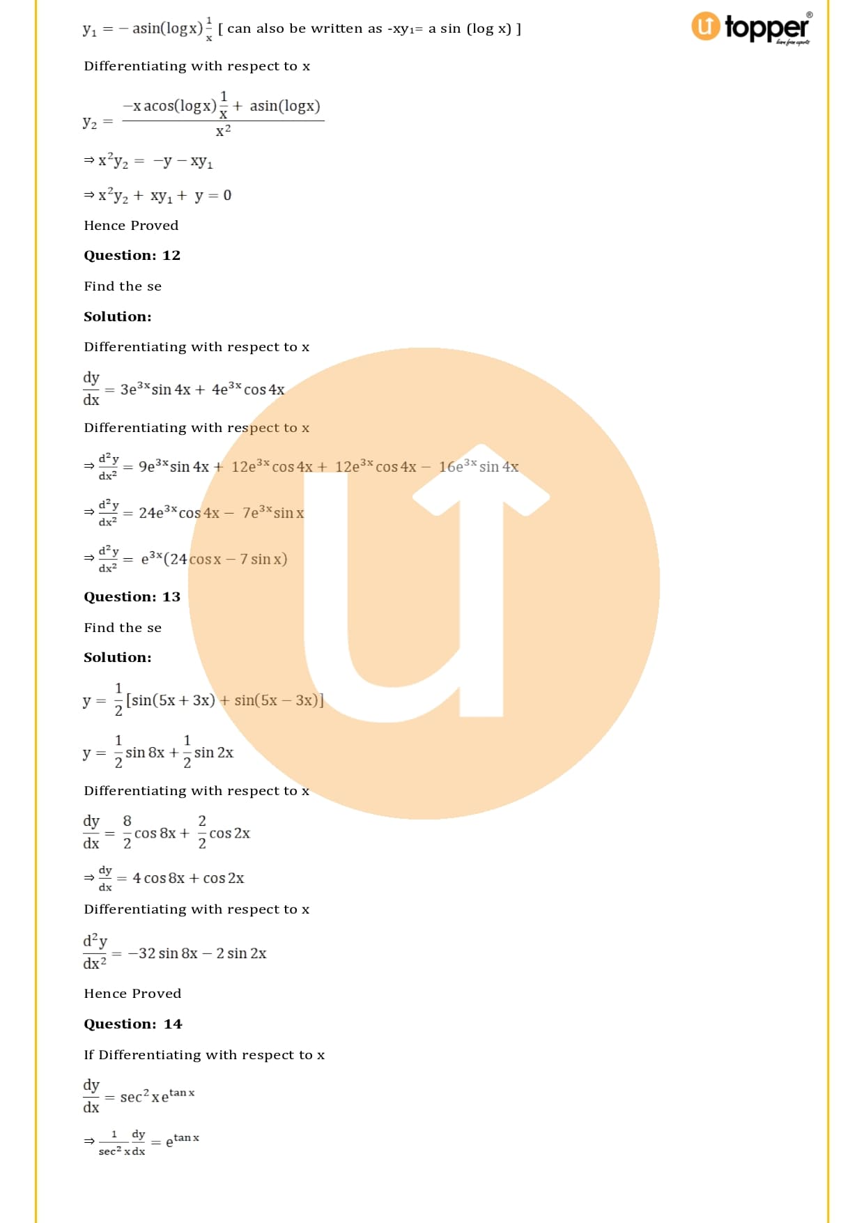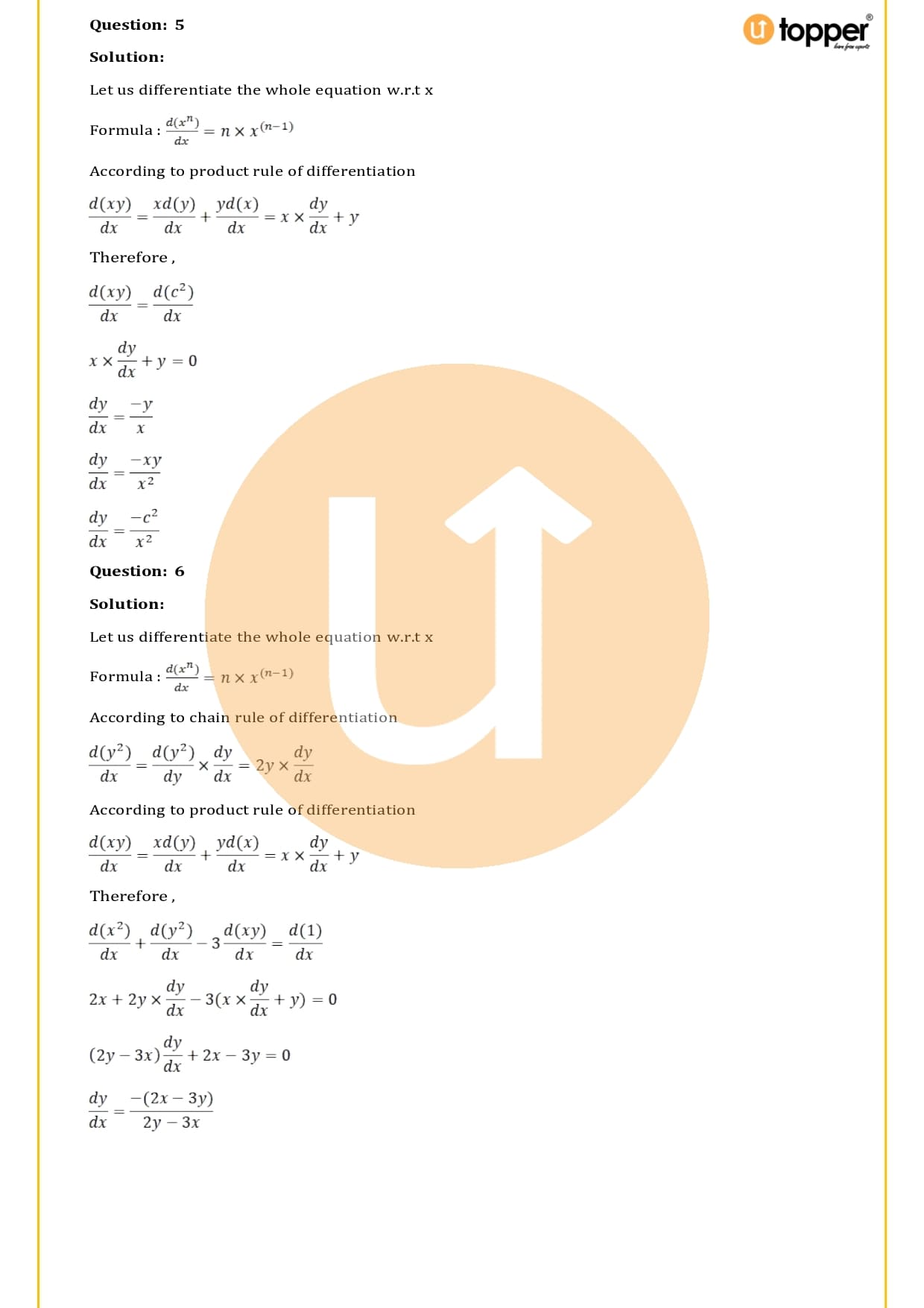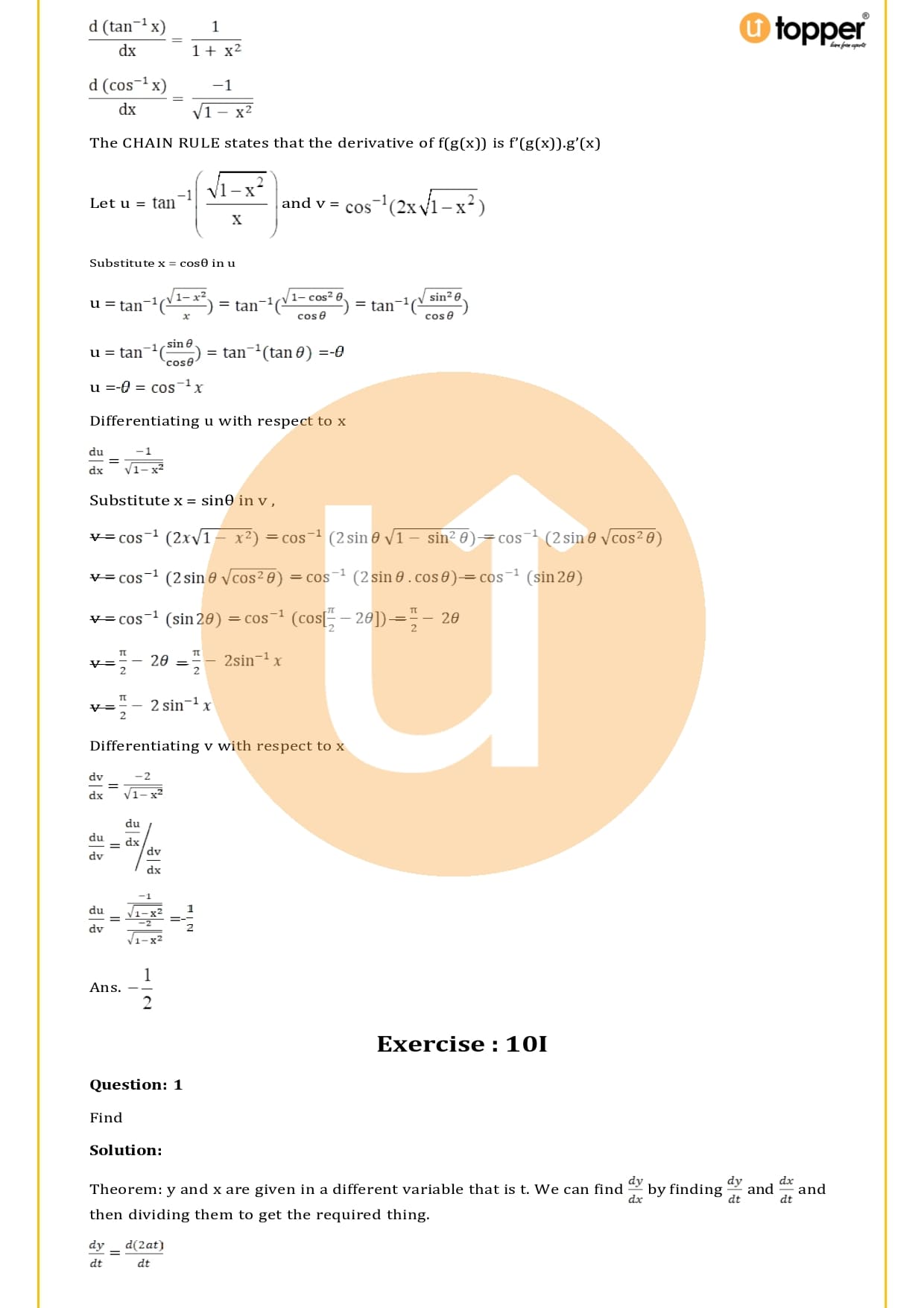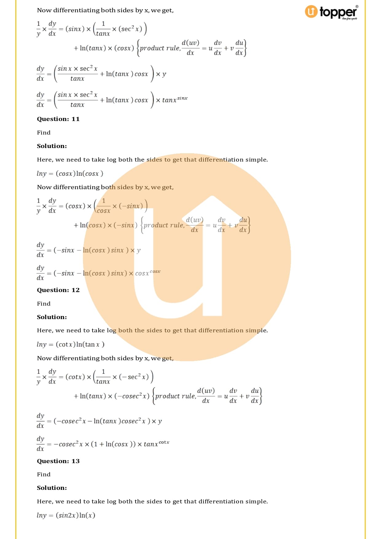 This chapter has a total of 143 questions spread across 10 exercises. This will give you a lot of practise with differentiation, which is also a very important subject on competitive exams. These questions also go into detail about all the important functions in the CBSE curriculum. If you use this reference source as part of your study routine, you’ll be able to review quickly and understand the ideas completely. You can also use the answers to the exercises to do your homework. This will fill in any gaps that might have been left by what you learned in class.