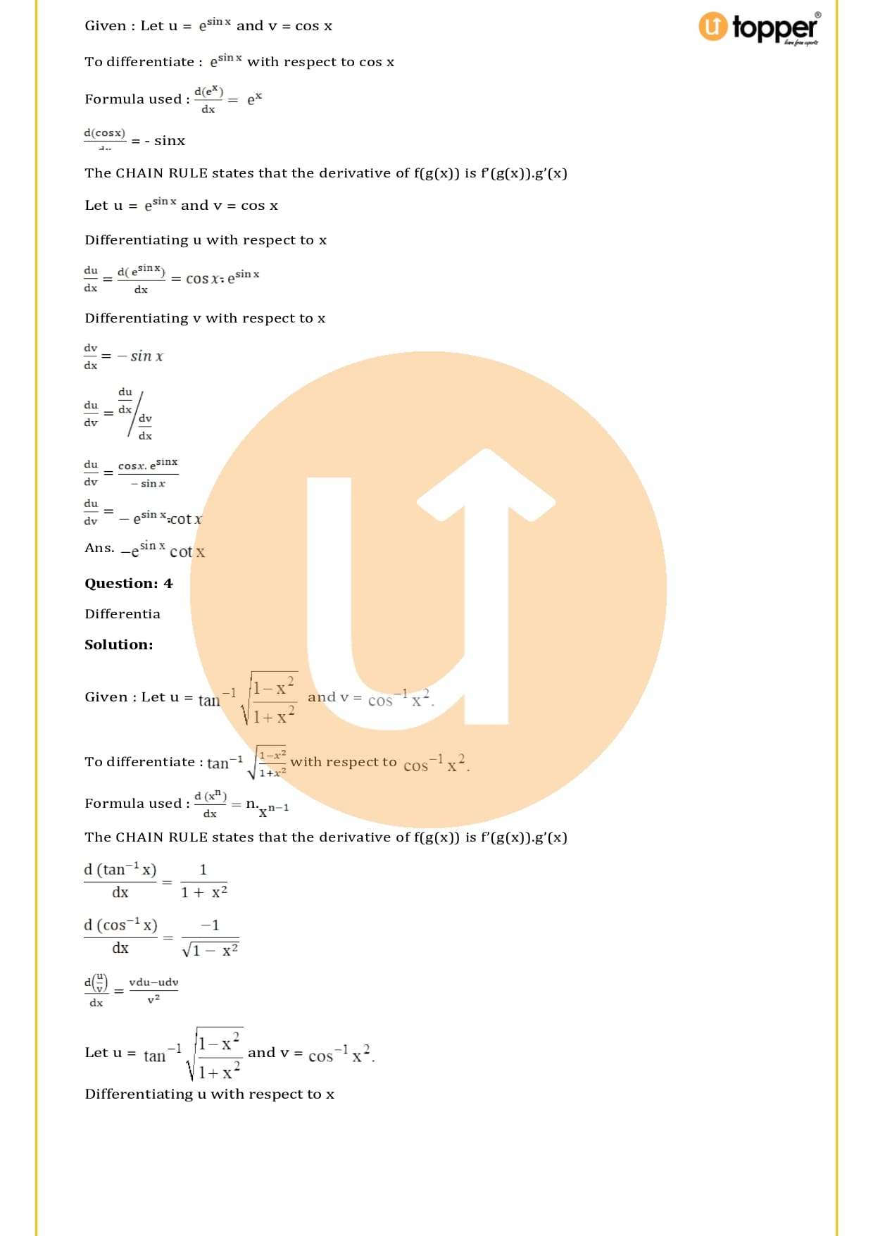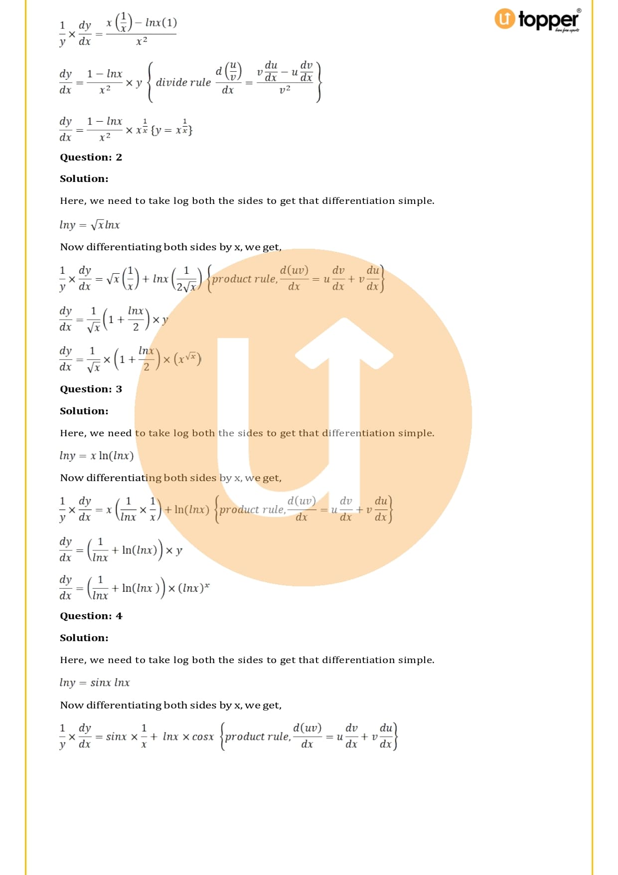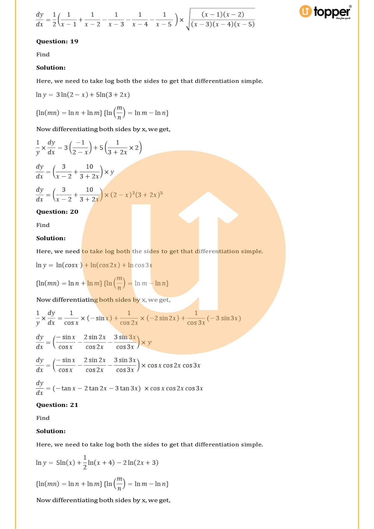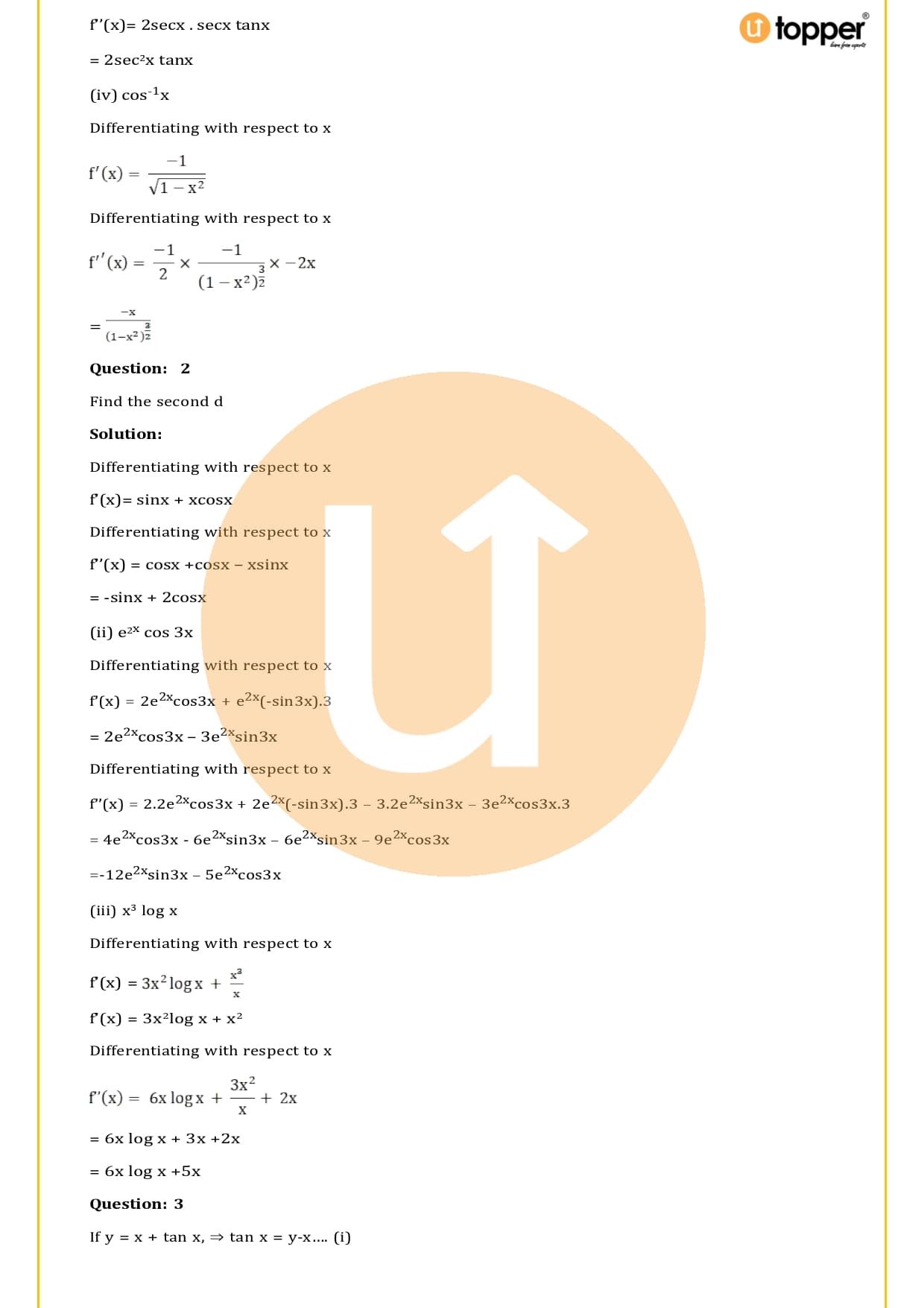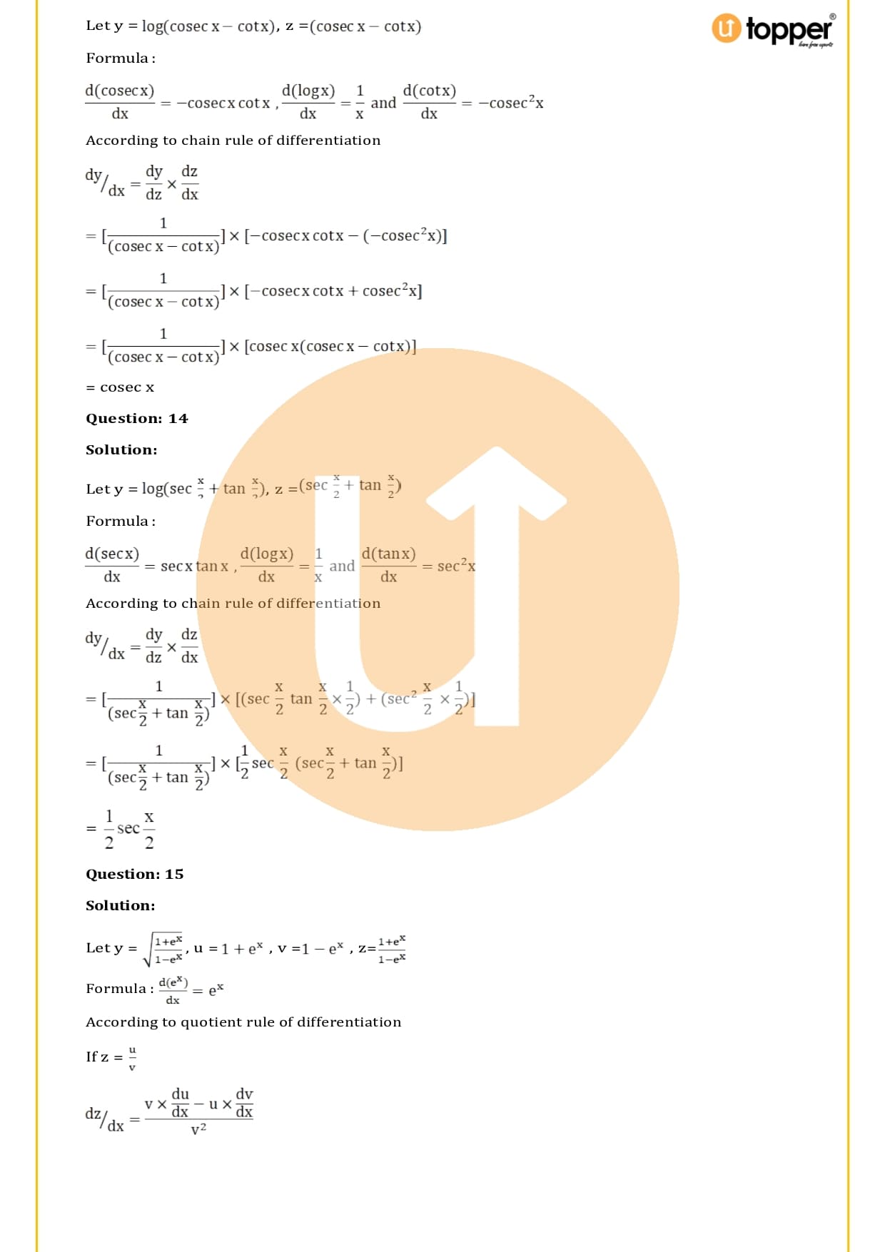 This chapter has a total of 143 questions spread across 10 exercises. This will give you a lot of practise with differentiation, which is also a very important subject on competitive exams. These questions also go into detail about all the important functions in the CBSE curriculum. If you use this reference source as part of your study routine, you’ll be able to review quickly and understand the ideas completely. You can also use the answers to the exercises to do your homework. This will fill in any gaps that might have been left by what you learned in class.