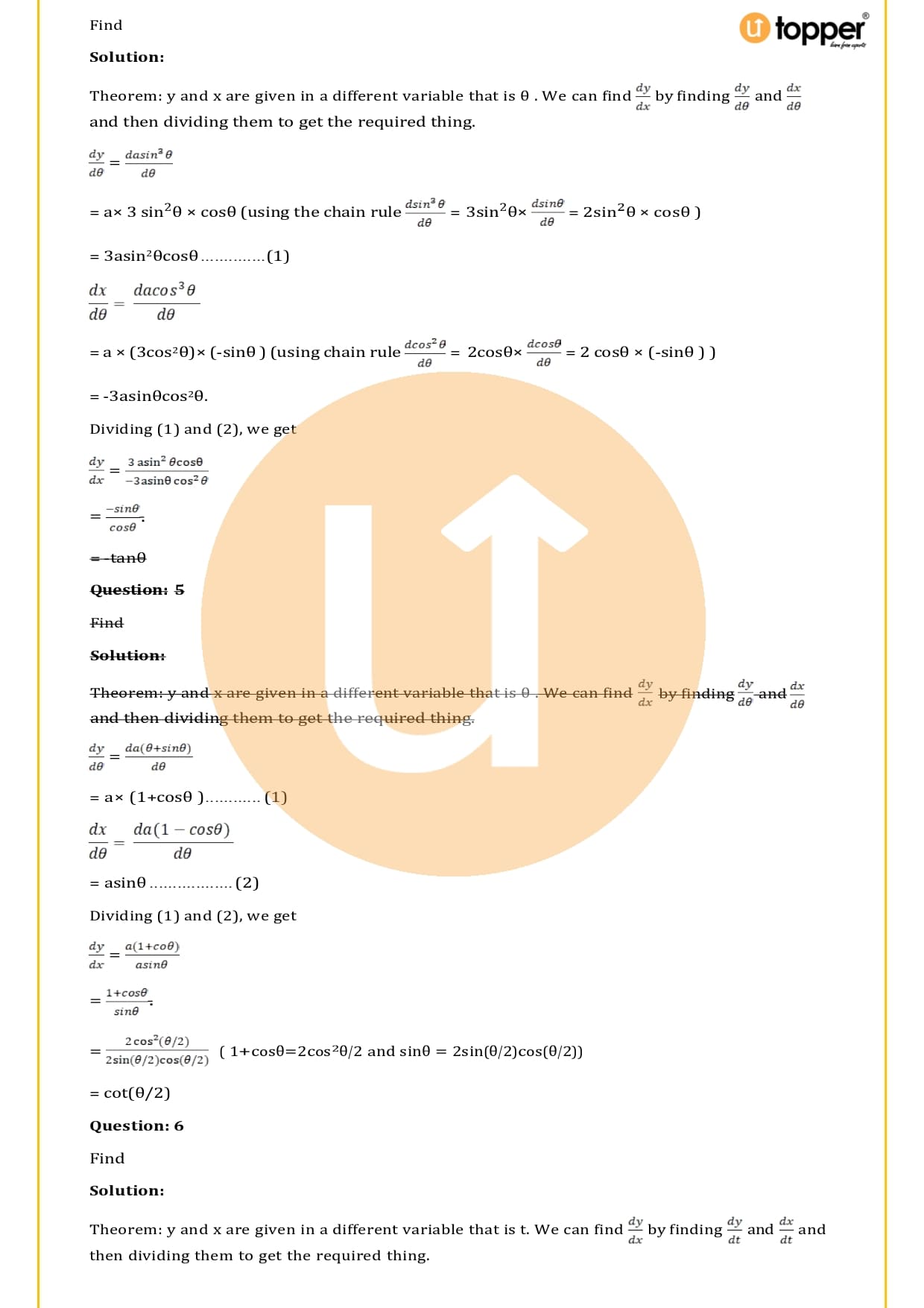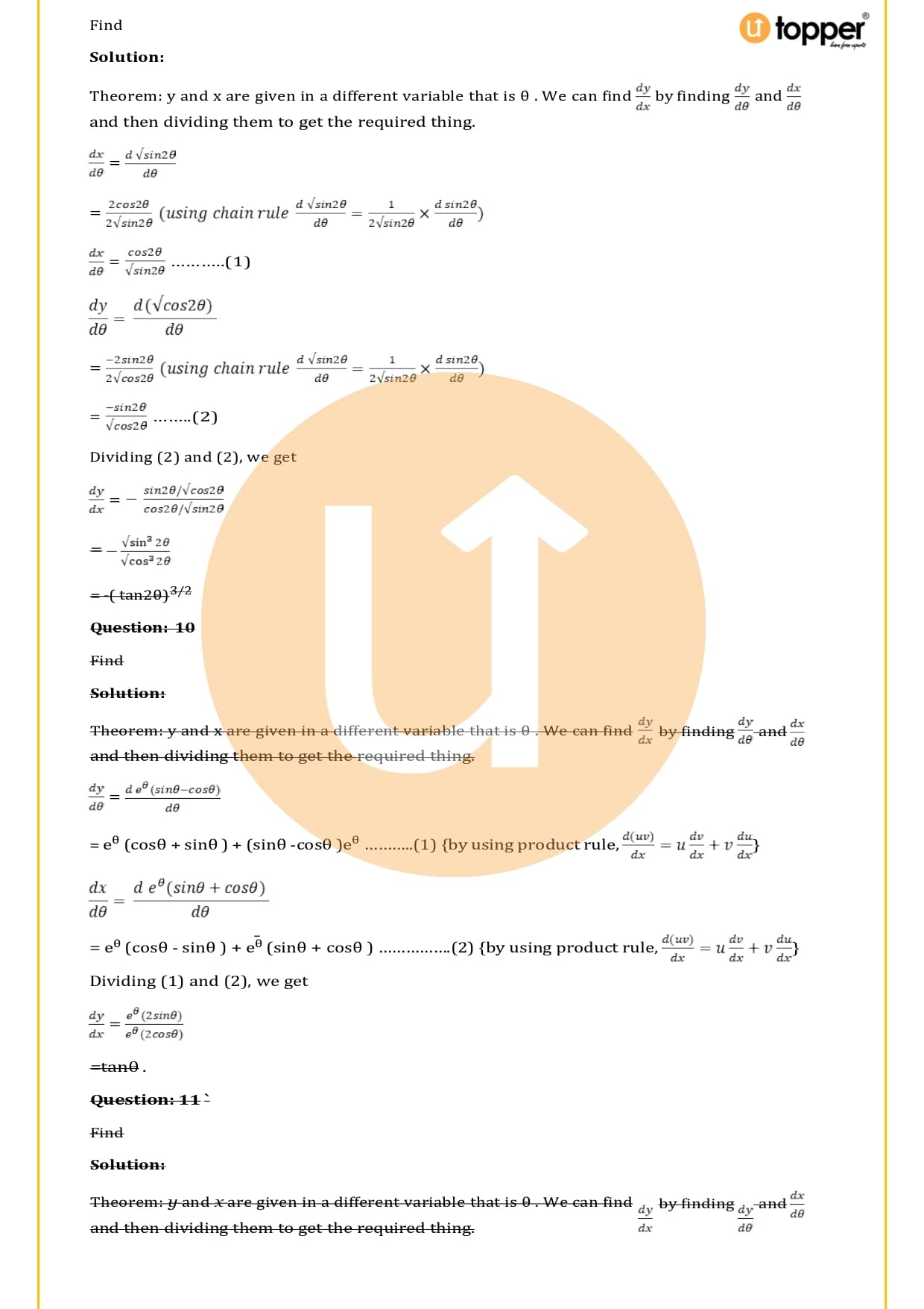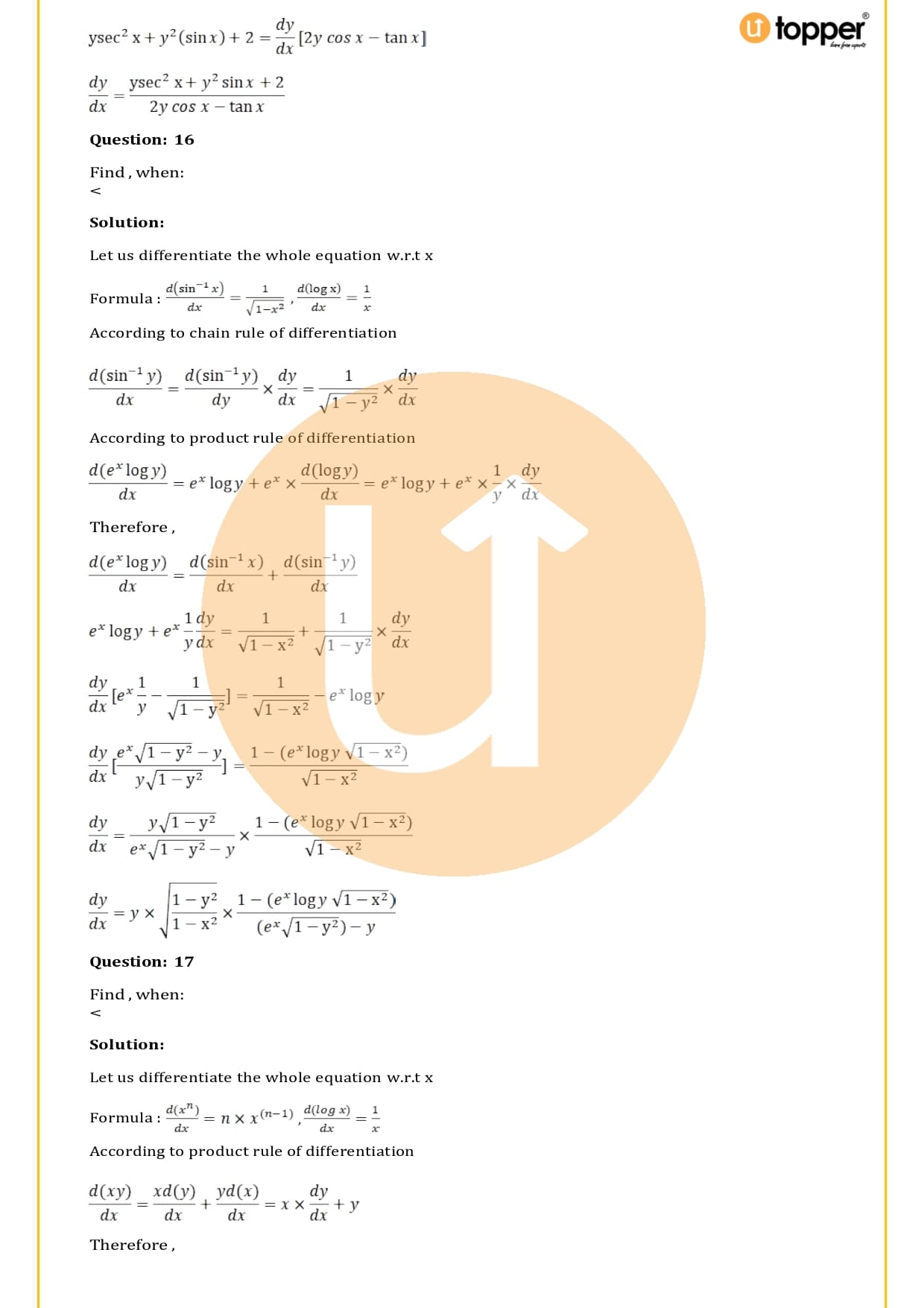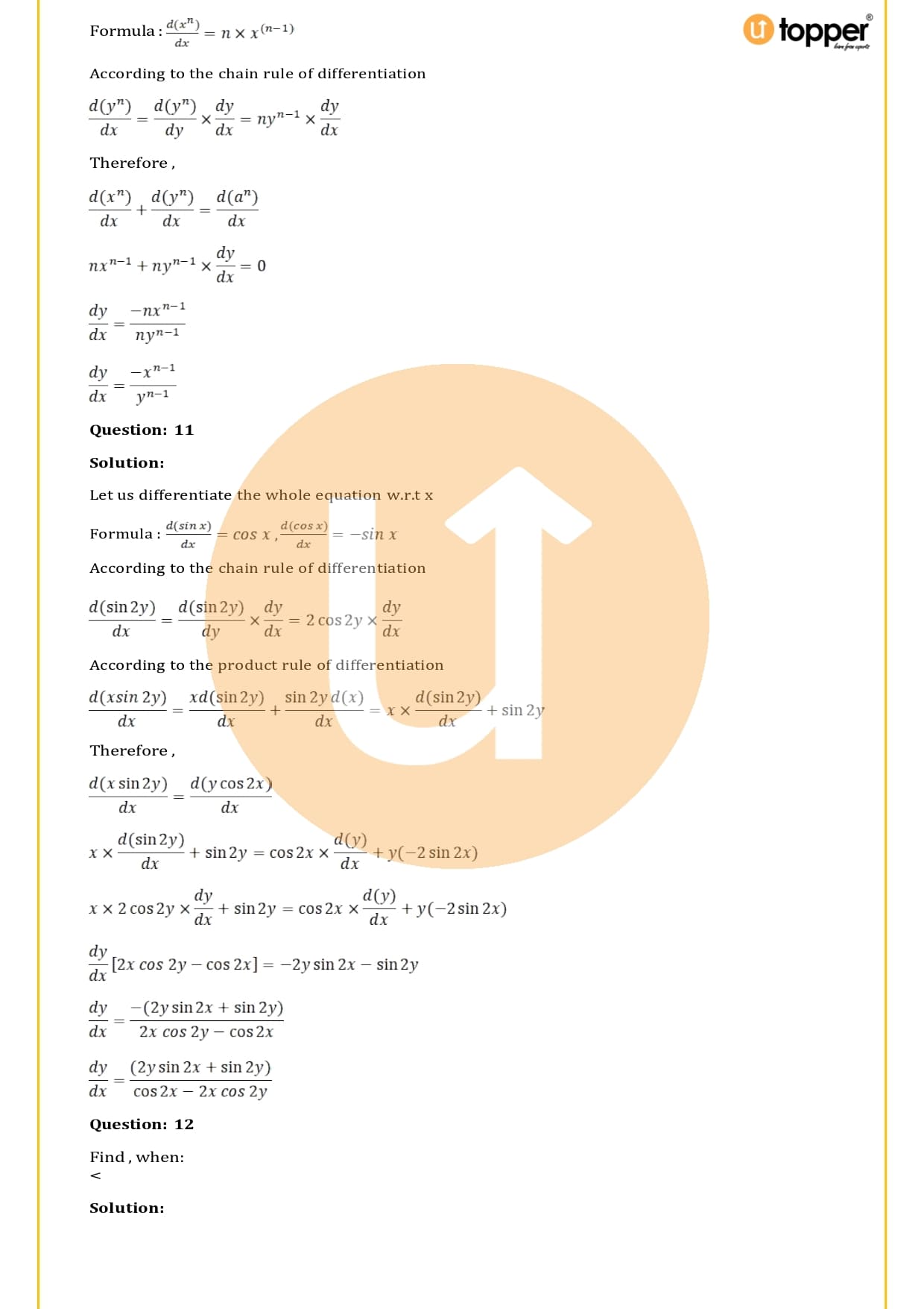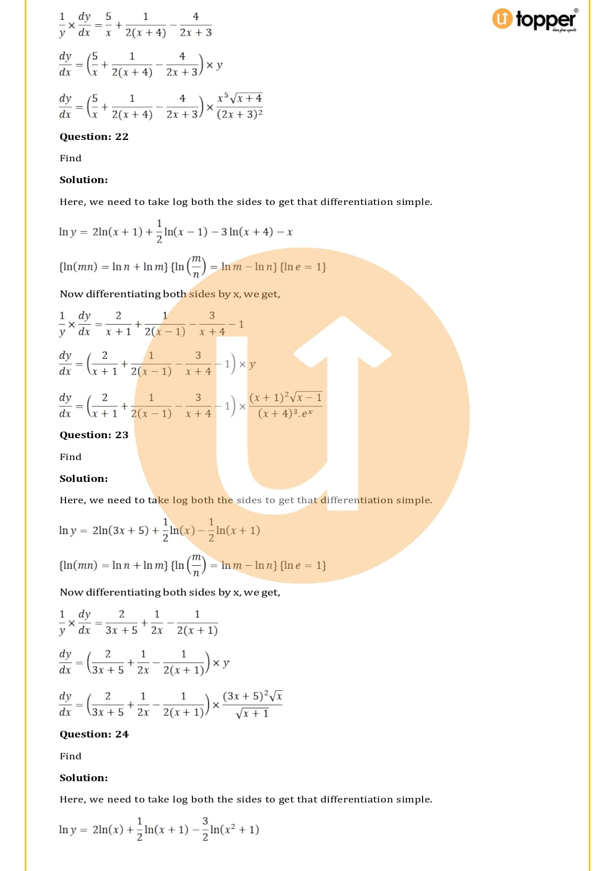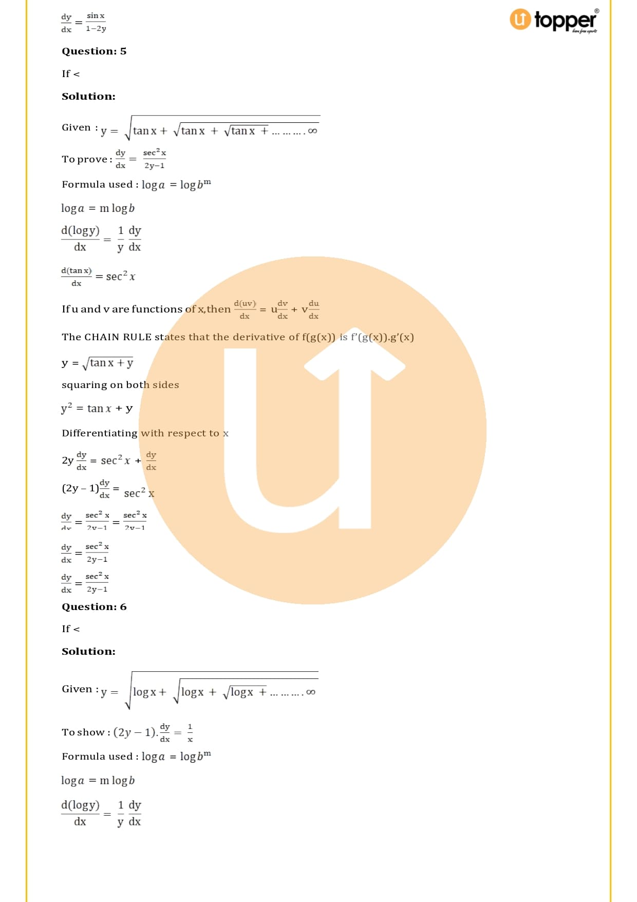 This chapter has a total of 143 questions spread across 10 exercises. This will give you a lot of practise with differentiation, which is also a very important subject on competitive exams. These questions also go into detail about all the important functions in the CBSE curriculum. If you use this reference source as part of your study routine, you’ll be able to review quickly and understand the ideas completely. You can also use the answers to the exercises to do your homework. This will fill in any gaps that might have been left by what you learned in class.