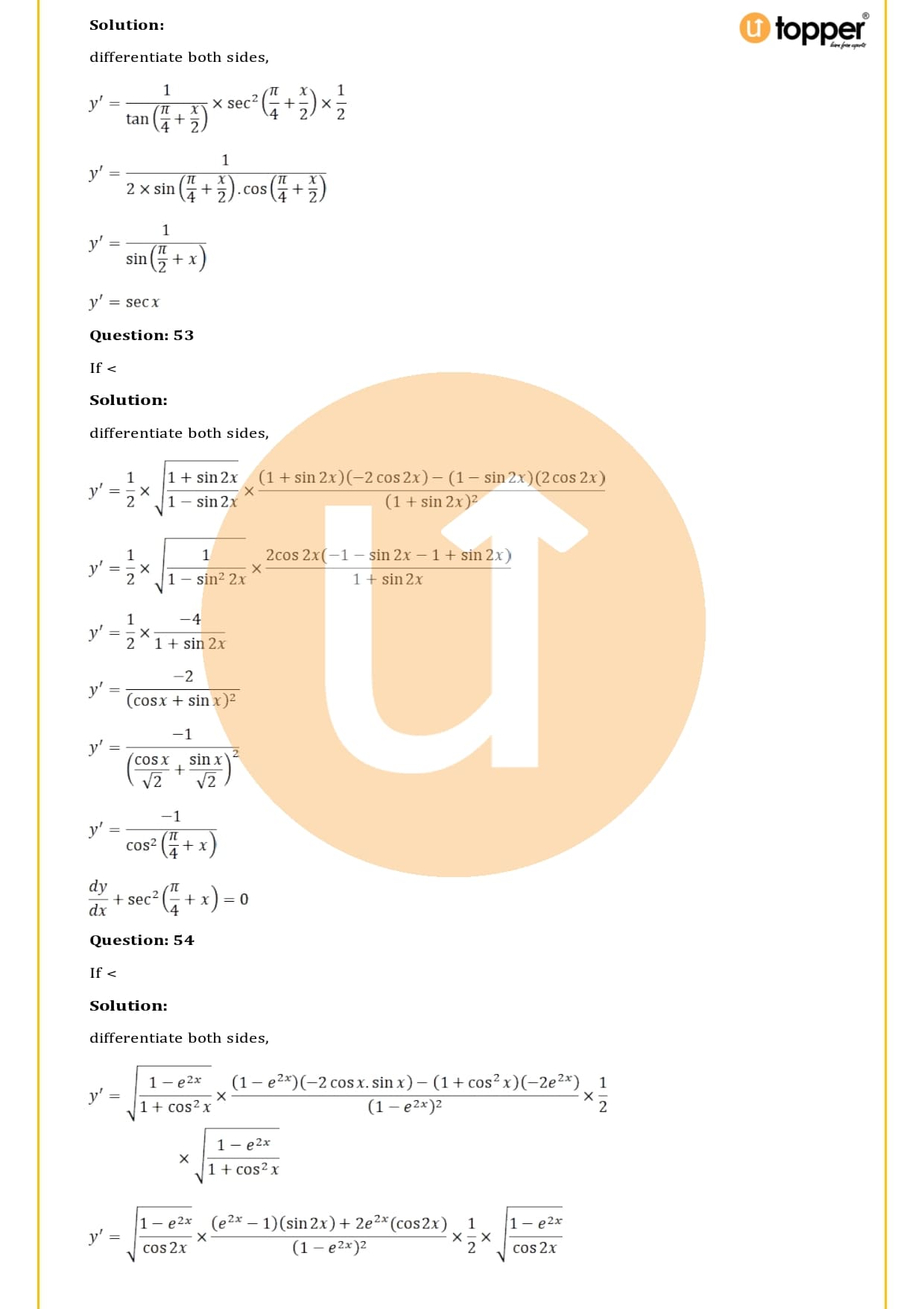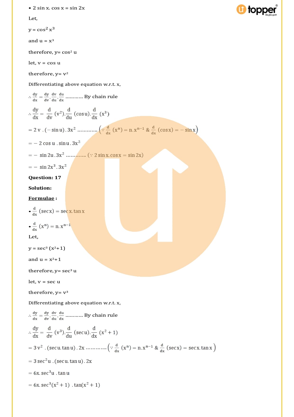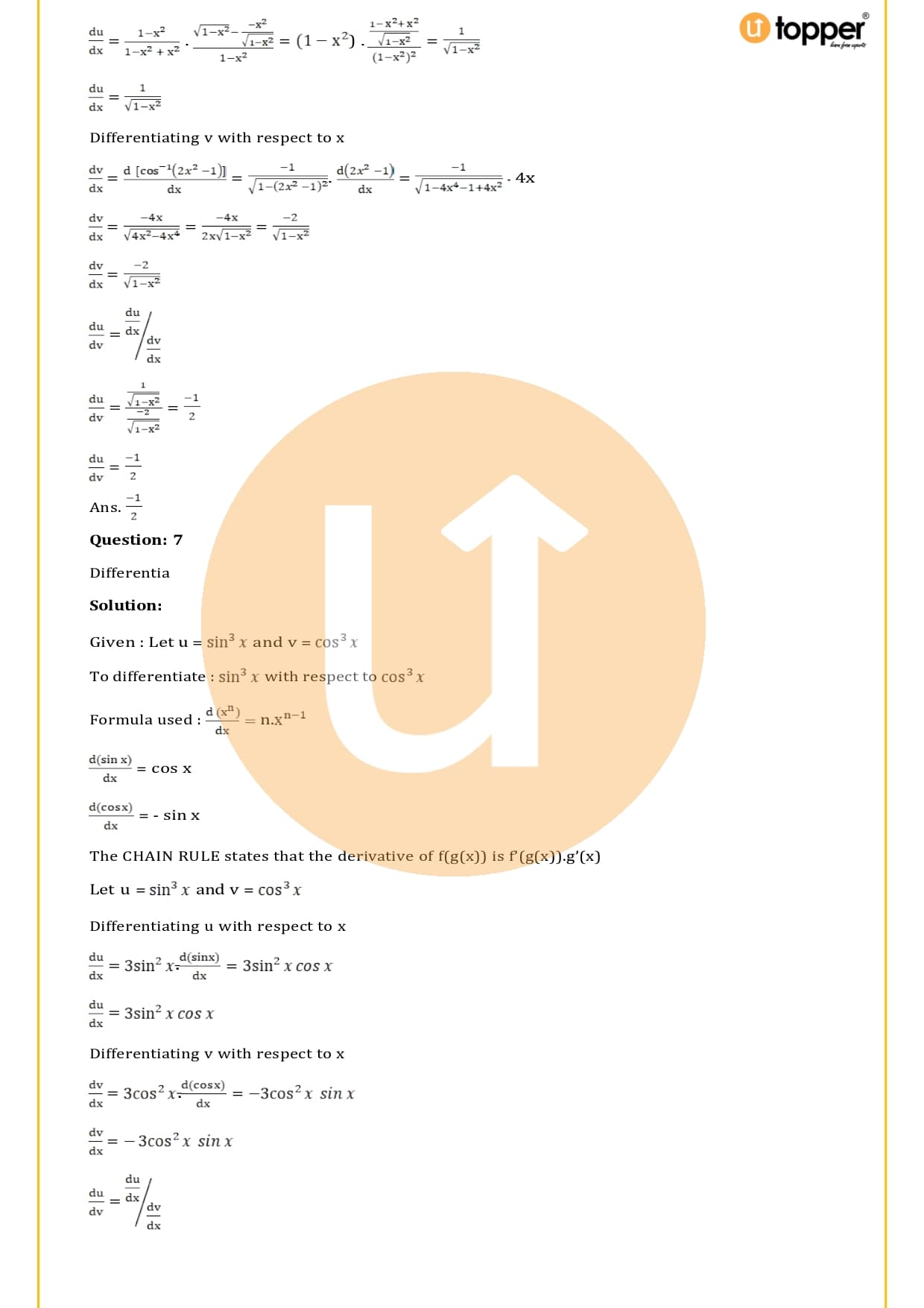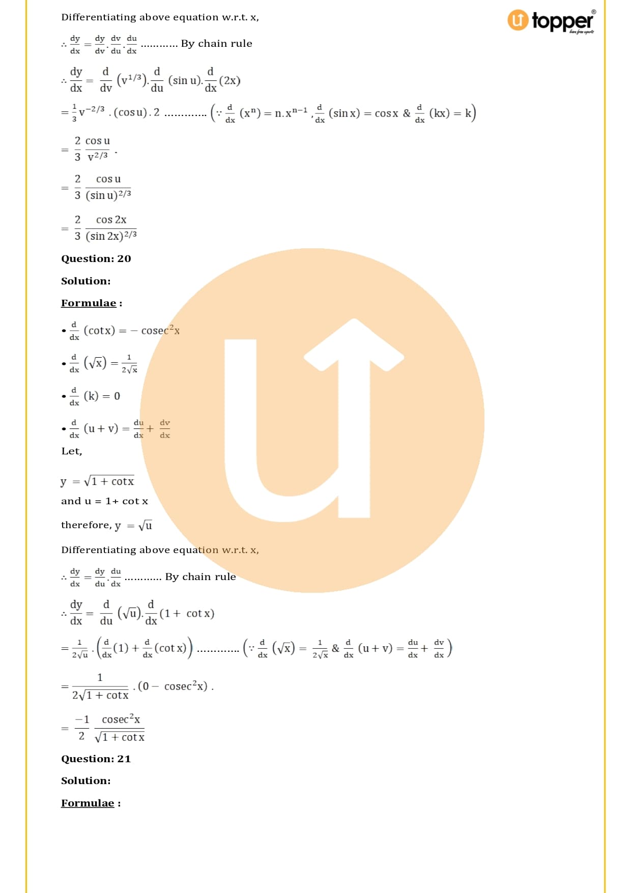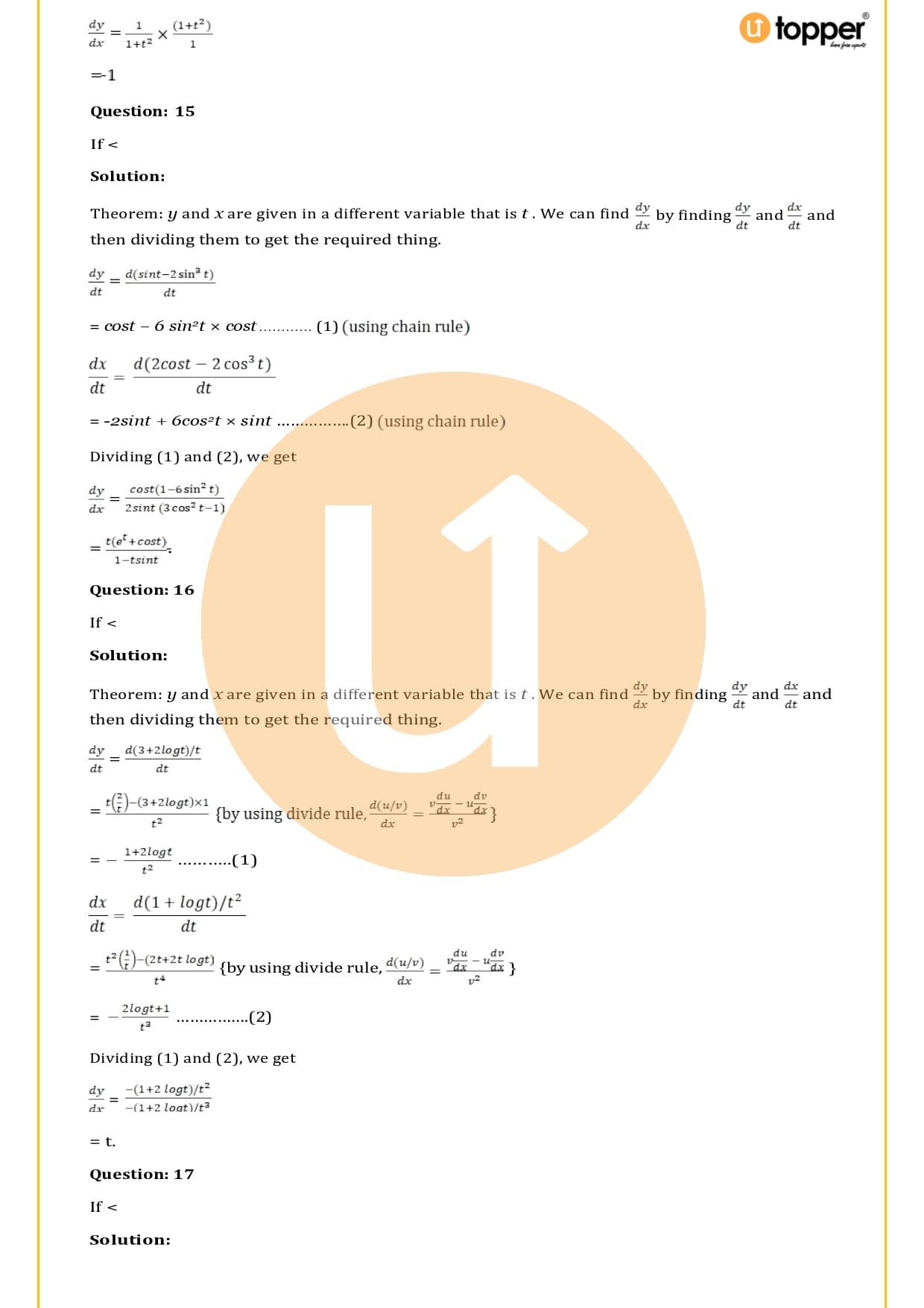This chapter has a total of 143 questions spread across 10 exercises. This will give you a lot of practise with differentiation, which is also a very important subject on competitive exams. These questions also go into detail about all the important functions in the CBSE curriculum. If you use this reference source as part of your study routine, you’ll be able to review quickly and understand the ideas completely. You can also use the answers to the exercises to do your homework. This will fill in any gaps that might have been left by what you learned in class.