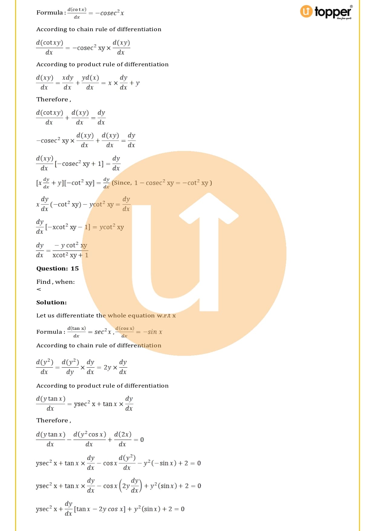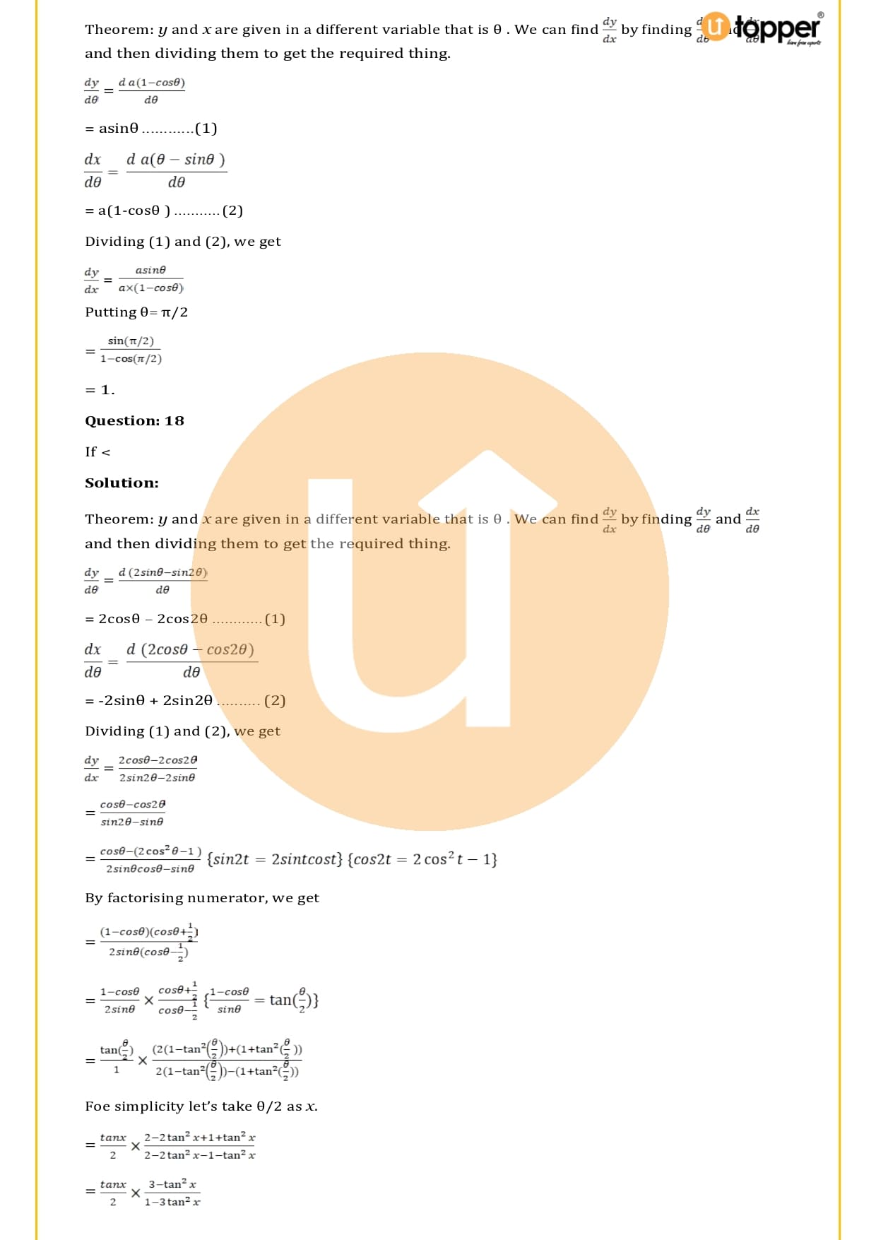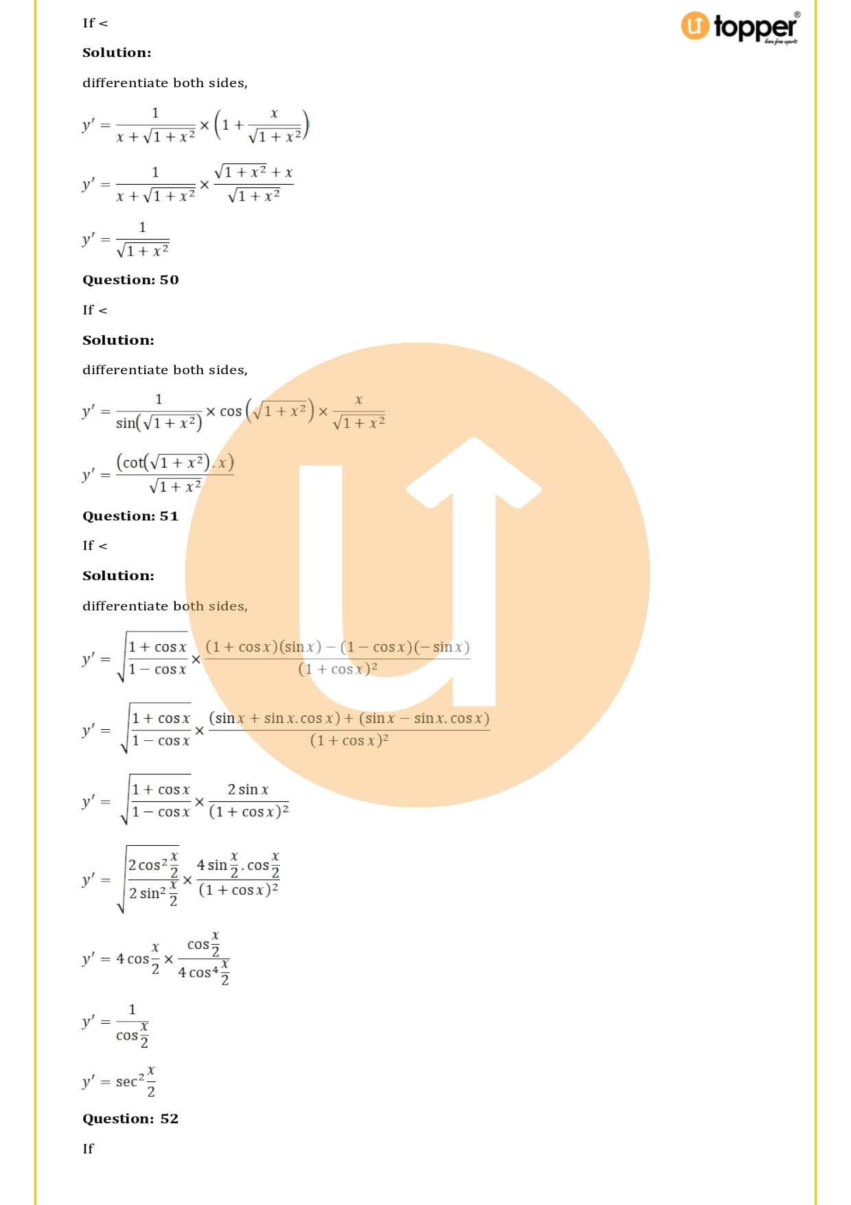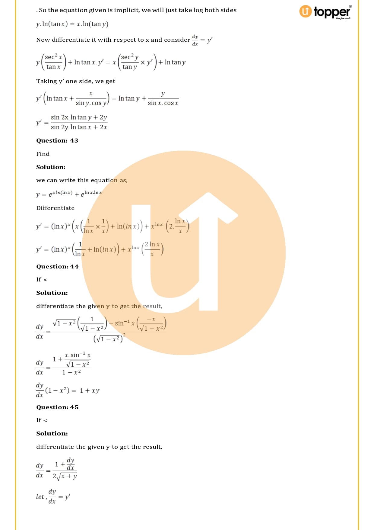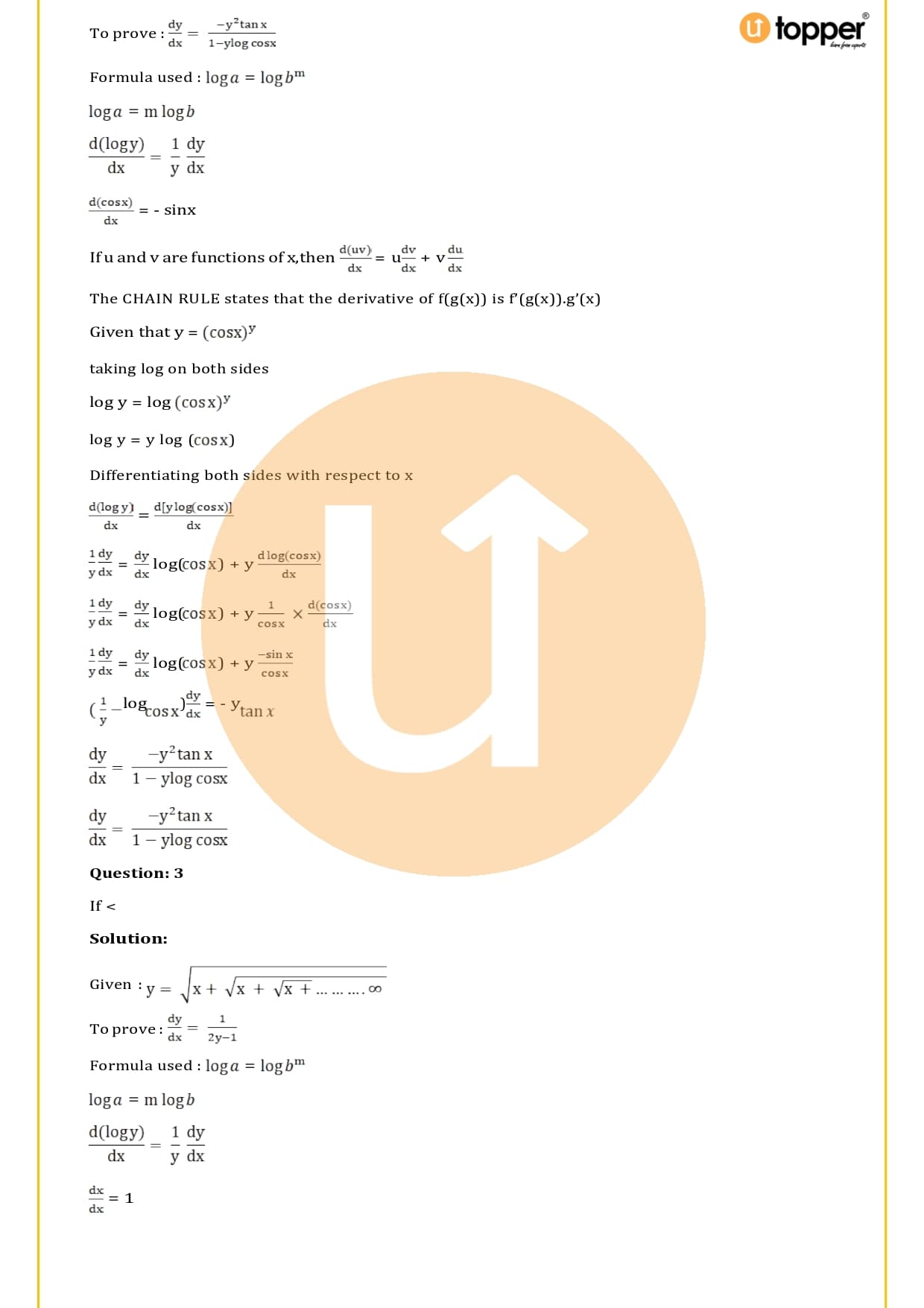This chapter has a total of 143 questions spread across 10 exercises. This will give you a lot of practise with differentiation, which is also a very important subject on competitive exams. These questions also go into detail about all the important functions in the CBSE curriculum. If you use this reference source as part of your study routine, you’ll be able to review quickly and understand the ideas completely. You can also use the answers to the exercises to do your homework. This will fill in any gaps that might have been left by what you learned in class.