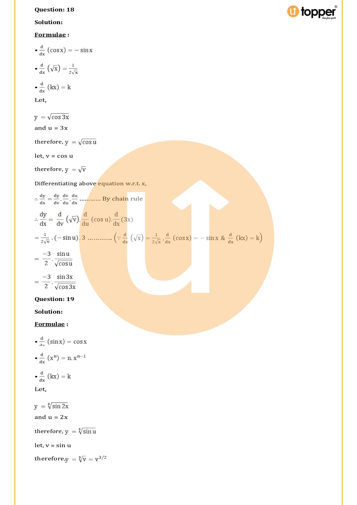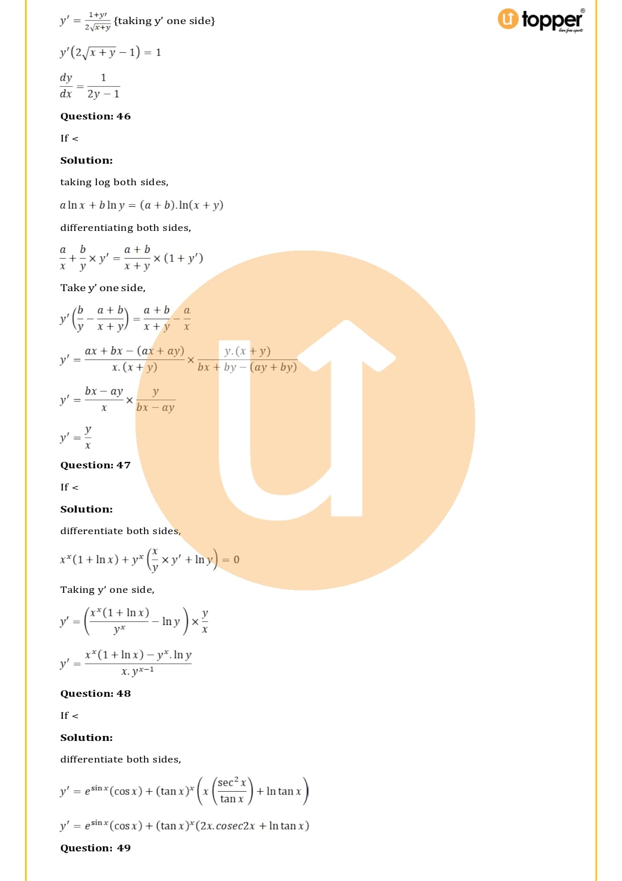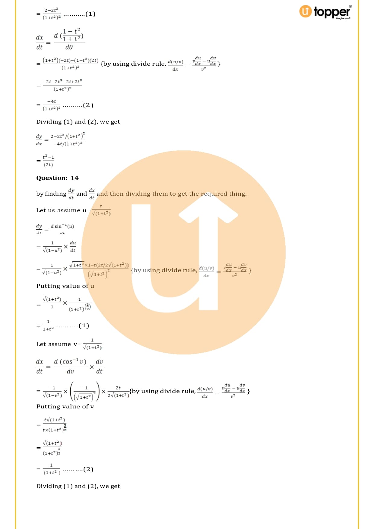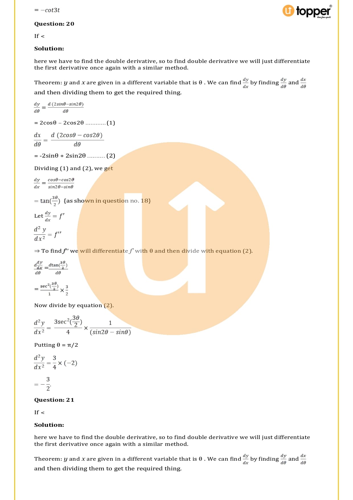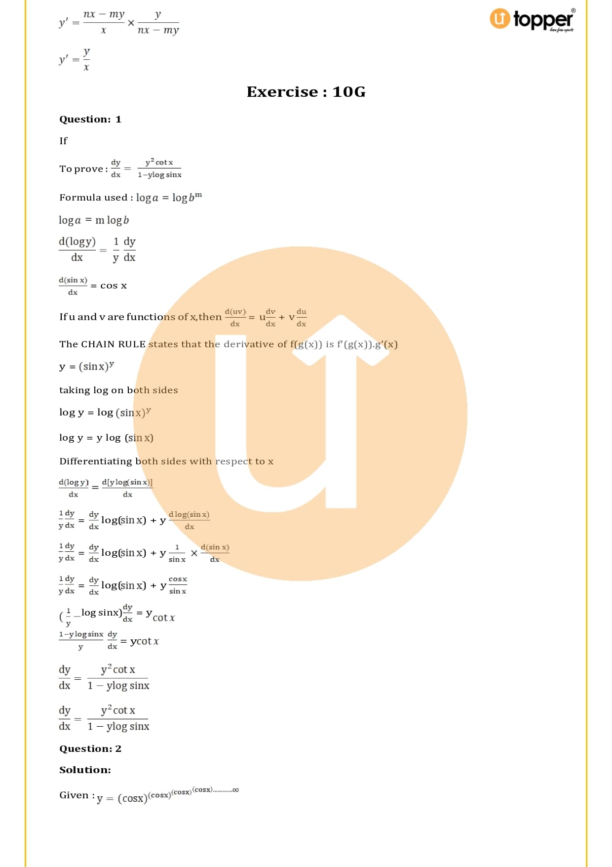 This chapter has a total of 143 questions spread across 10 exercises. This will give you a lot of practise with differentiation, which is also a very important subject on competitive exams. These questions also go into detail about all the important functions in the CBSE curriculum. If you use this reference source as part of your study routine, you’ll be able to review quickly and understand the ideas completely. You can also use the answers to the exercises to do your homework. This will fill in any gaps that might have been left by what you learned in class.