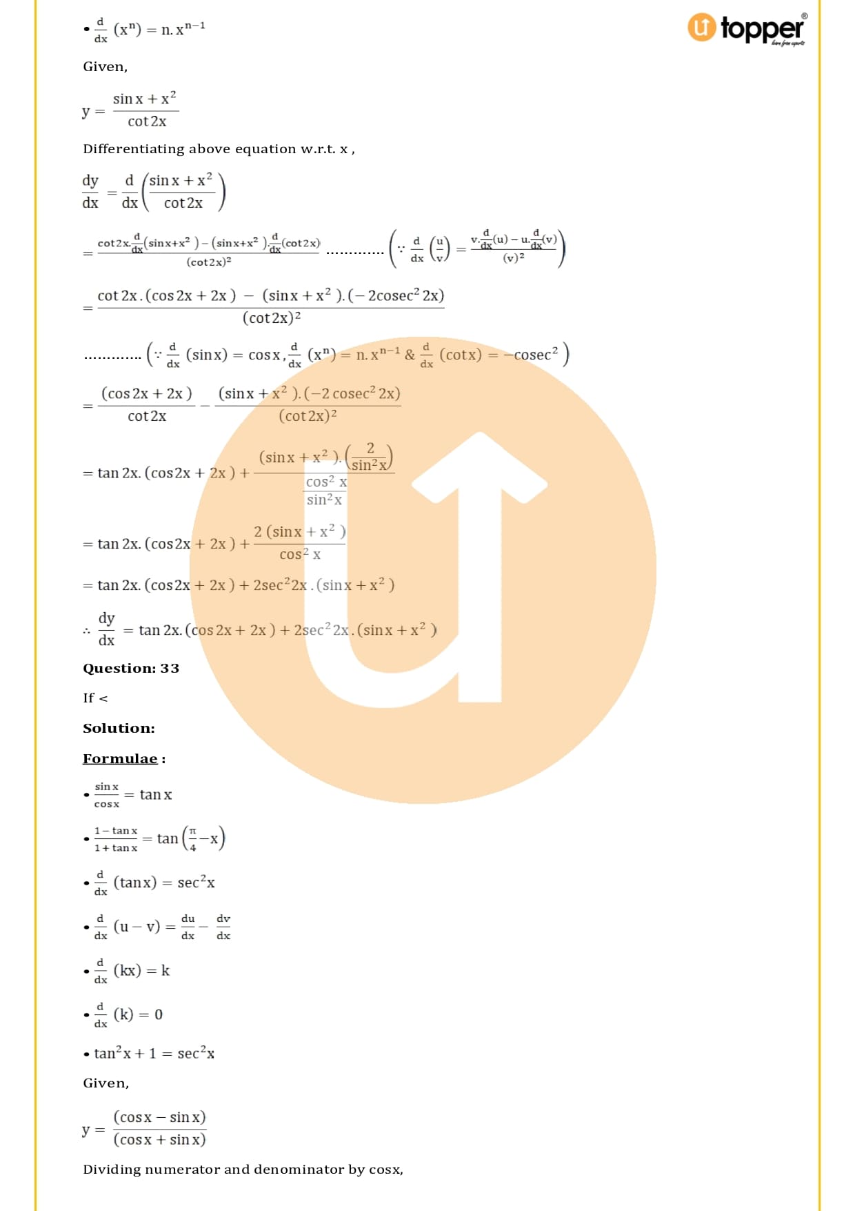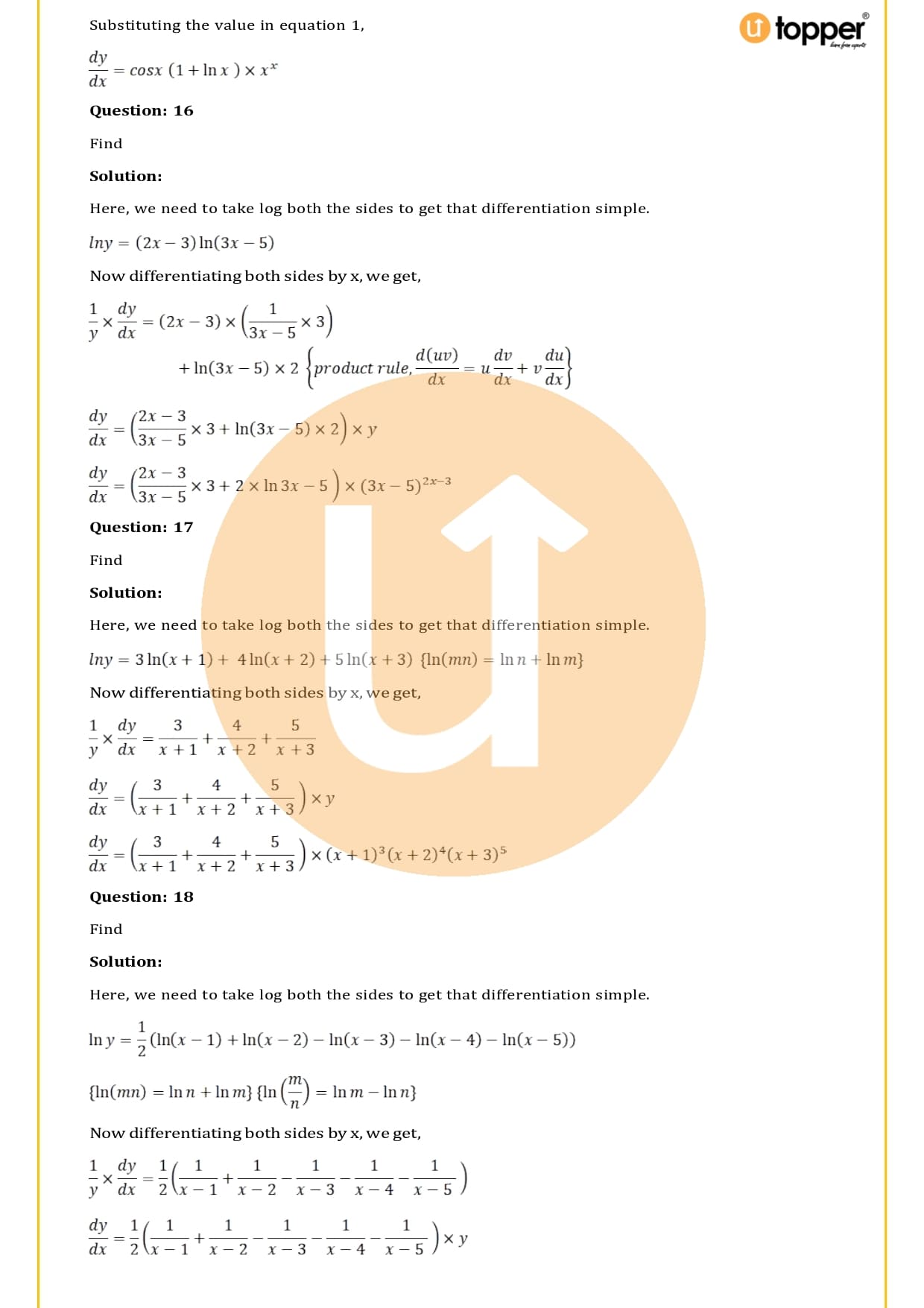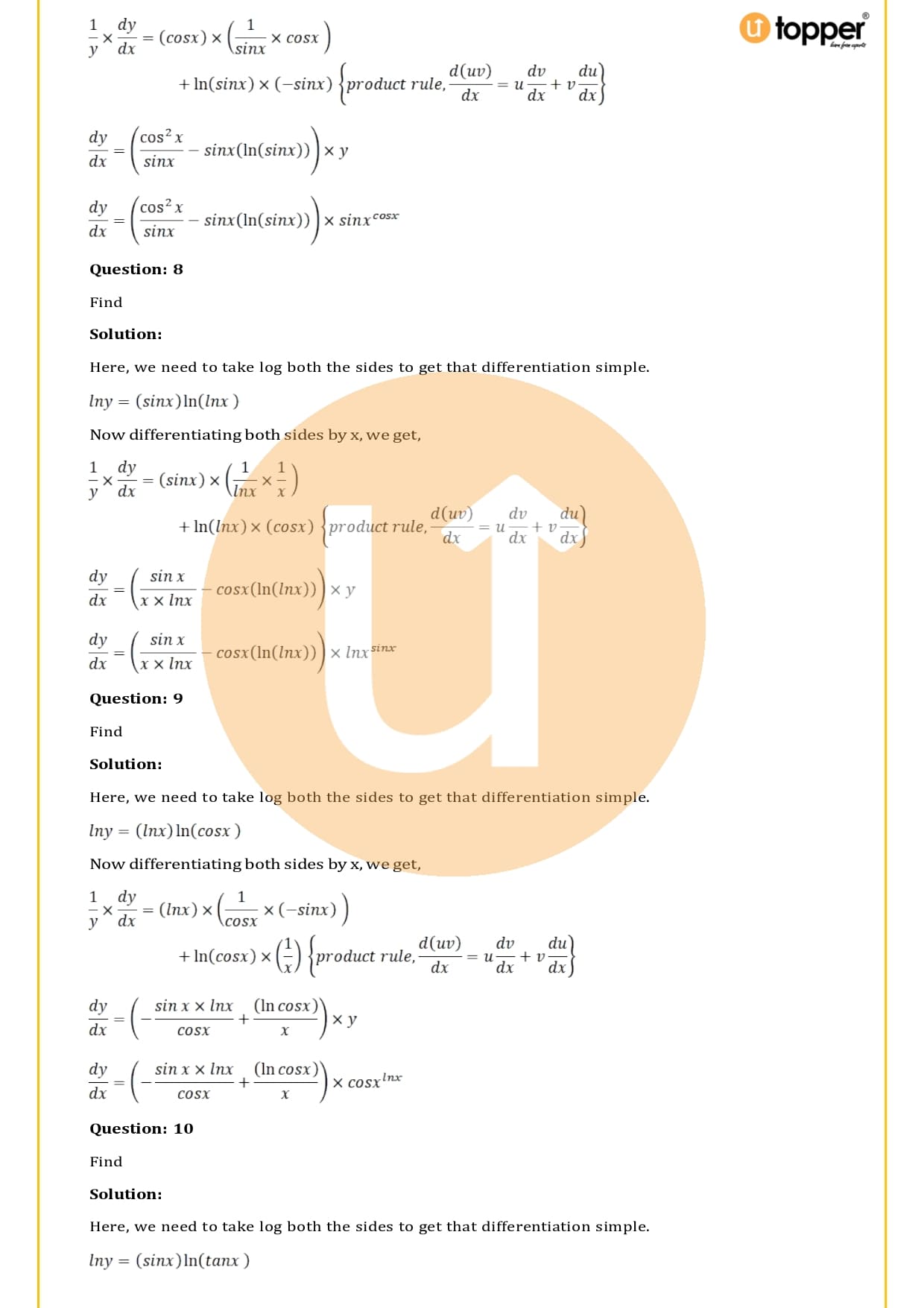 RS Aggarwal Class 12 Solutions Chapter 10 Differentiation can now be downloaded from the official Utopper website. The answers make it easy for students to look them up on the go. You can save these answers to any device you want. The offline download is very helpful, especially if you want to study for your test but don’t have access to the internet. You also like to keep these in hard copy.