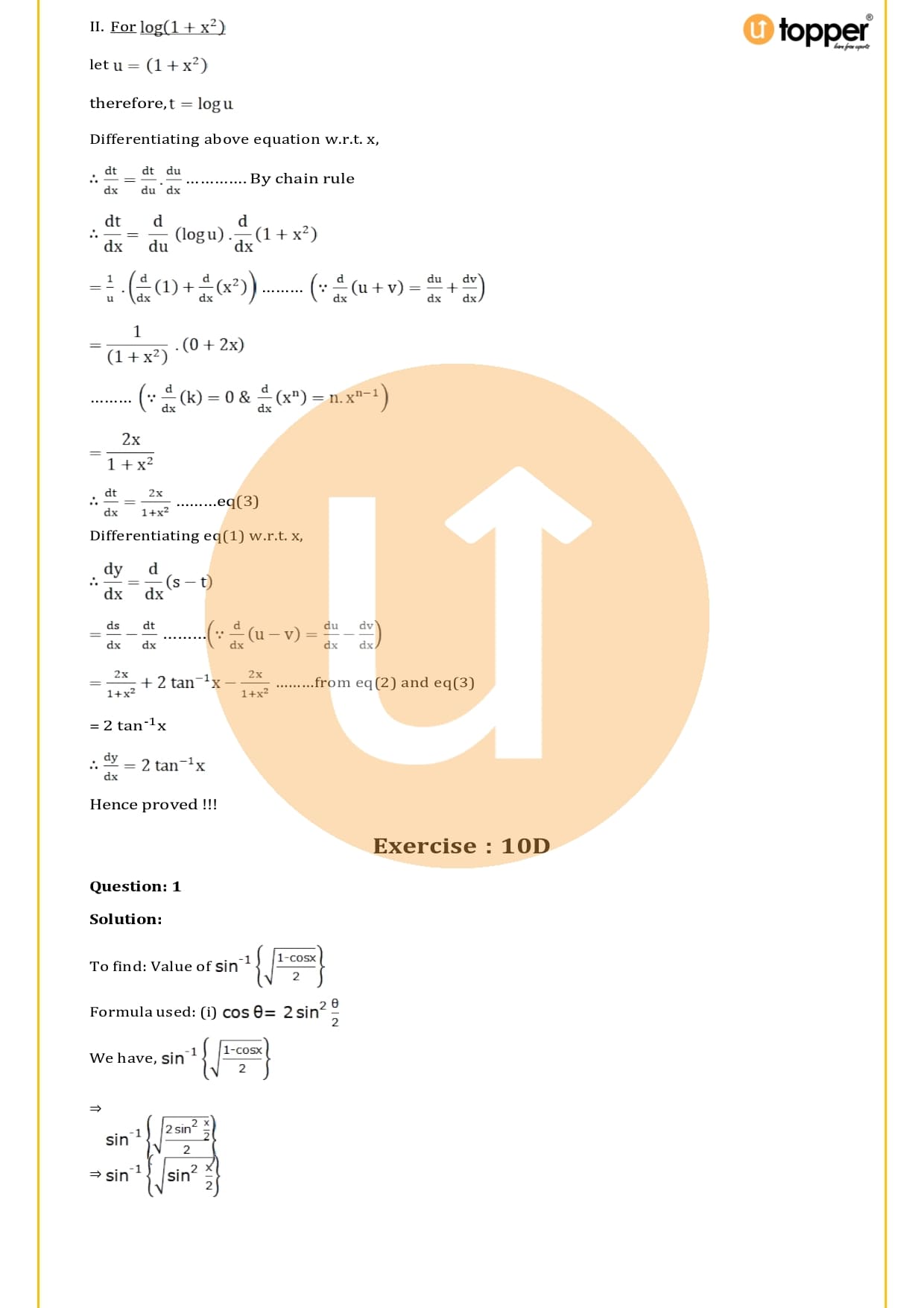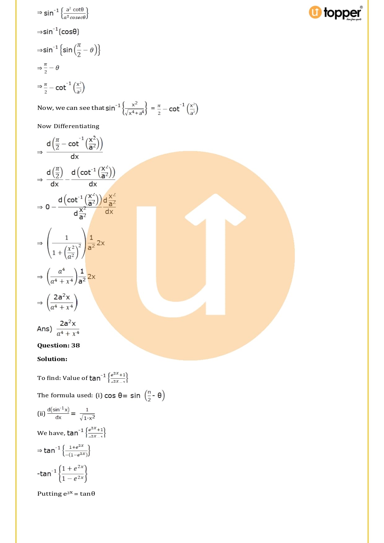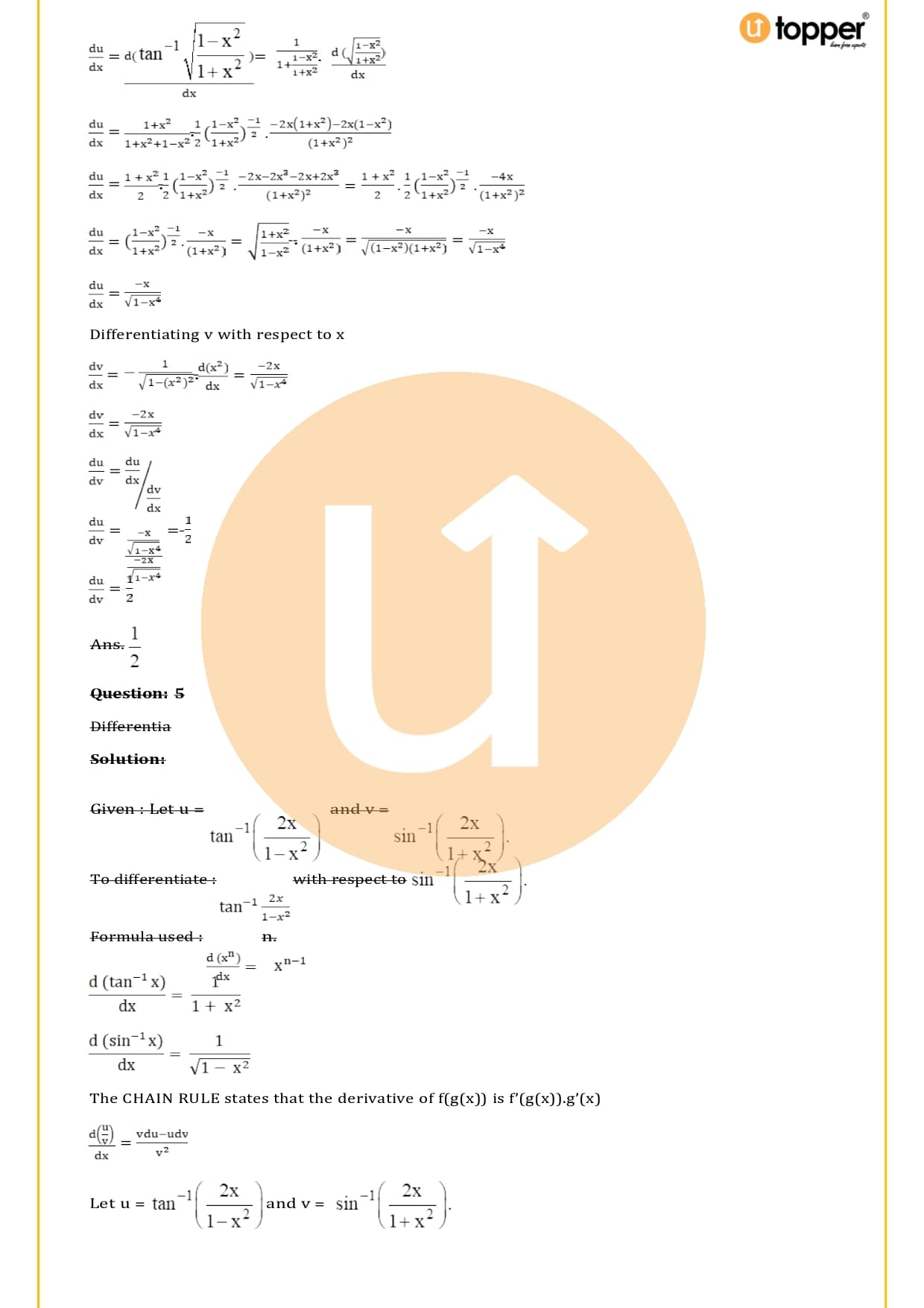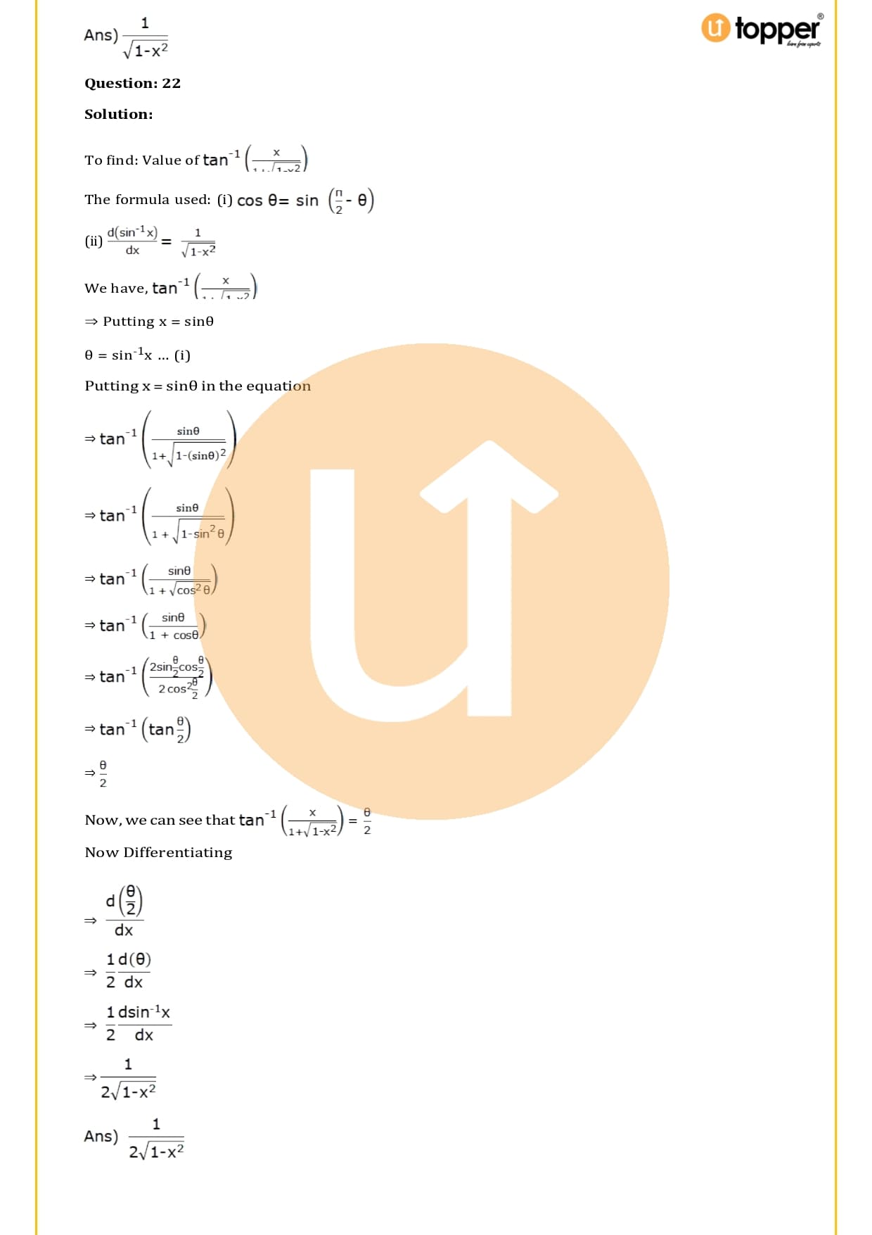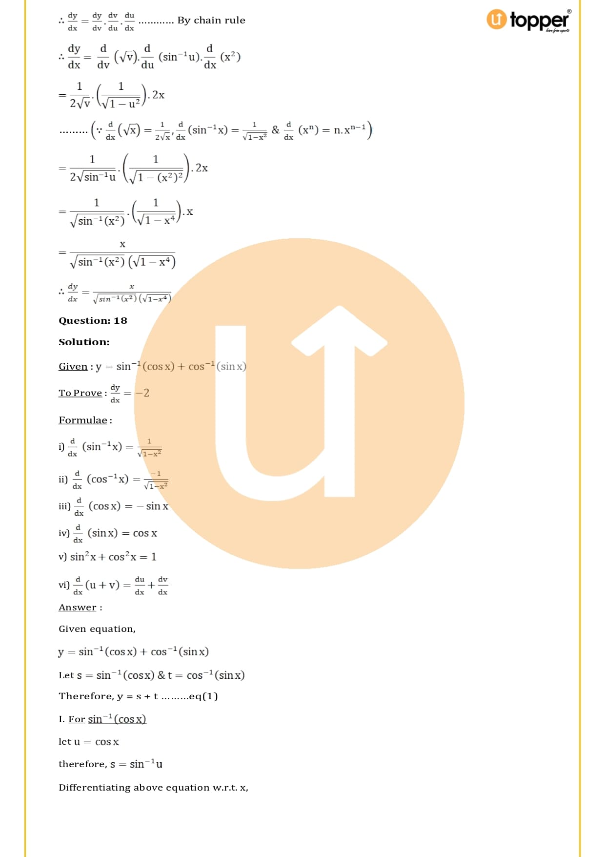 Ans – Trigonometric ratios are the same thing as inverse trigonometry functions. Here are the formulas from RS Aggarwal Class 12 Solutions Chapter 10 on Differentiation for the derivative of inverse trigonometric functions: