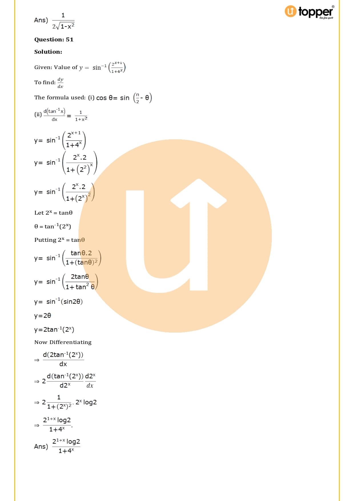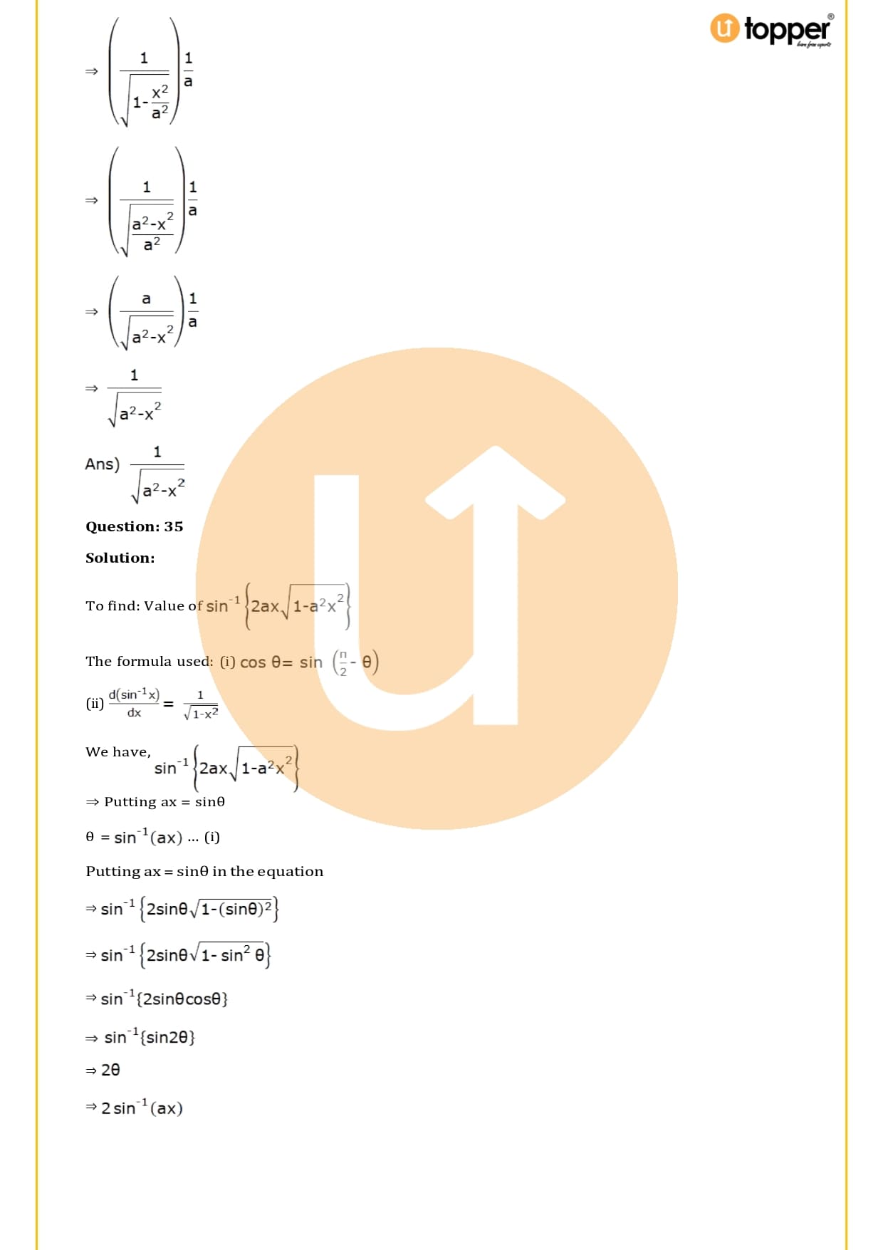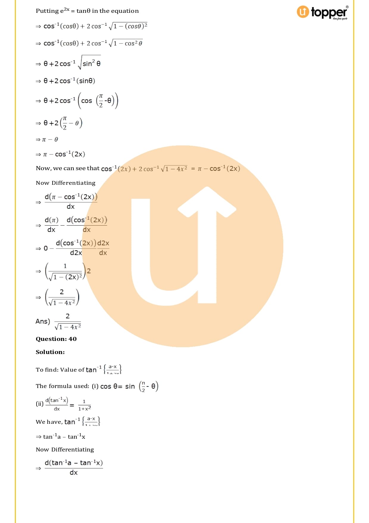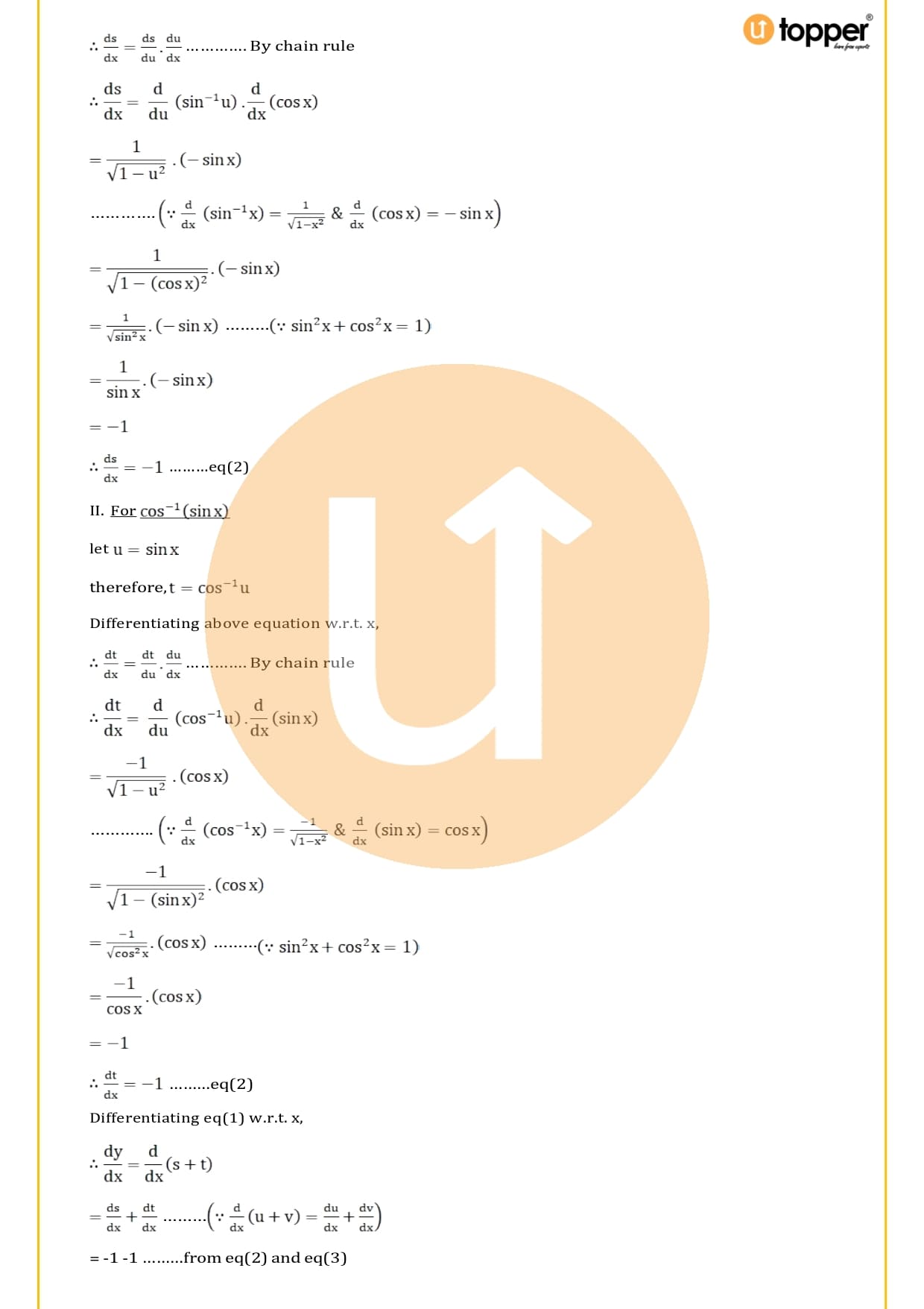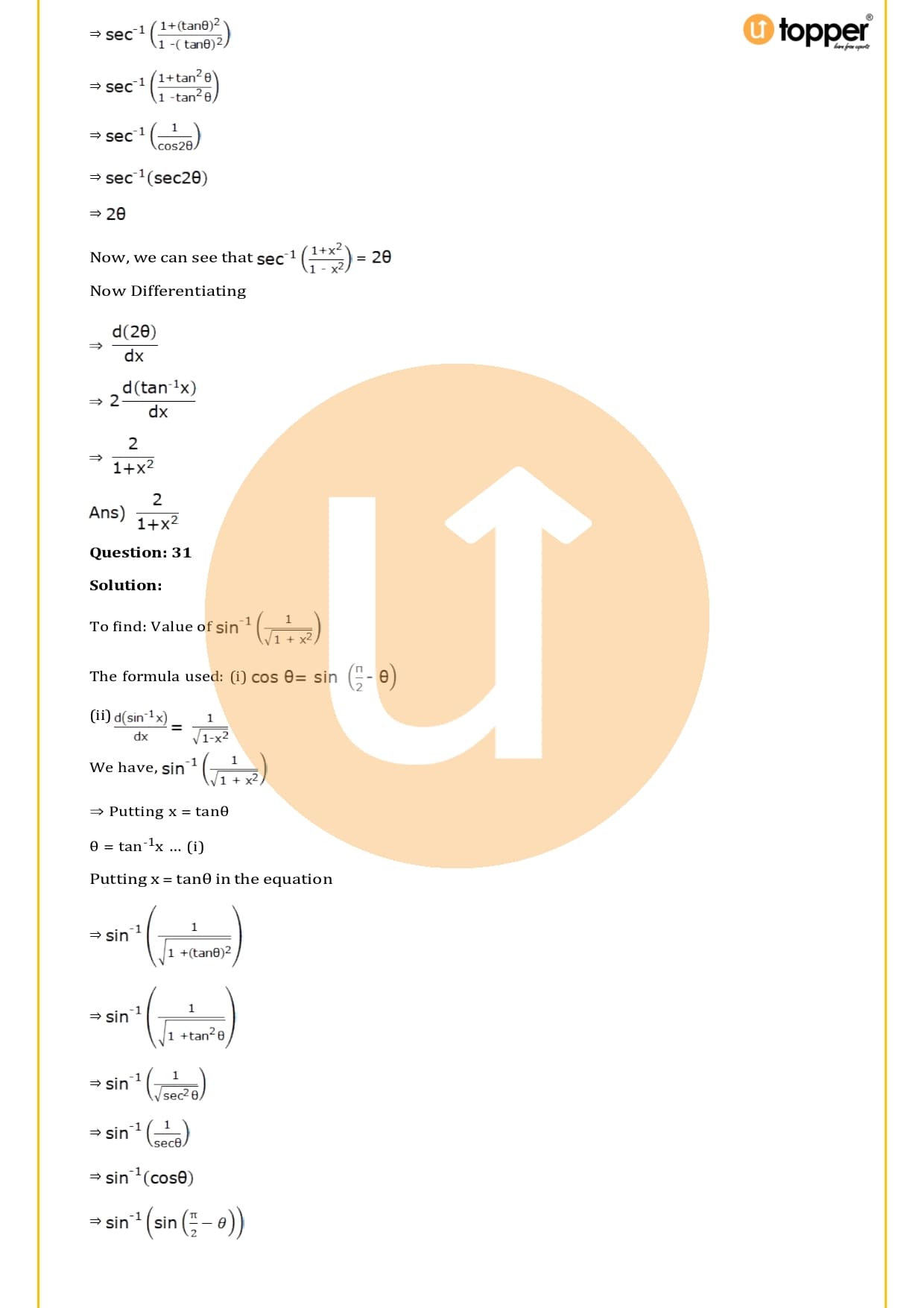 Ans – Trigonometric ratios are the same thing as inverse trigonometry functions. Here are the formulas from RS Aggarwal Class 12 Solutions Chapter 10 on Differentiation for the derivative of inverse trigonometric functions: