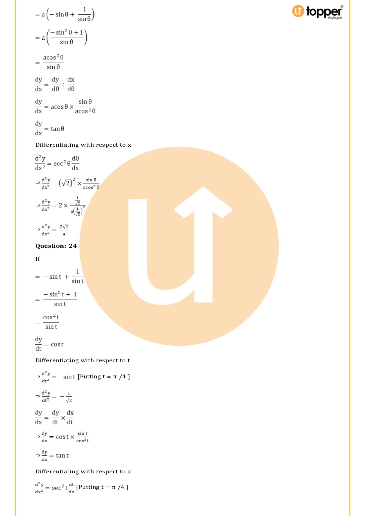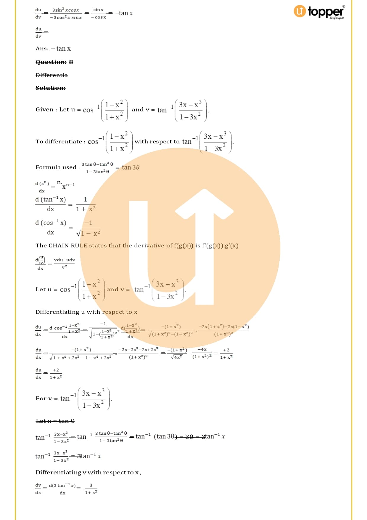 RS Aggawal Class 12 Solutions Chapter 10 – Differentiation