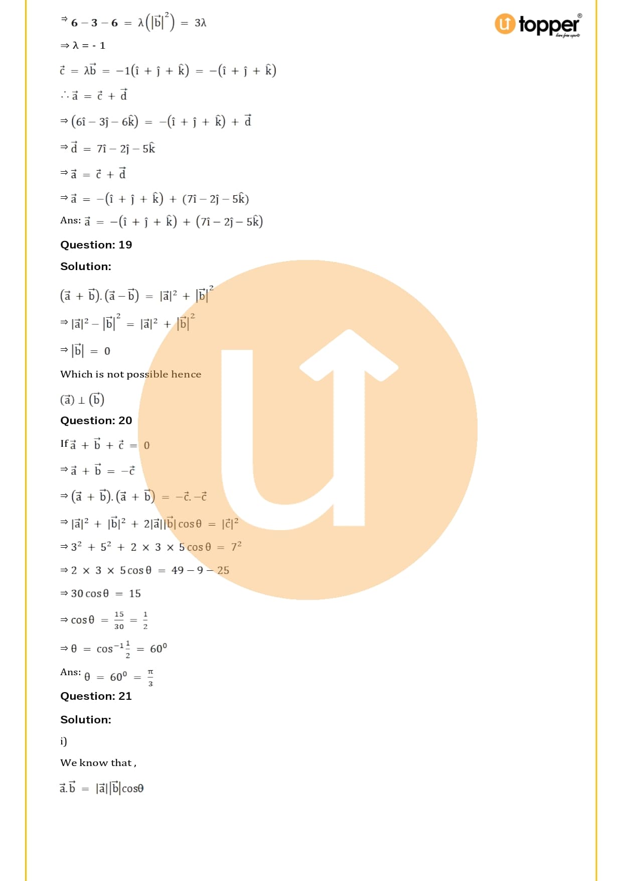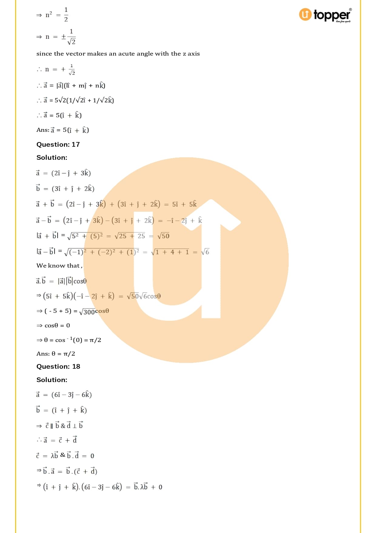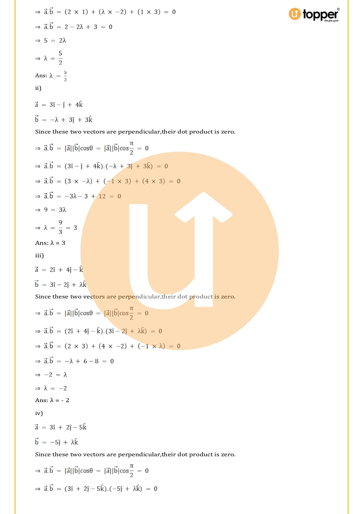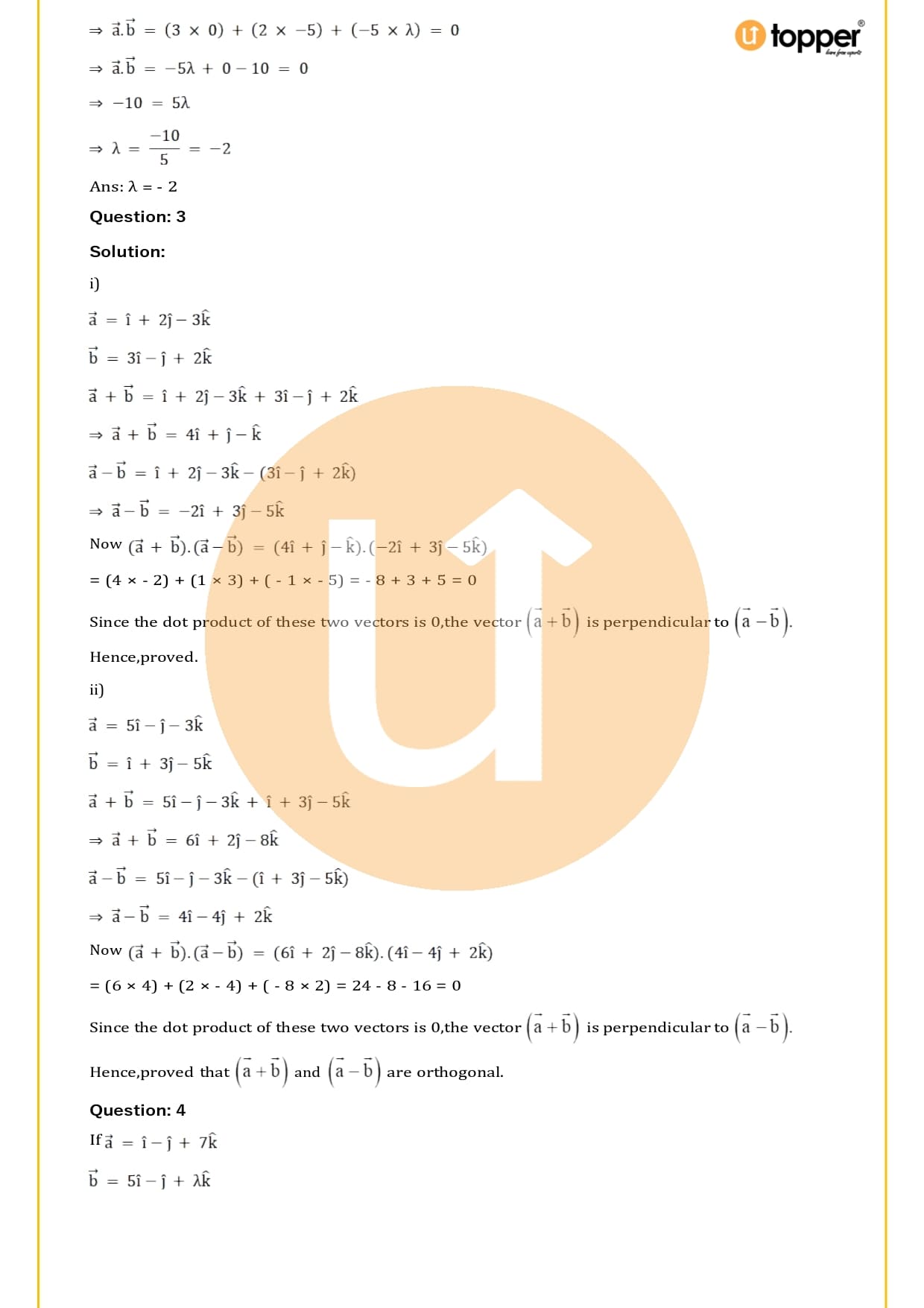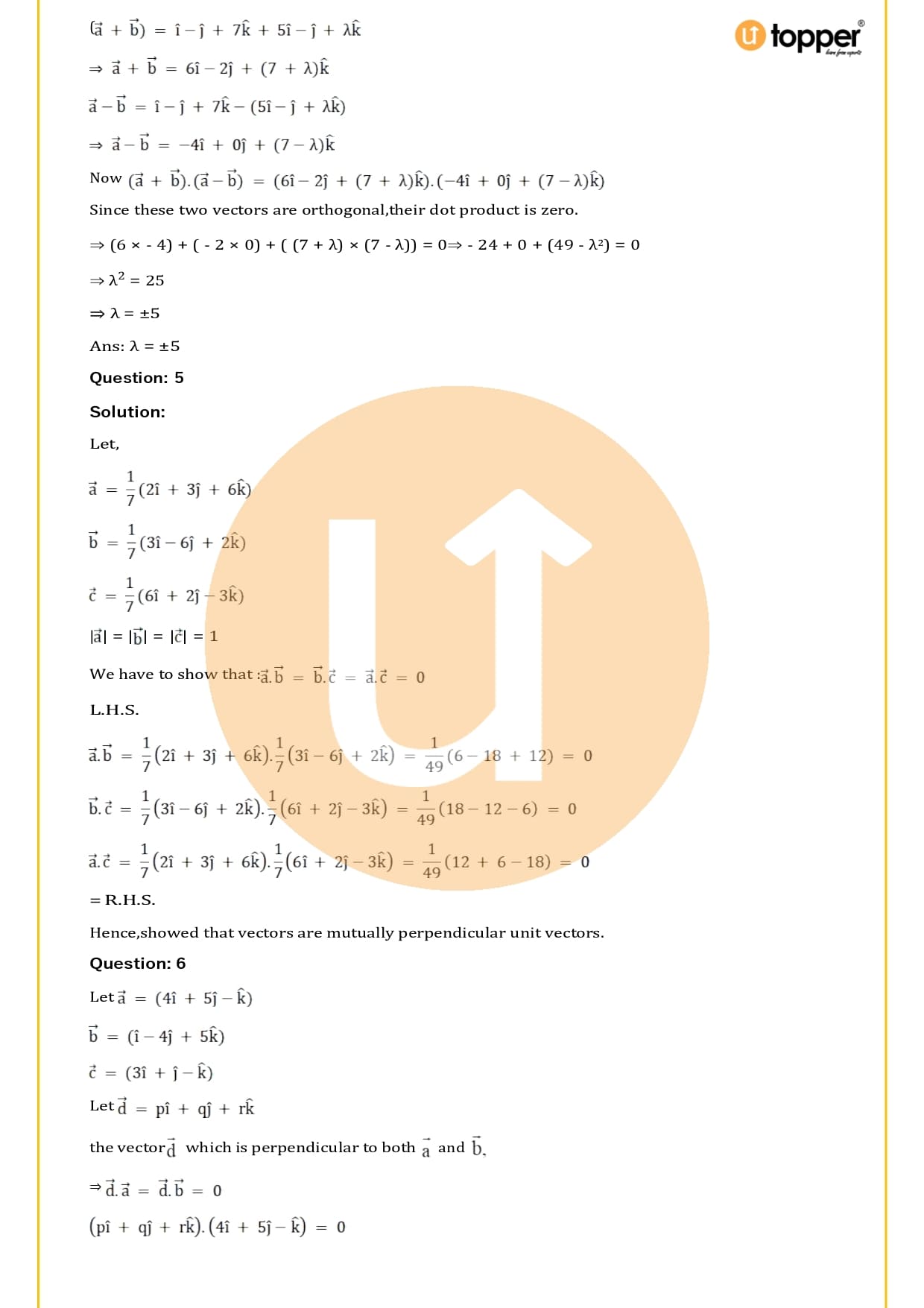 Ans – Scalar or dot products of vectors, as they are called in the solutions, have the following important properties: