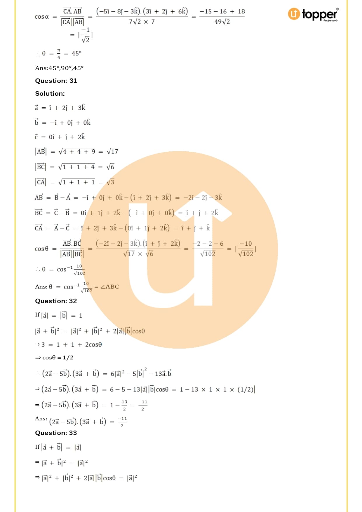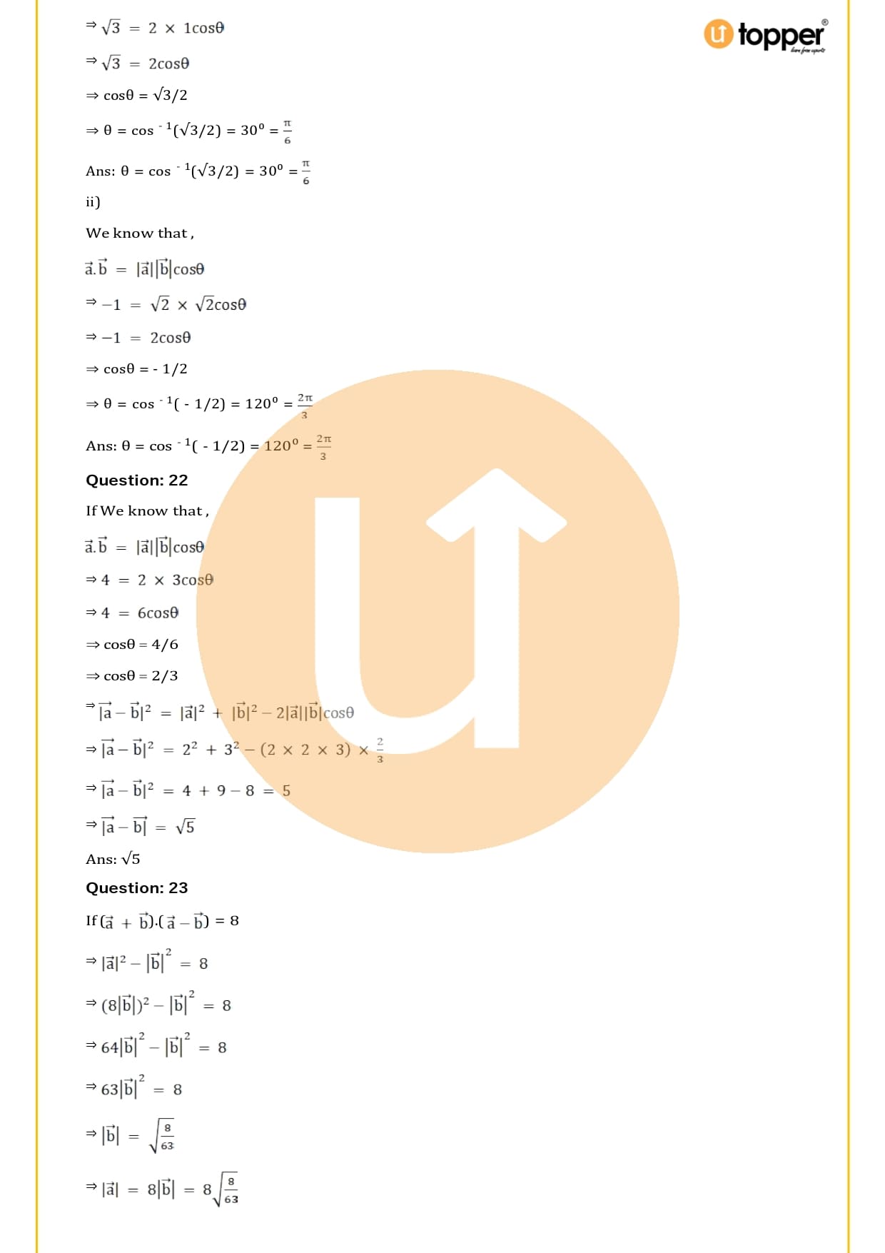 Chapter-23 Scalar, or Dot, Product of Vectors Solutions