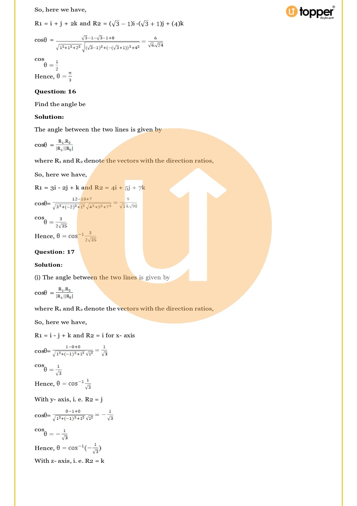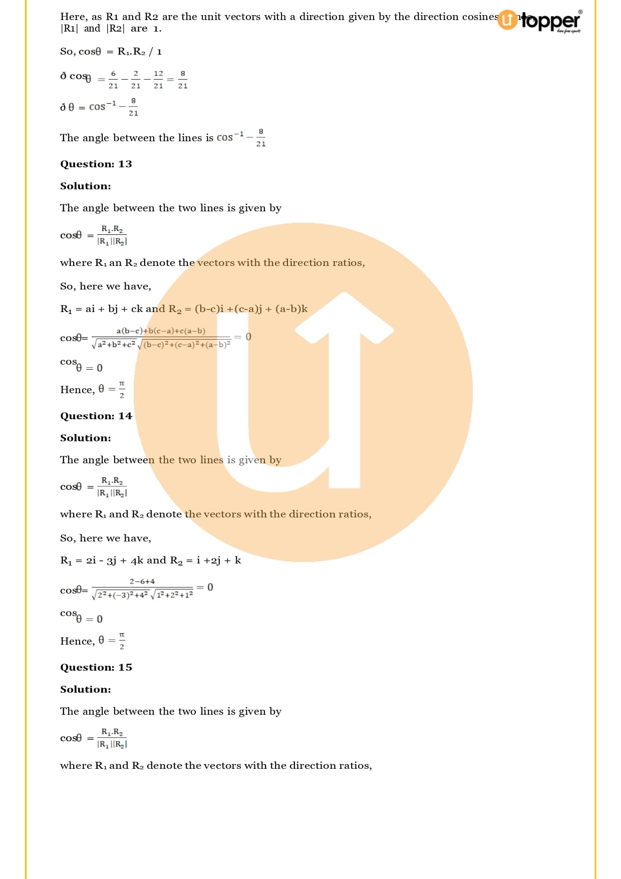 Students in class 12 should only use the best study materials like utopper provide Revision notes, Important Questions or many more so they don’t waste time and have a good understanding of their subjects. For math, Utopper gives detailed PDF answers to questions from RS Aggarwal. With the help of RS Aggarwal and its solutions, students can learn a lot about all of the subjects and how to answer hard and complicated questions. In the 26th chapter of his book on math, RS Aggarwal explains 3-dimensional geometry in a way that is clear for students in the 12th grade.