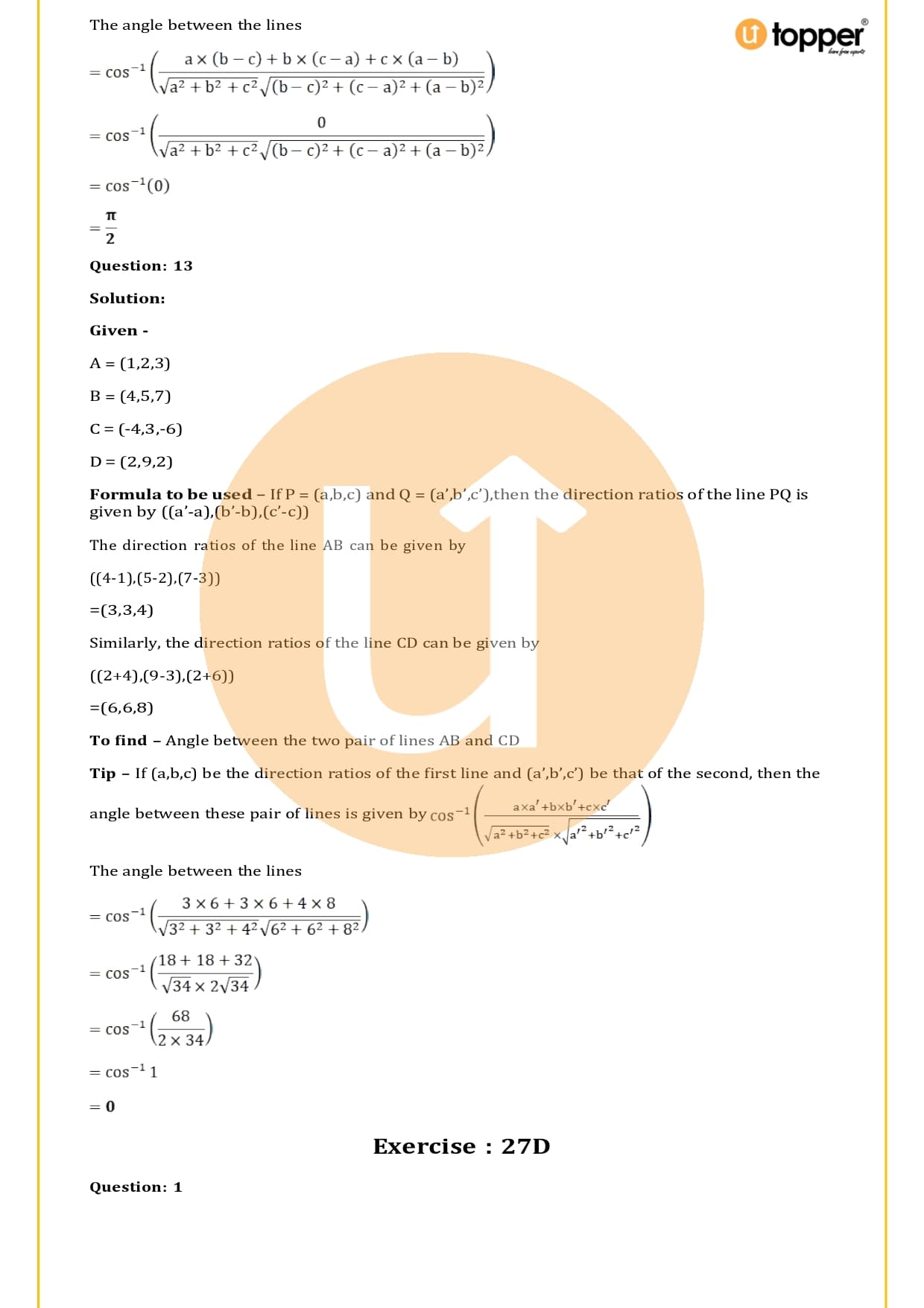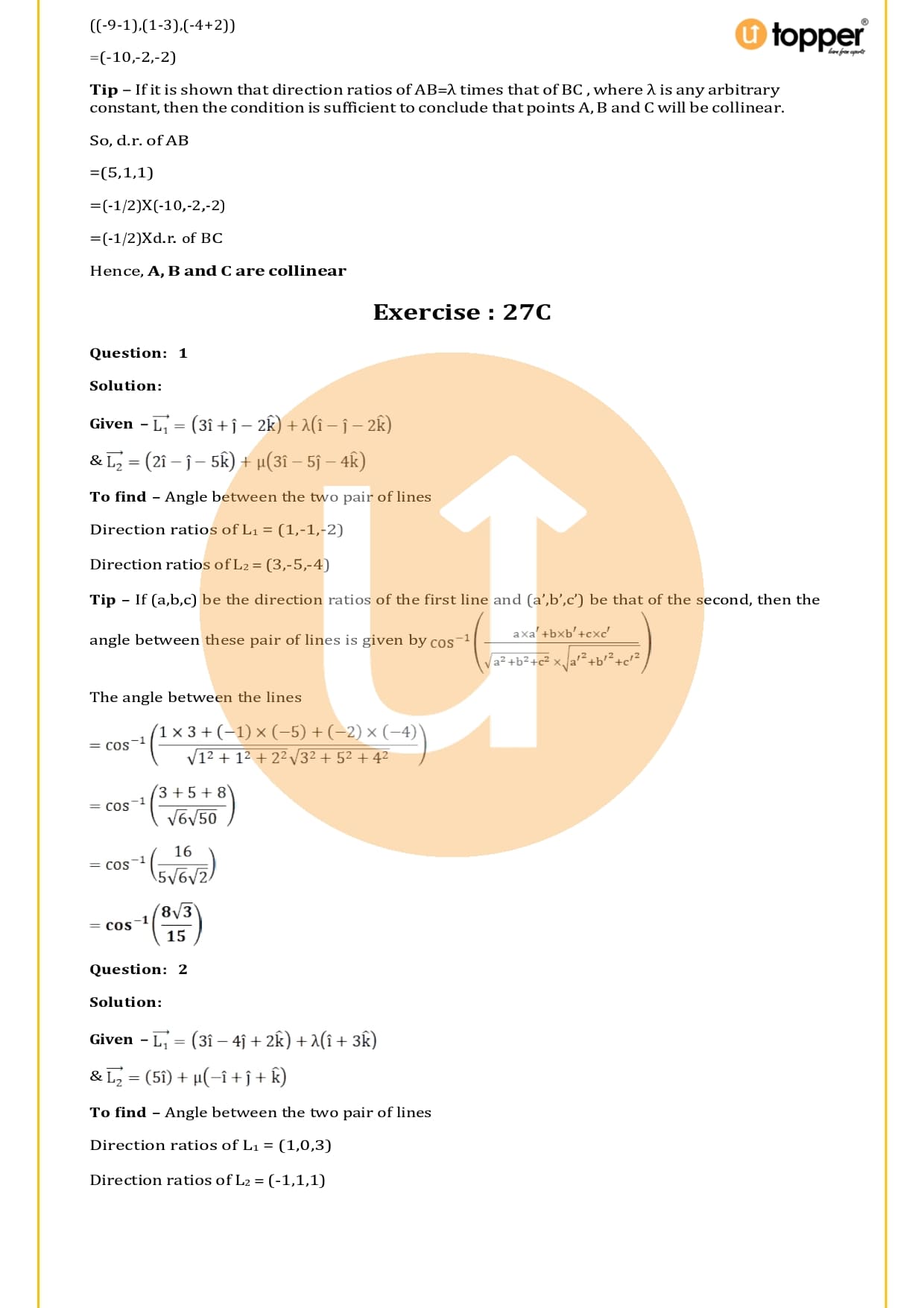 Chapter-27 Straight Line in Space Solutions
