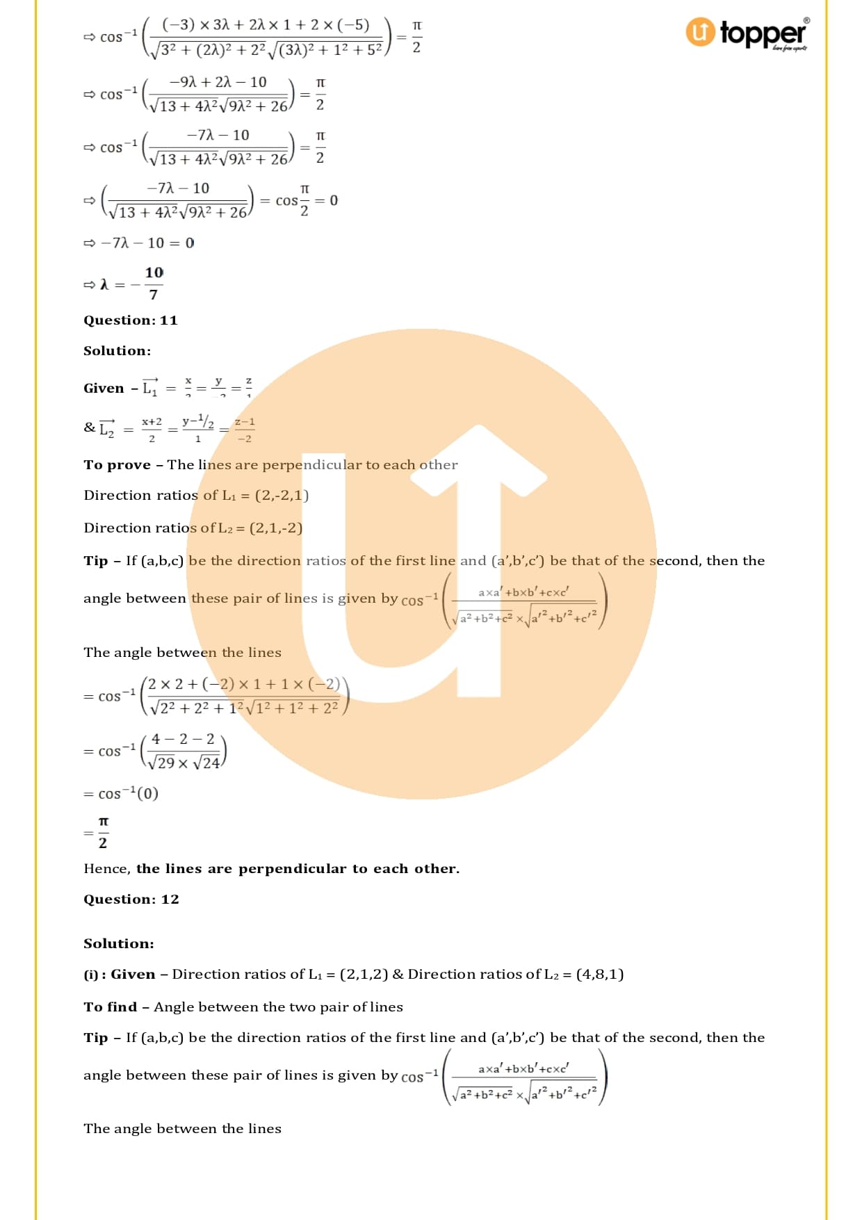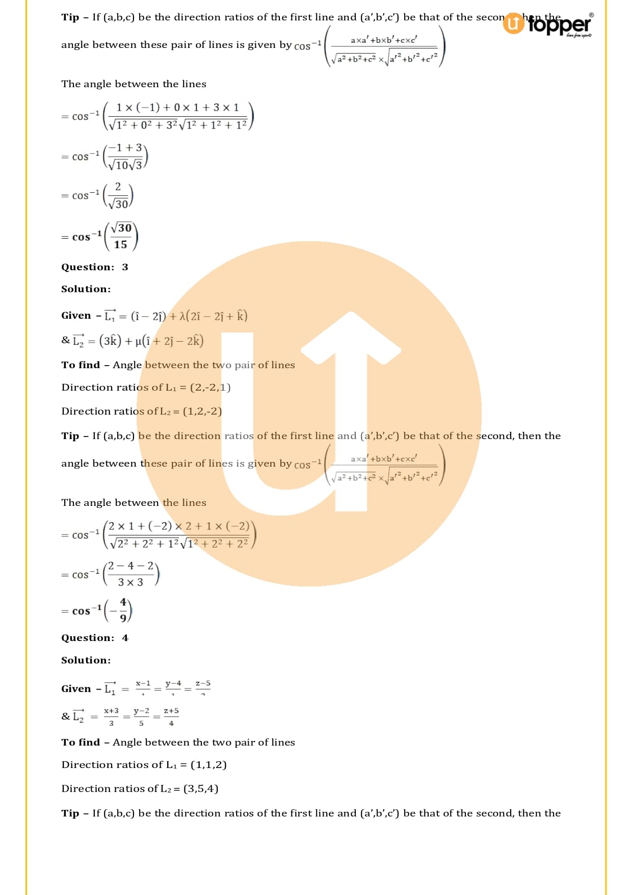 RS Aggarwal Solutions for Class 12 Chapter 27 Straight Line in Space gives students more practise problems to work on, making sure that all engineering students who want to study math in college won’t have any trouble with any concept. These are important because they help students prepare and make sure they can get help if they get stuck on an idea. To help more to students in exam utopper have free study materials to access such as – Previous Year Papers, Revision Notes, Important Questions and many more.