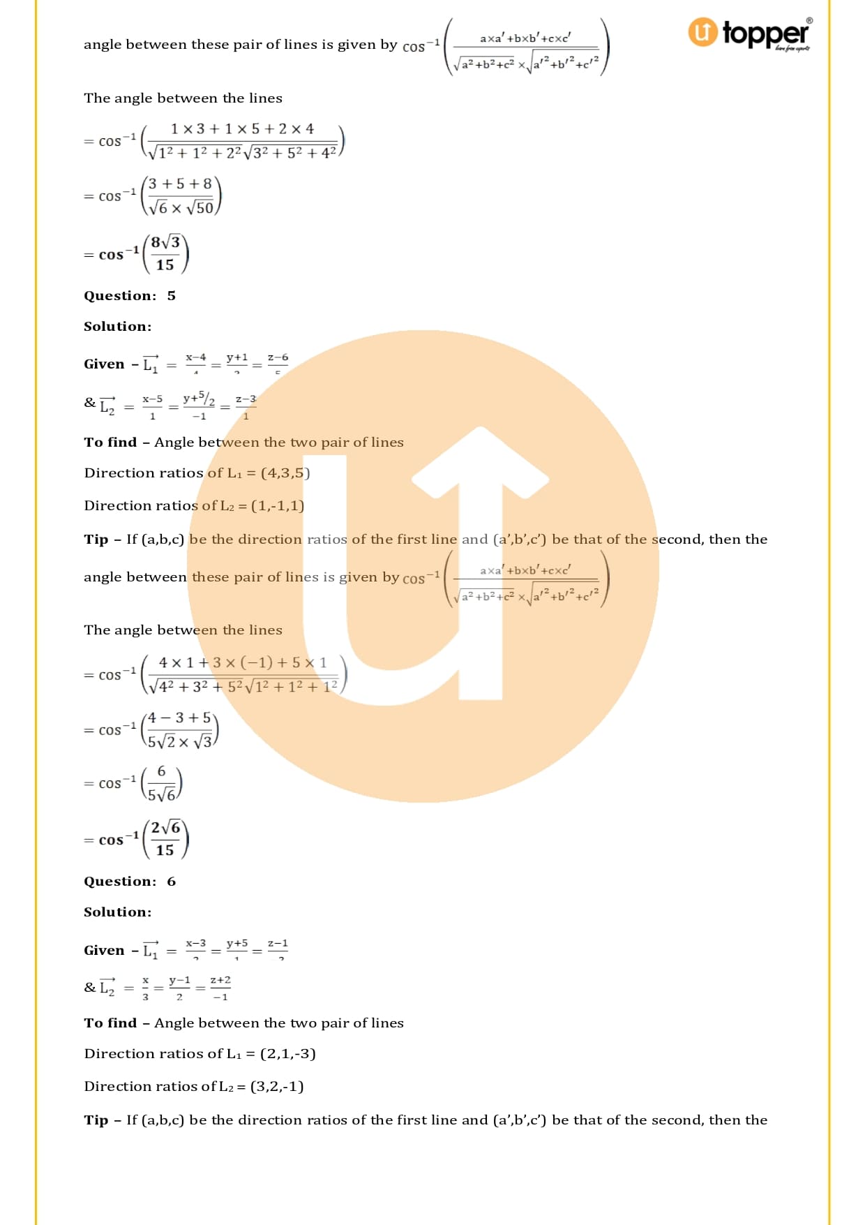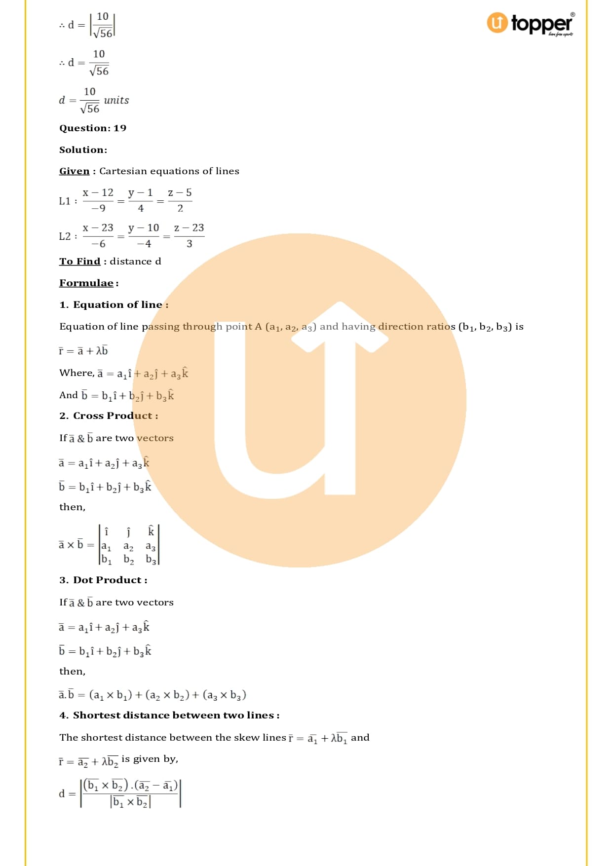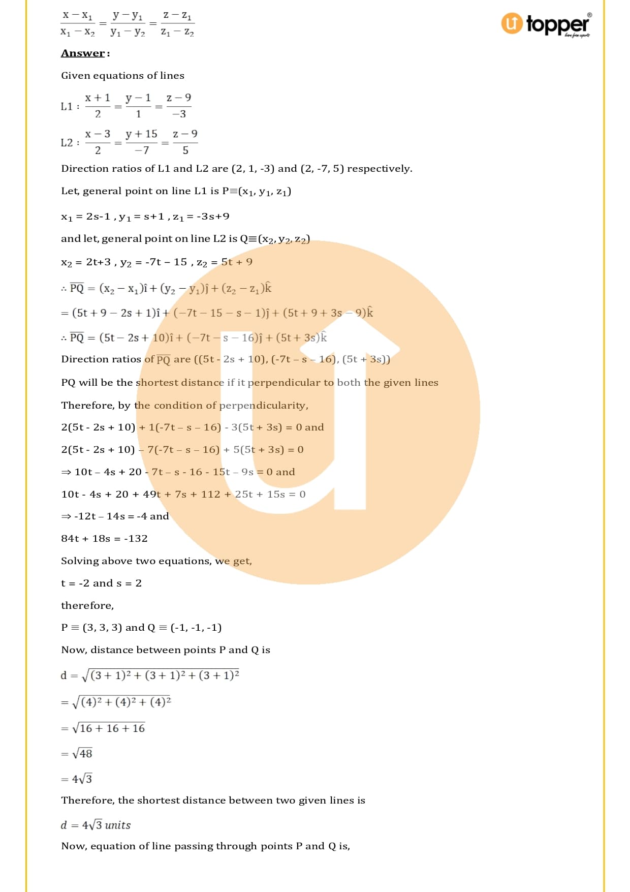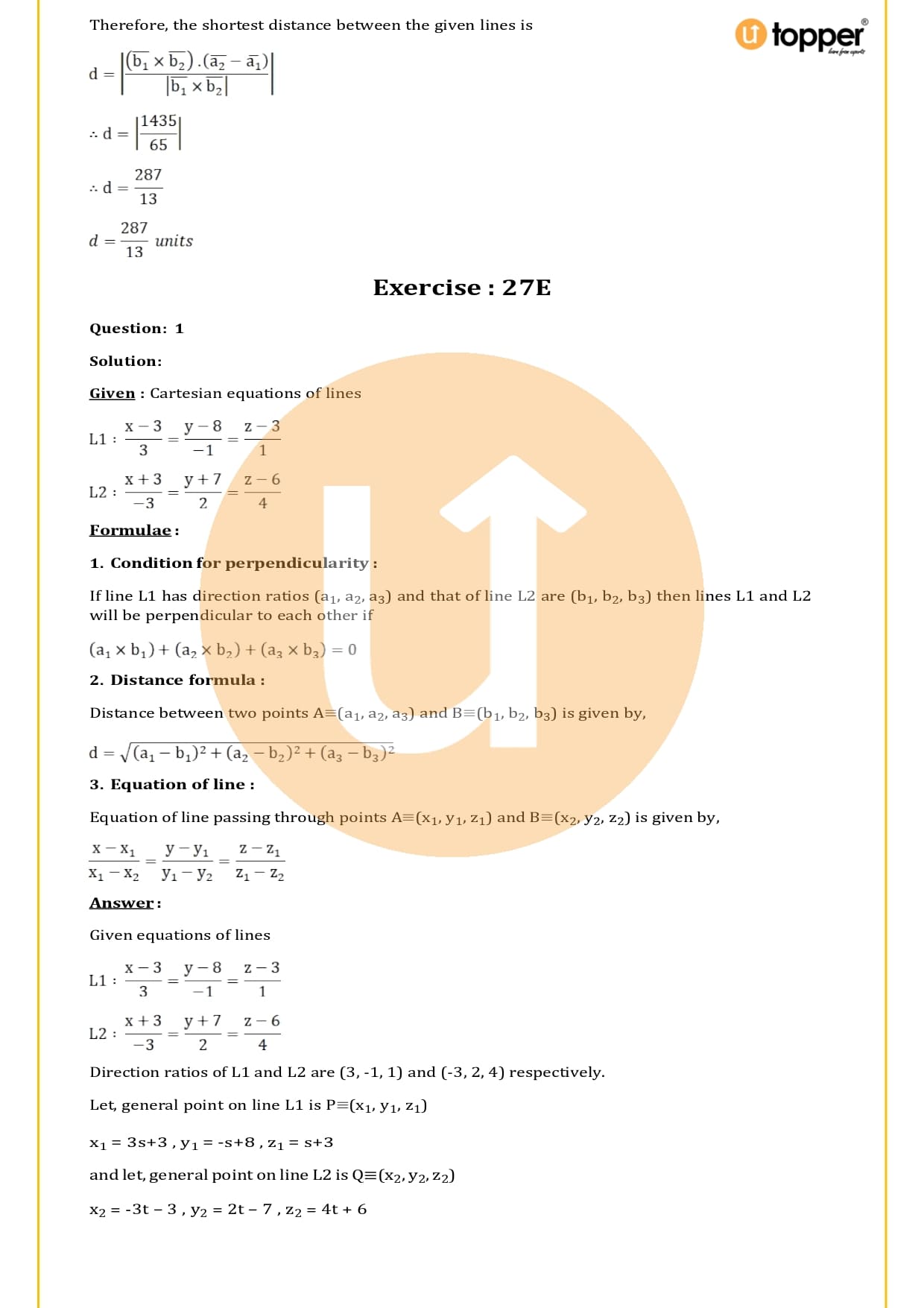 The RS Aggarwal Solutions for Class 12 Chapter 27 Straight Line in Space  are easy to find on the Utopper website and can be downloaded for free in PDF format. This makes it easy for students to get to them and use them whenever they need to. They are helpful because they are made by experts in the field and have some important questions based on the board’s analysis and questions from competitive level tests.