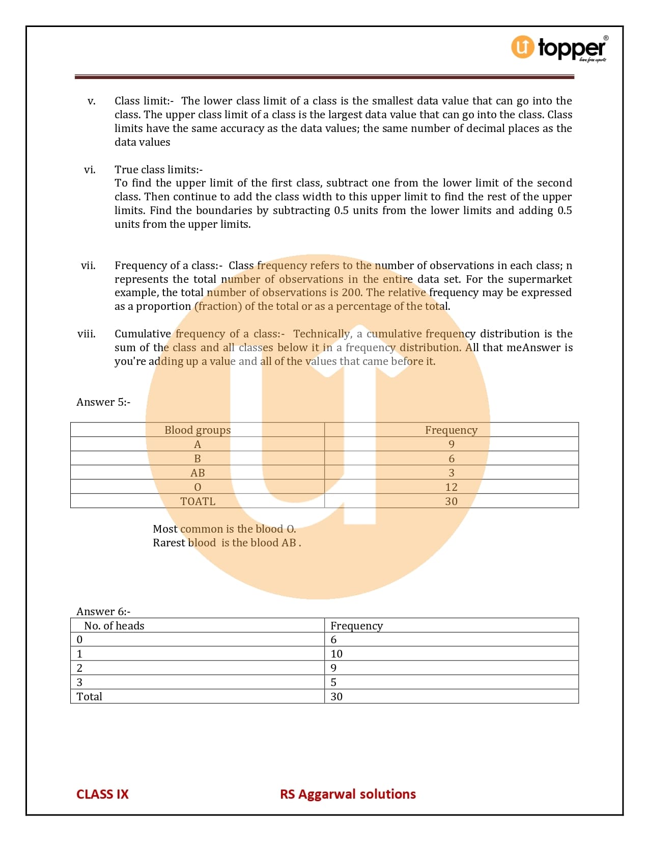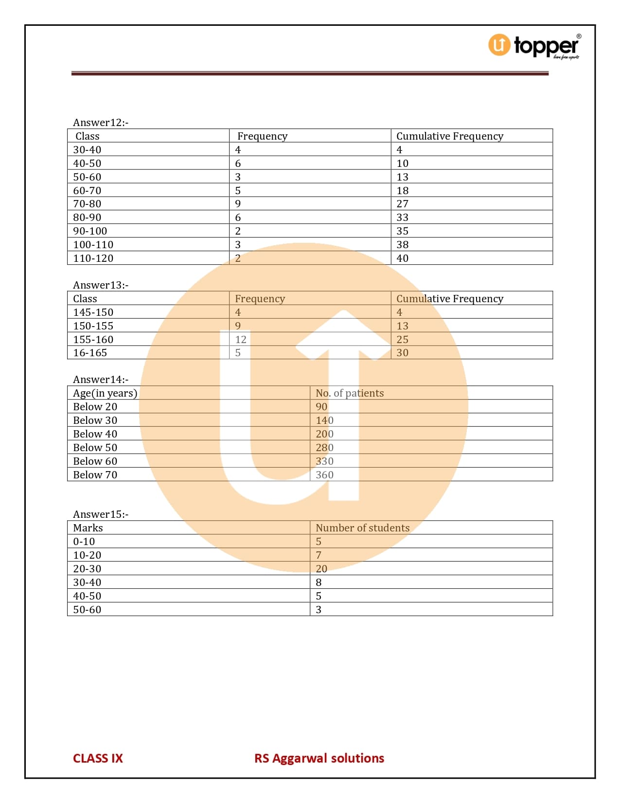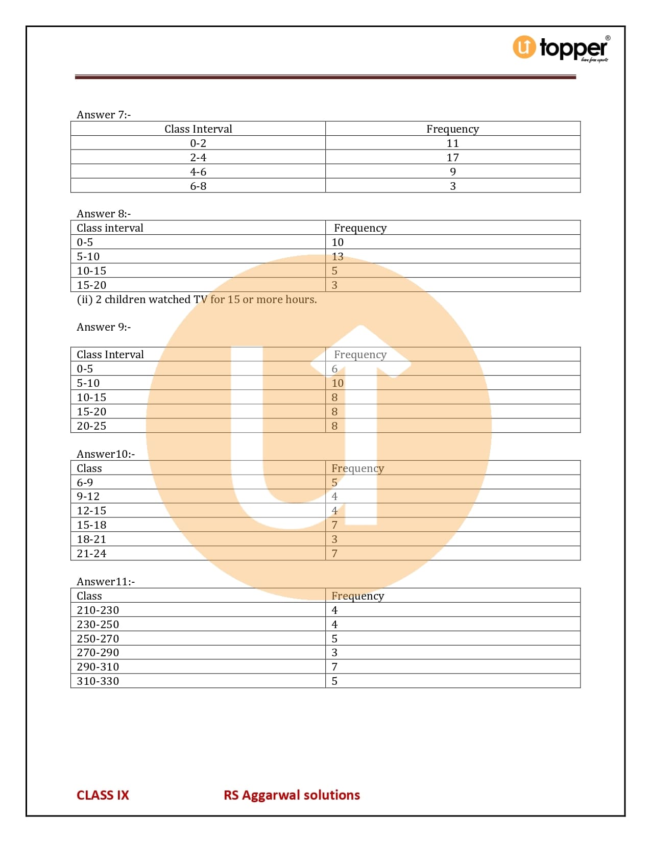 RS Aggarwal Solutions for Class 9 Chapter 16 – Presentation of Data in Tabular Form PDF
